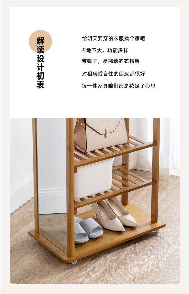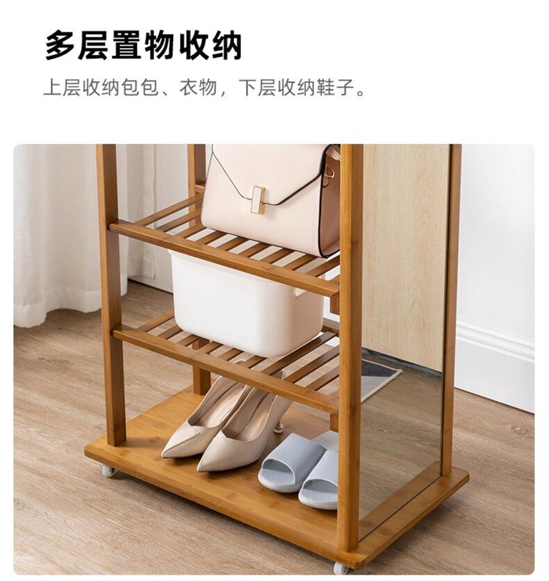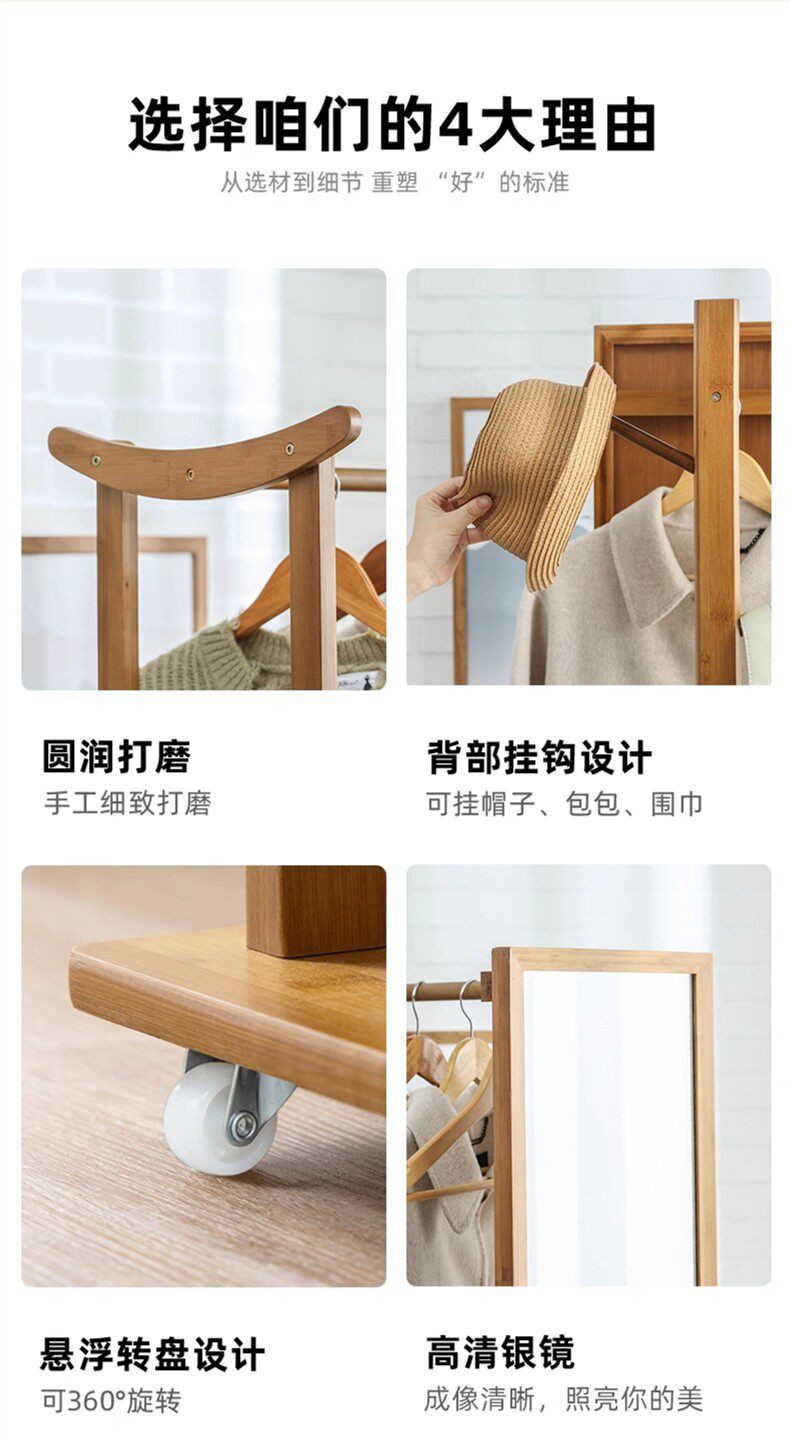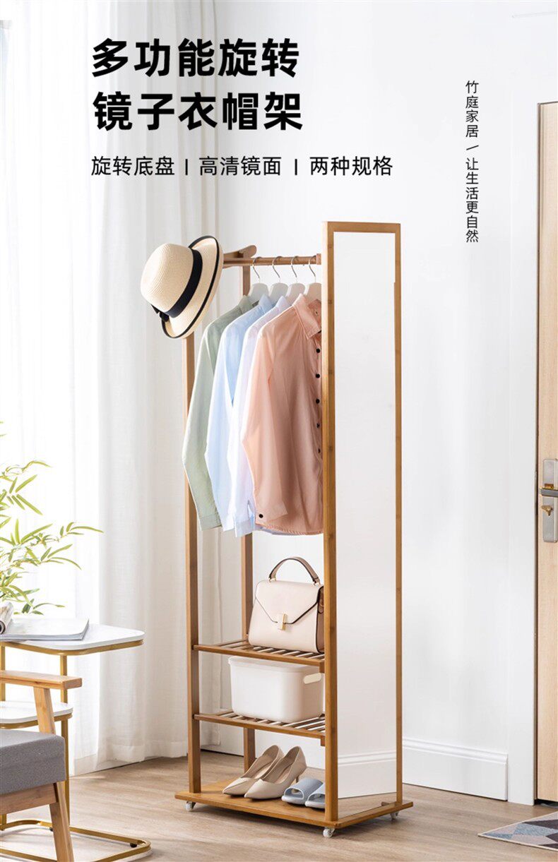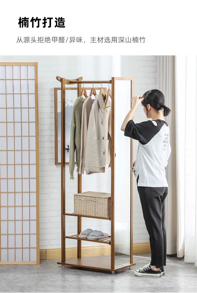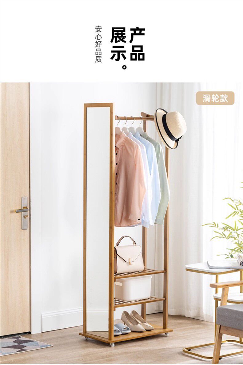 Multifunctional Full-Length Mirror, Floor-To-Ceiling Mirror, Household Mobile Large Mirror, Fitting Mirror, Solid Wood Rotating Coat Mirror
