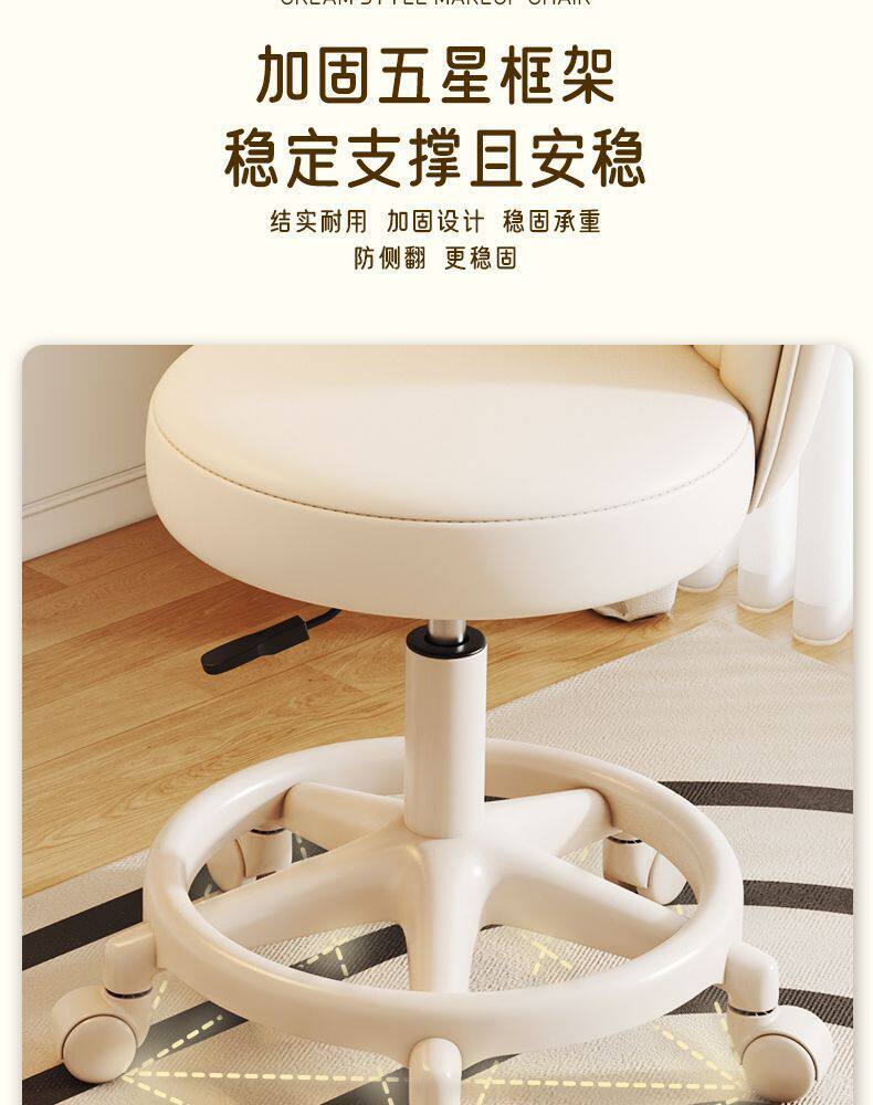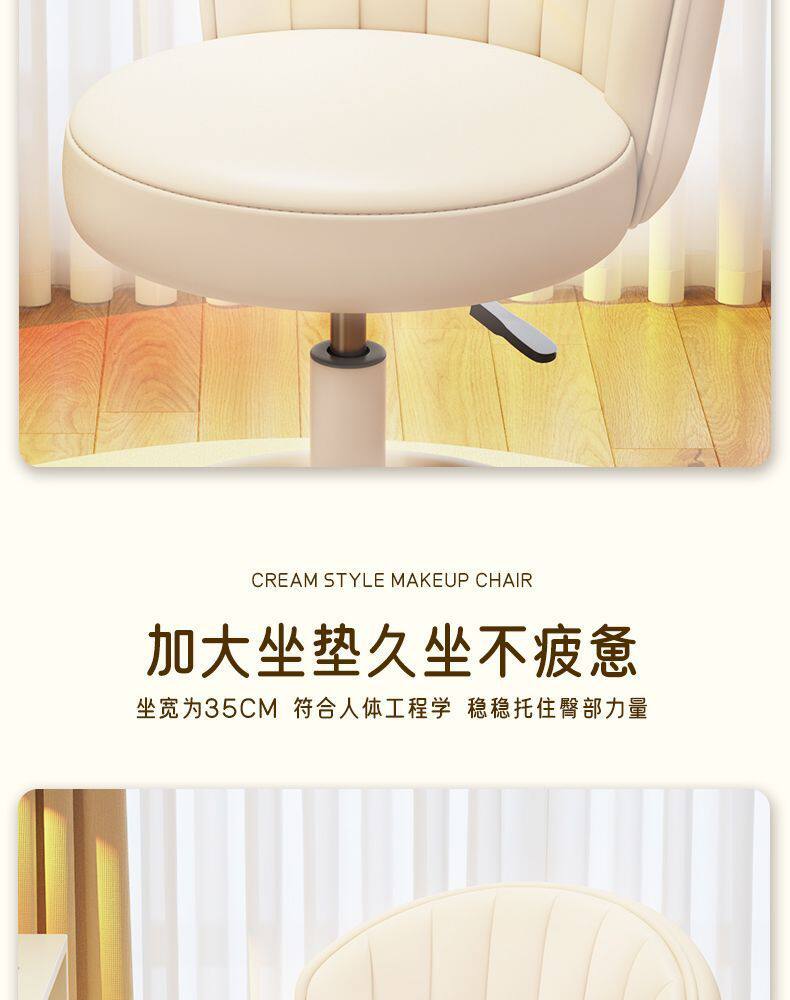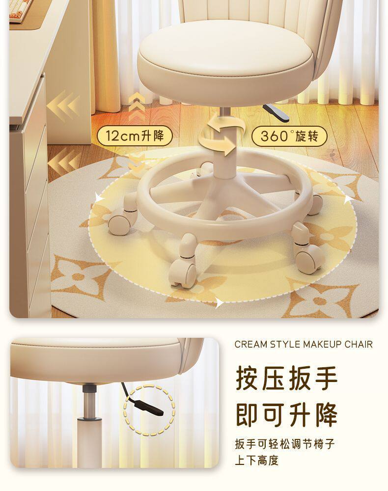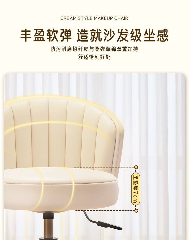Makeup Chair for Girls' Bedroom, Stool, Makeup Stool, Internet-Famous Dressing Table Chair with Backrest, Manicure Swivel Chair, Home-Use Chair with Backrest