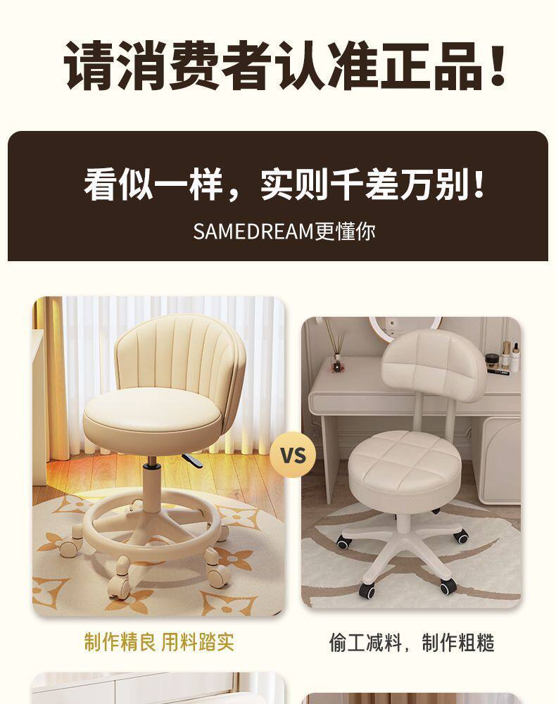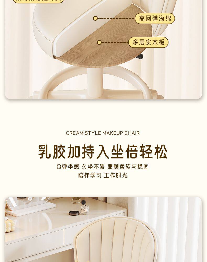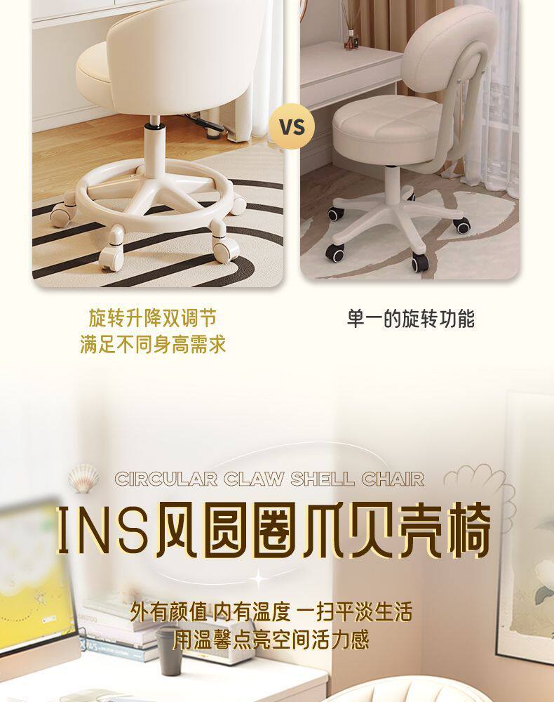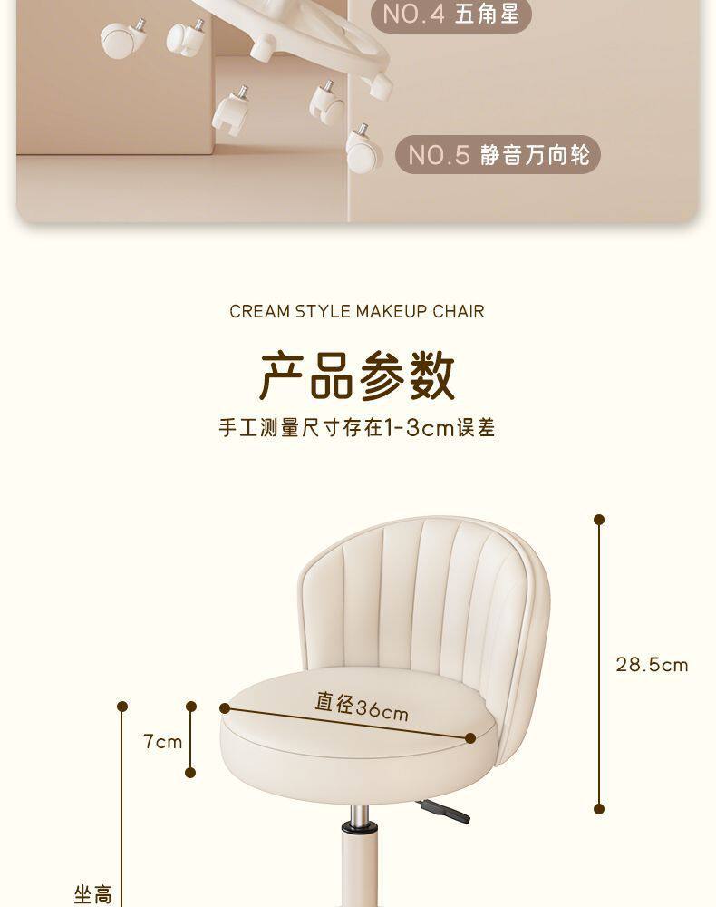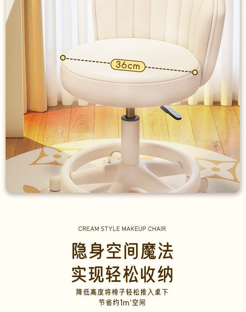 Makeup Chair for Girls' Bedroom, Stool, Makeup Stool, Internet-Famous Dressing Table Chair with Backrest, Manicure Swivel Chair, Home-Use Chair with Backrest