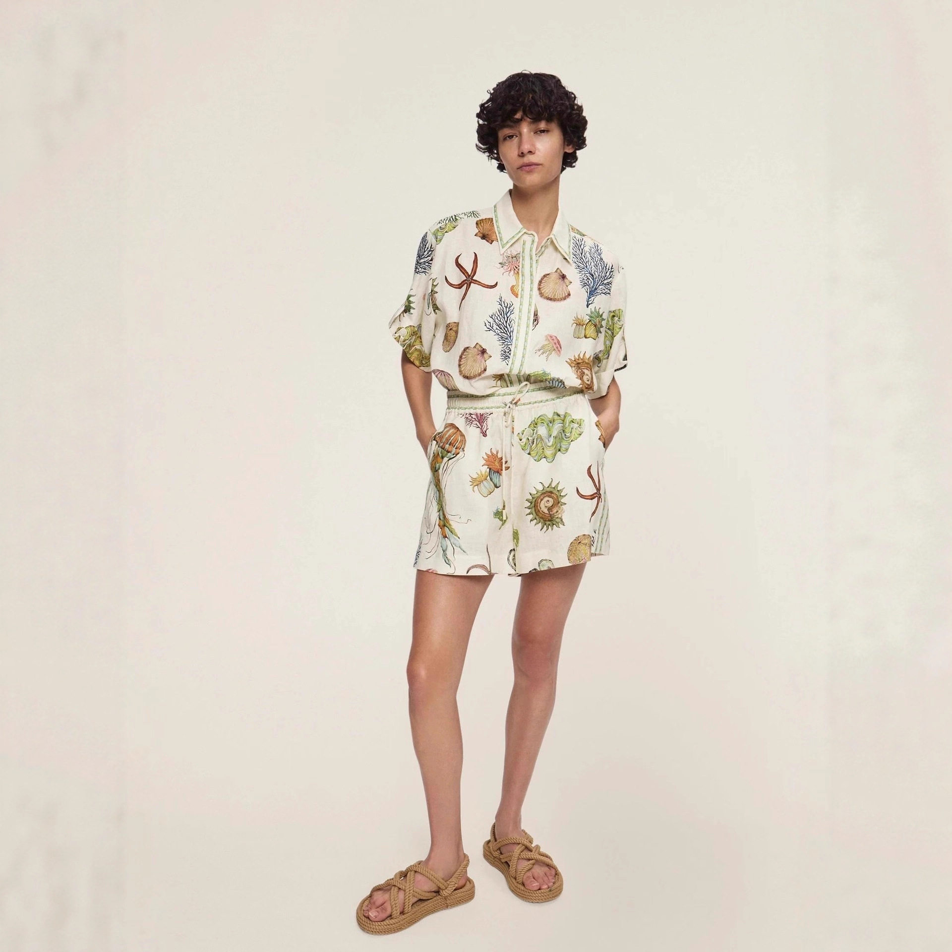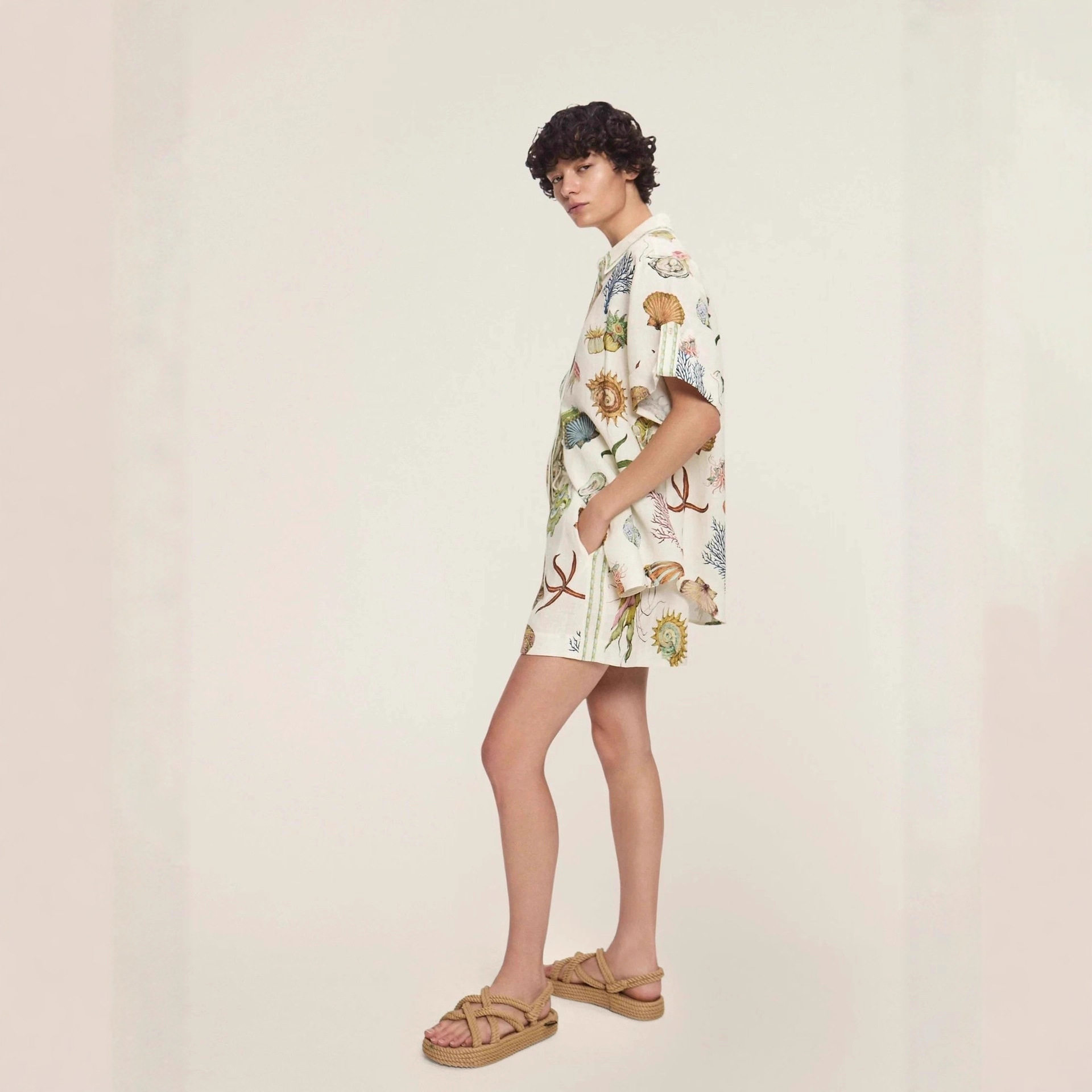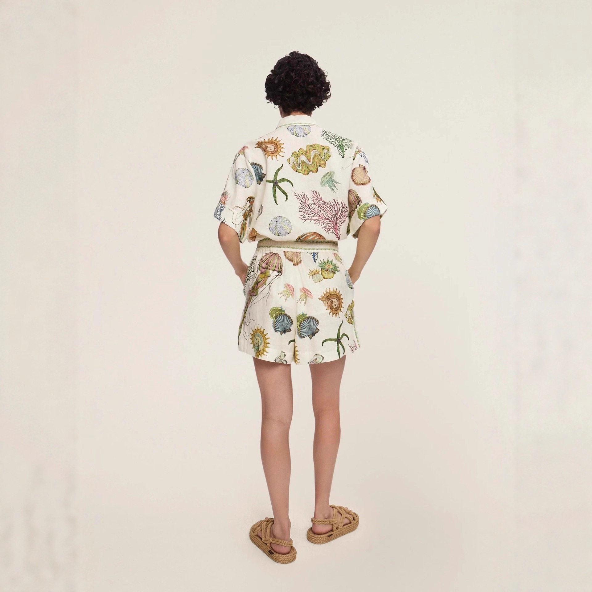 European and American Cross-Border 2025 New Amazon Aliexpress Independent Station Casual Fashion Linen Printed Shirt Shorts Suit