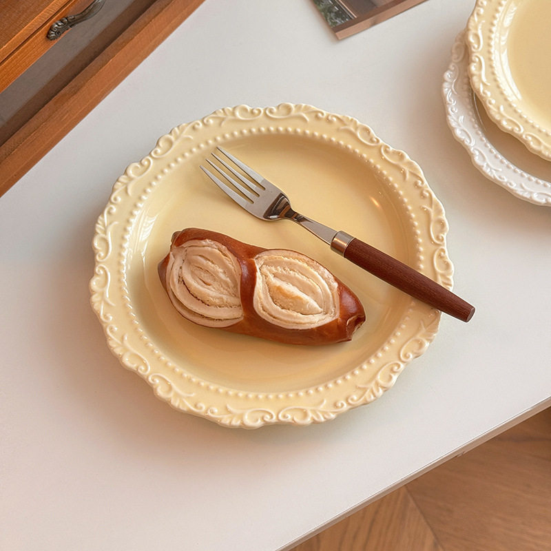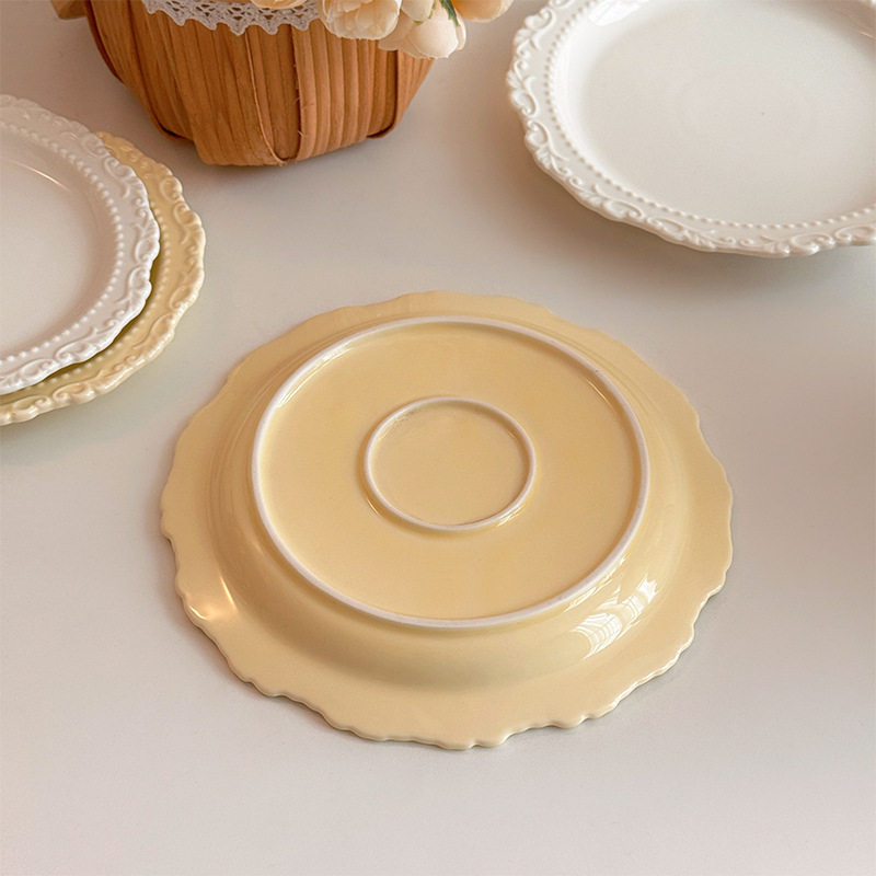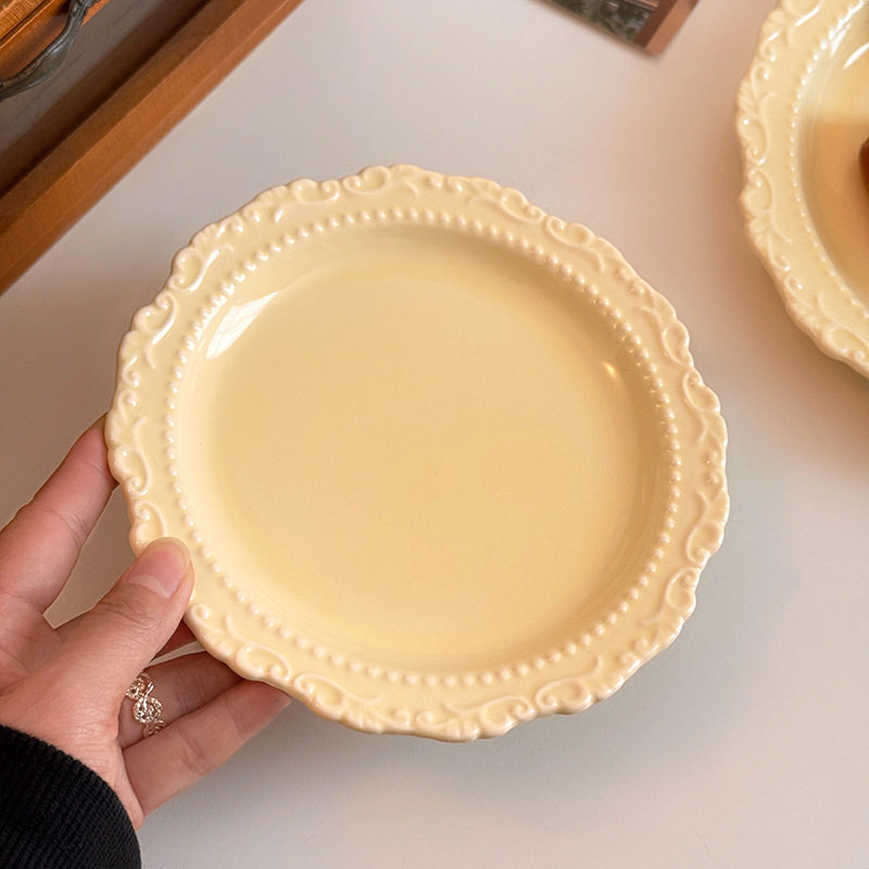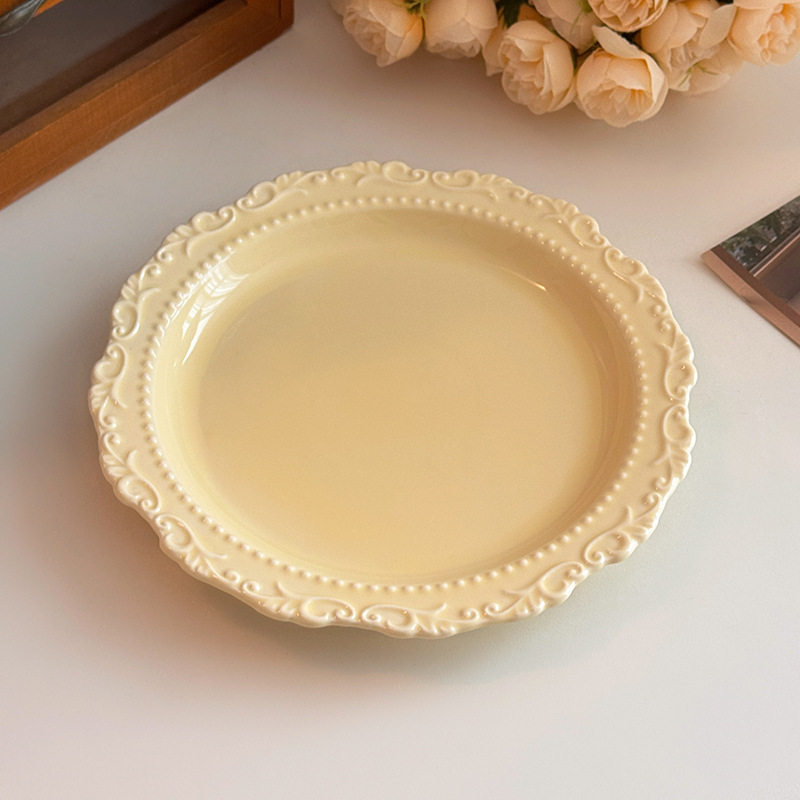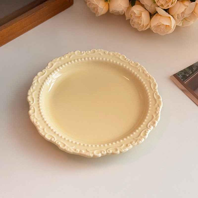 French High-End Ceramic Embossed Dinner Plate Ins Retro High-Value Plate Cute Cream Style Dessert Dinner Plate