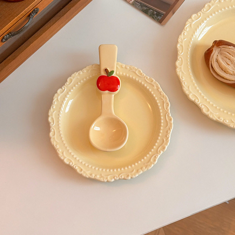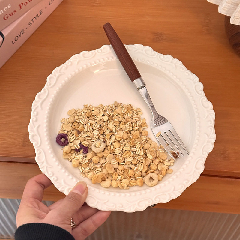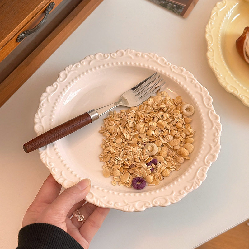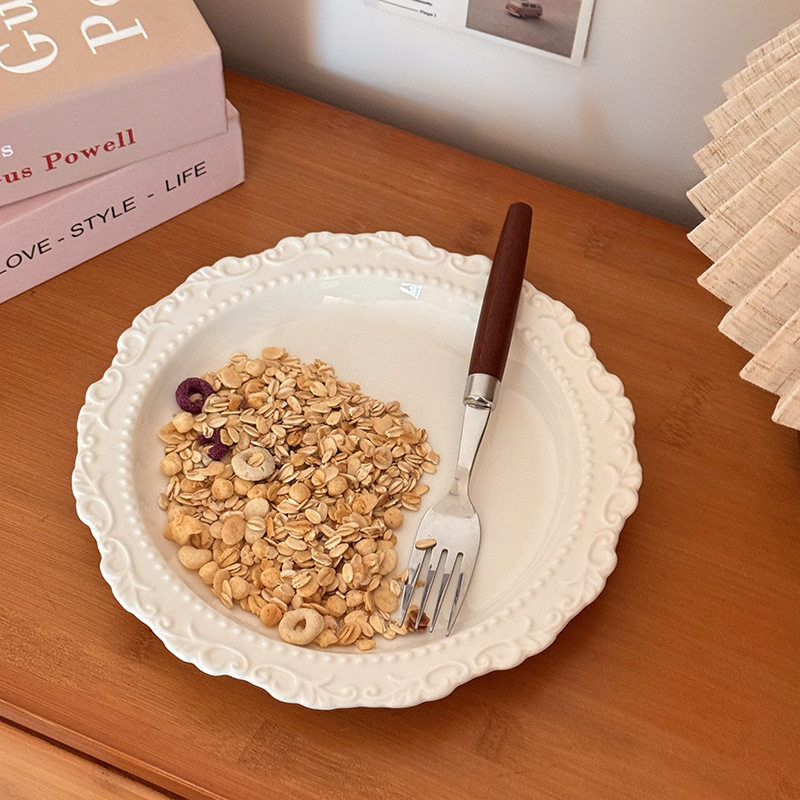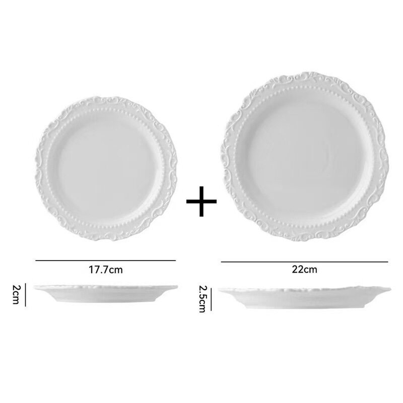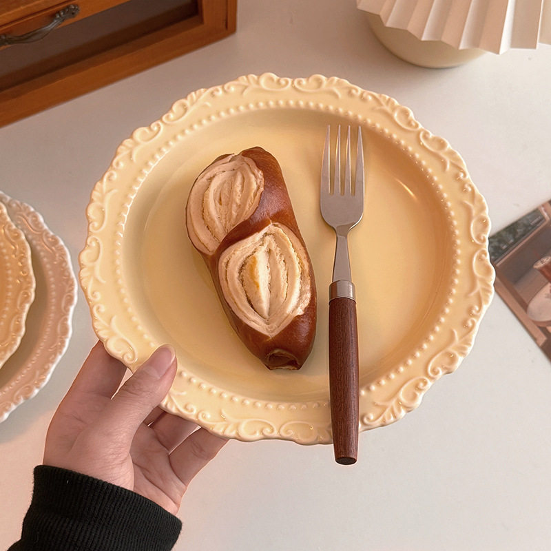 French High-End Ceramic Embossed Dinner Plate Ins Retro High-Value Plate Cute Cream Style Dessert Dinner Plate
