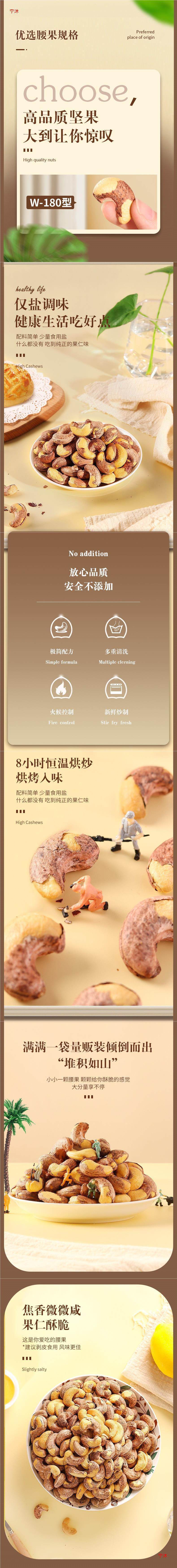 | Packaging specifications | Large cashew nuts with skin, net weight 250g*1 bag,Large capsules with skin cashew nuts net weight 250g*2 bags,Extra large cashew nuts with skin, net weight 250g*2 bags,Extra large cashew nuts with skin, net weight 500g*1 can,Large capsules with skin cashew nuts net weight 250g*4 bags,Extra large cashew nuts with skin, net weight 250g*4 bags,Extra large cashew nuts with skin, net weight 500g*2 cans |