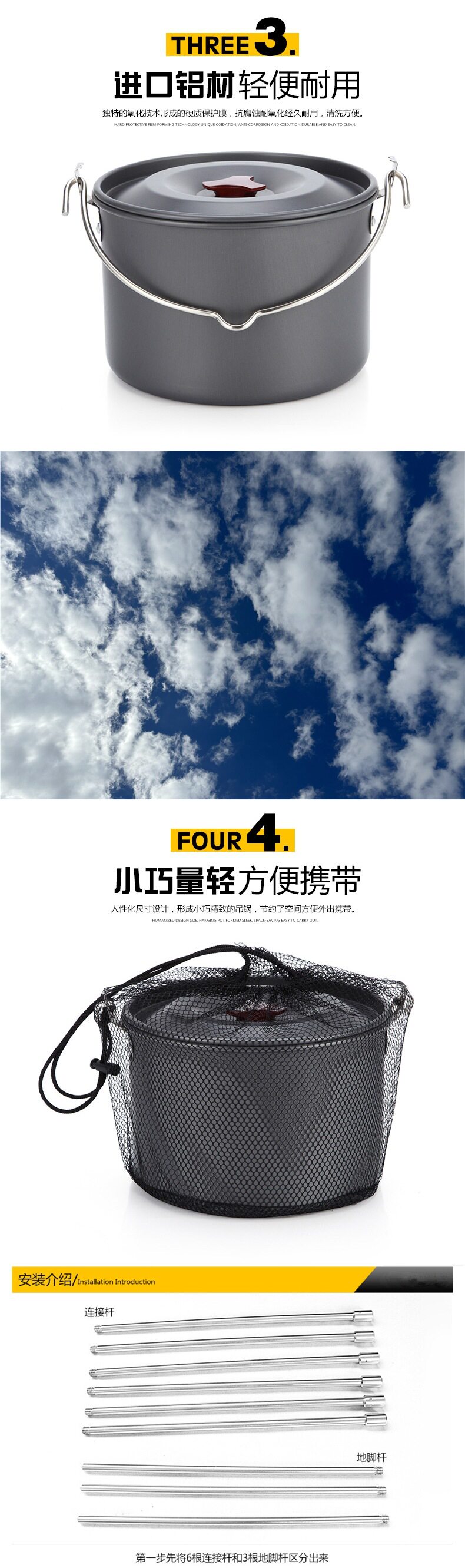 Outdoor Camping Hanging Pot Large Capacity Campfire Tripod Cooking Pot 4L Portable Marching Pot Camping Hanging Pot Cookware