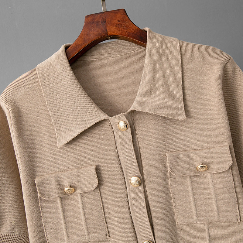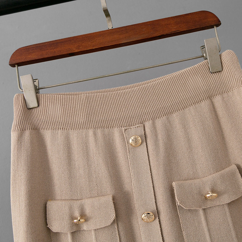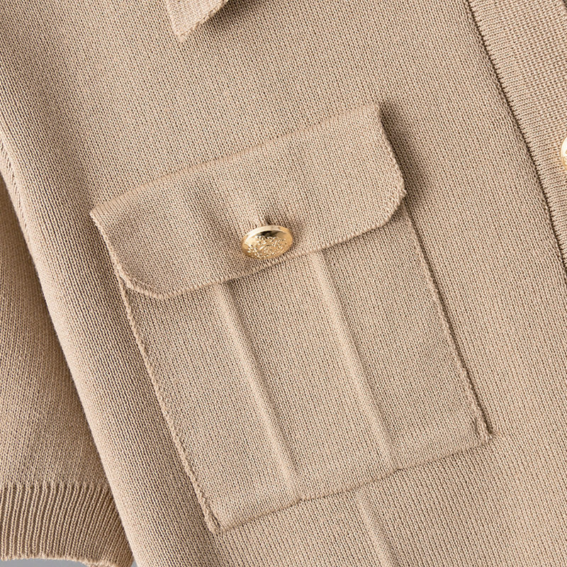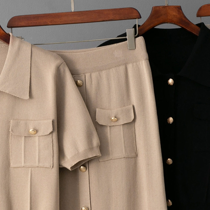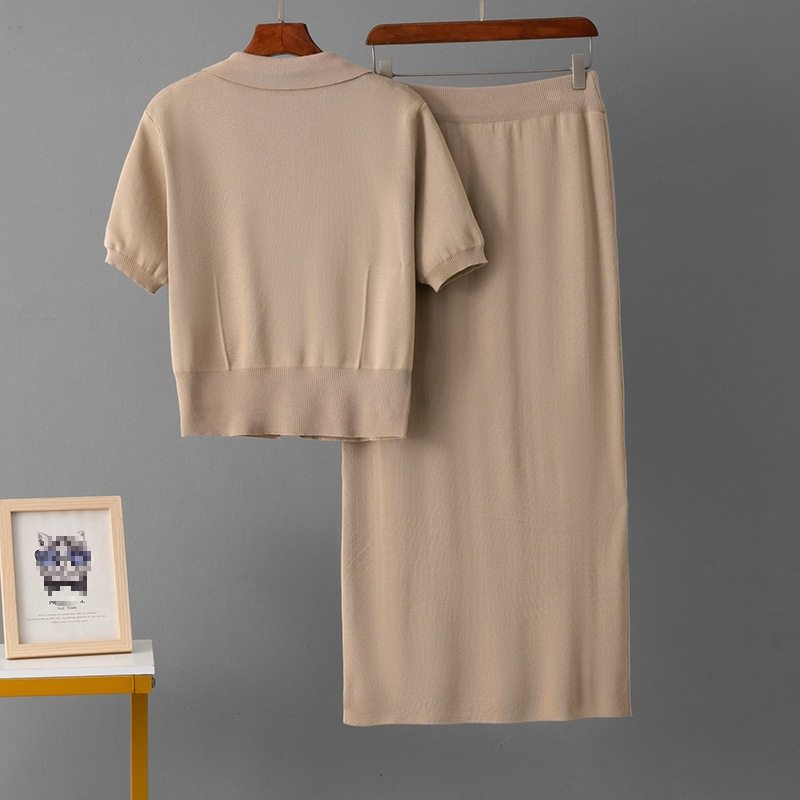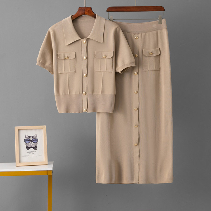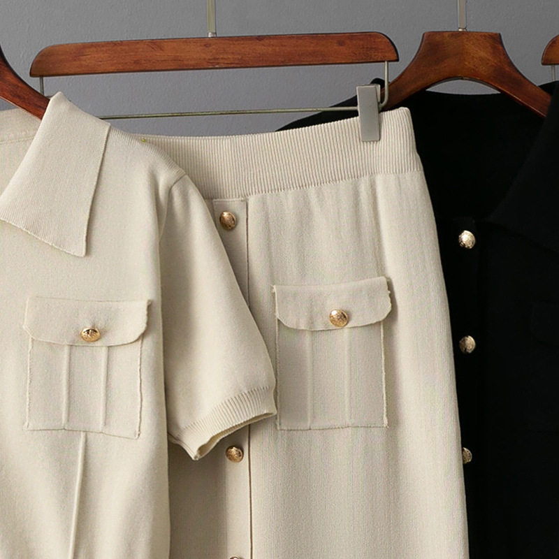 Spring and Summer French High-End Knitted Suit Fashionable Polo Collar Buttons + Slim Mid-Length Skirt Two-Piece Set for Women