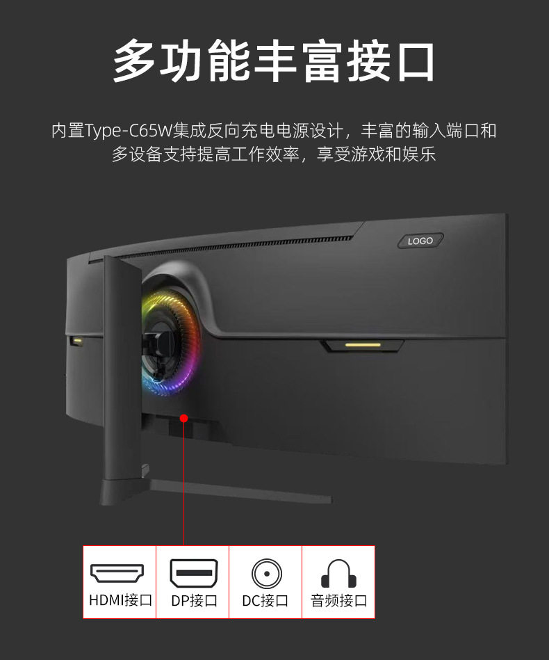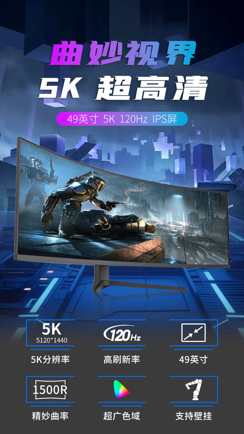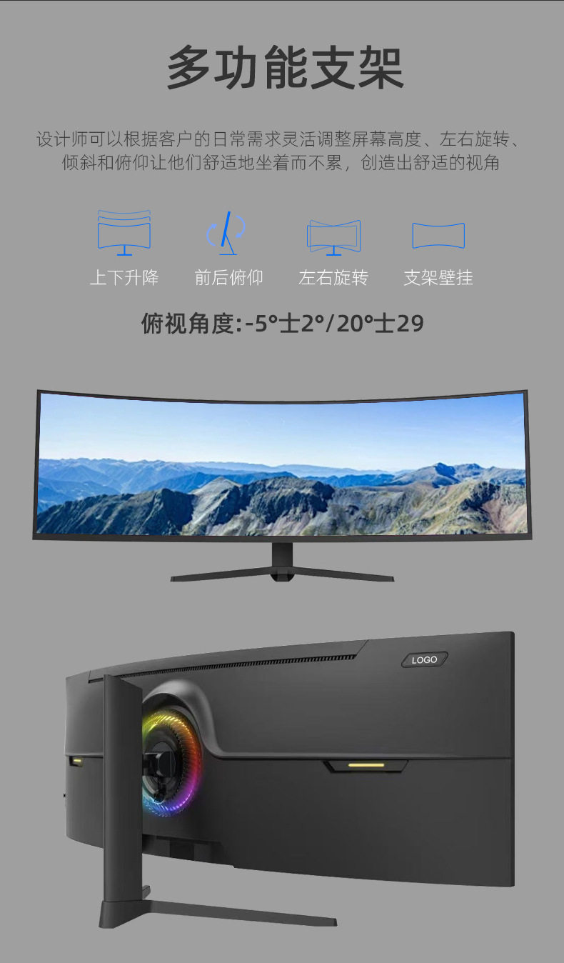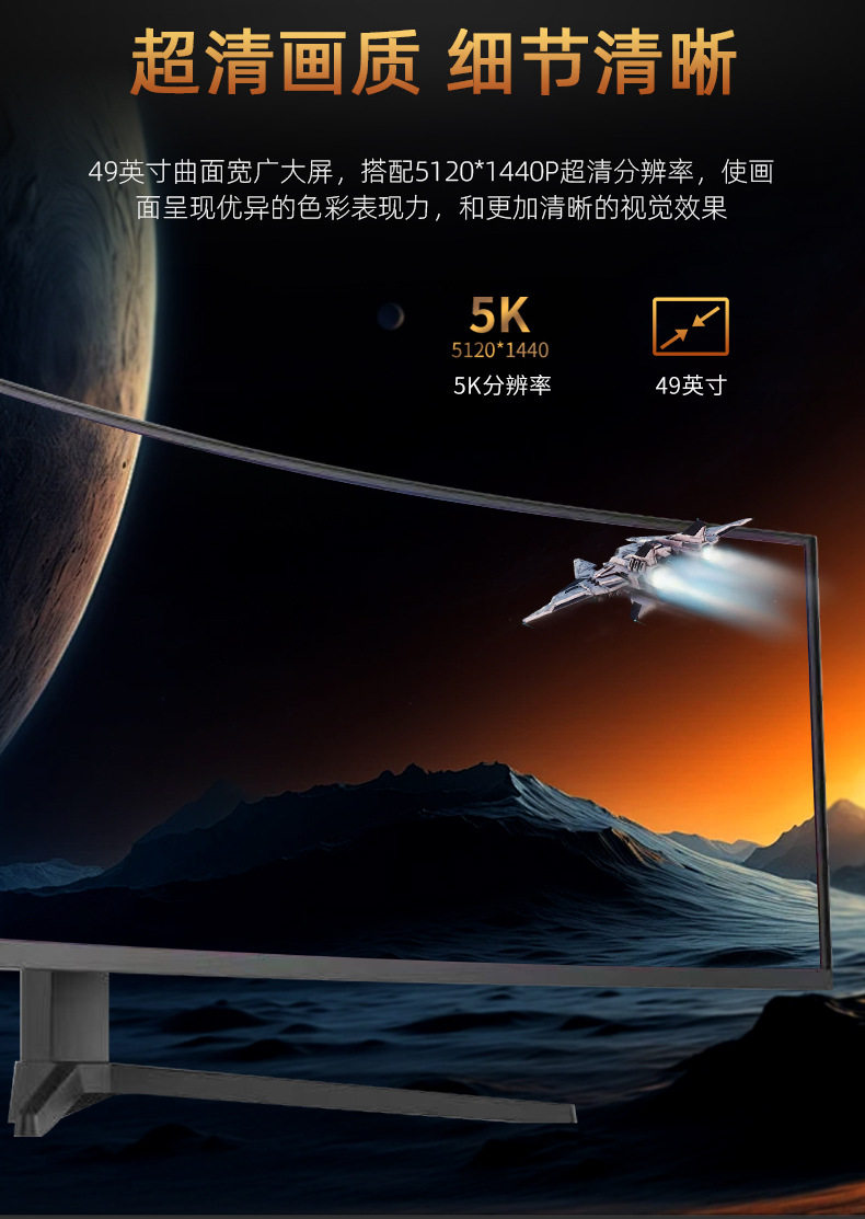 49inch Borderless Gaming Monitor 5K High-Definition Curved Screen Lcd Desktop Computer with Fish Screen 1500R