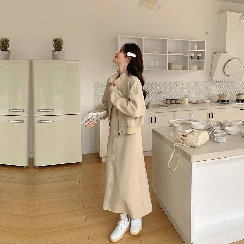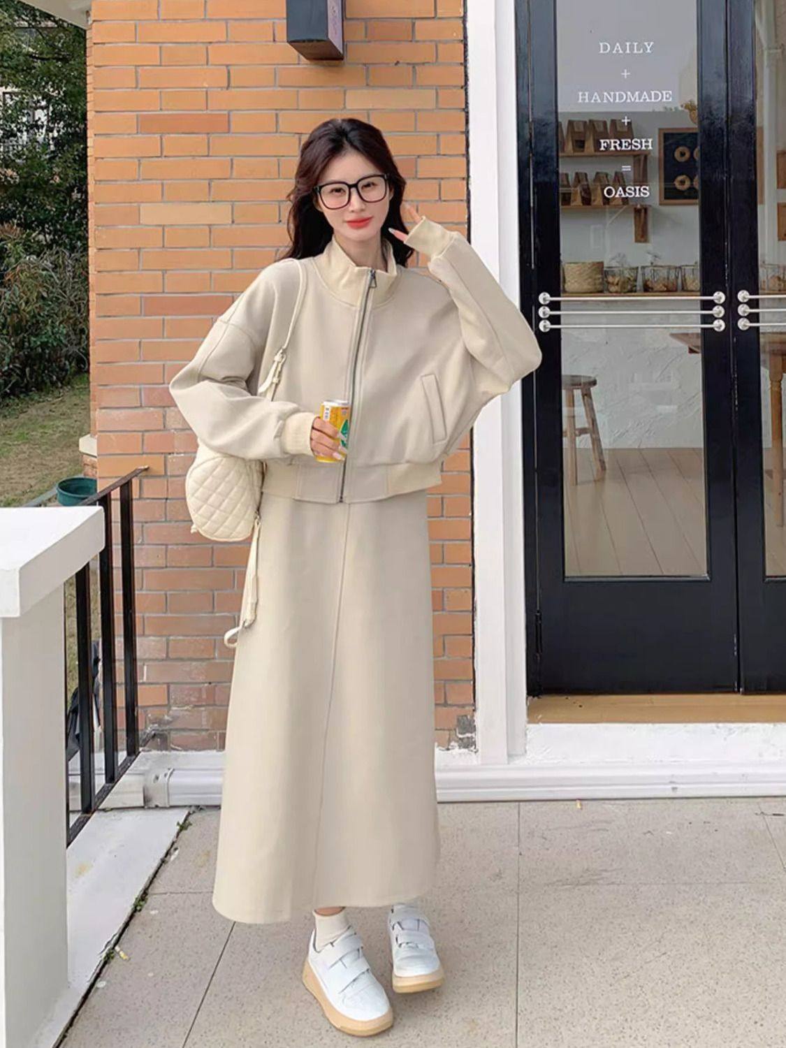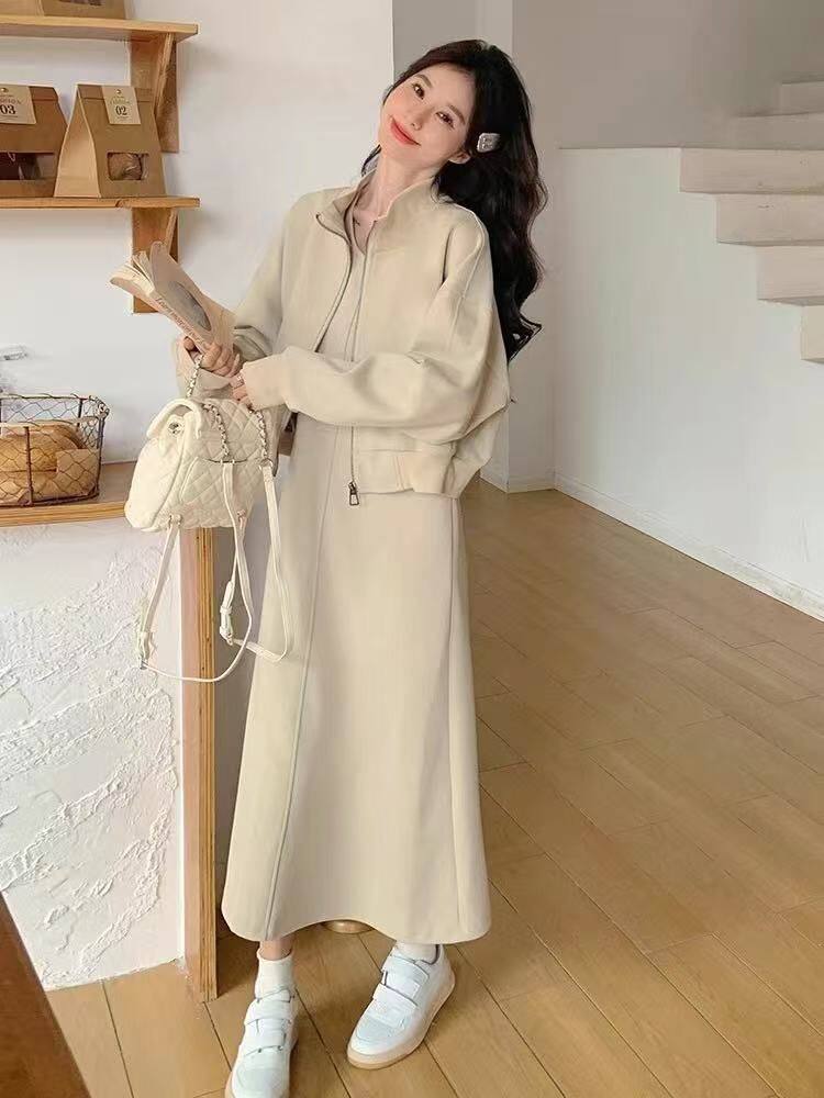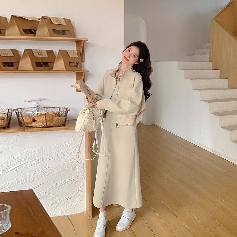 Maternity Dress Autumn 2025 New Plus Size Women's Sweatshirt Jacket Vest Skirt Two-Piece Autumn and Winter Suit