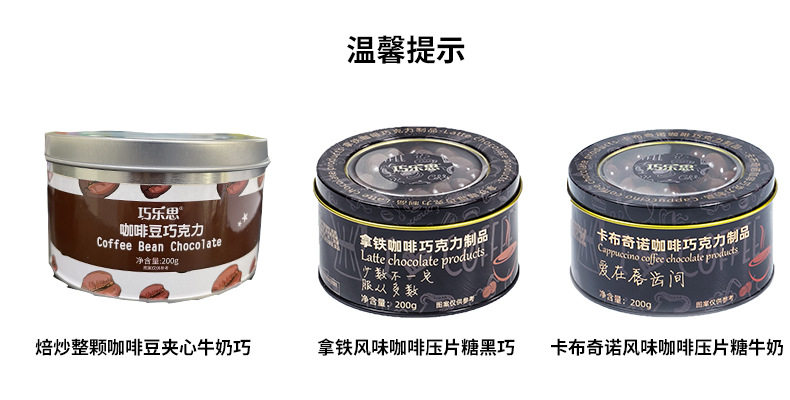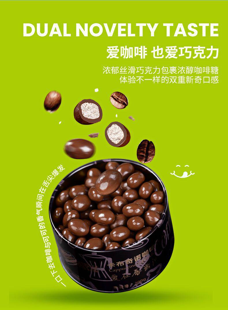 | Packaging specifications | [cappuccino flavor] milk coffee sugar sandwich 200g-,Naiqiao coffee beans 250g-,Dark chocolate coffee beans 250g-,Hazelnut 3 flavor mix 200g can-,Almond 3 flavor mix 200g can- |
