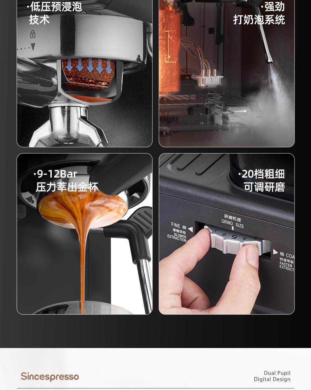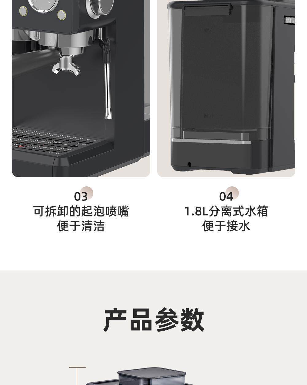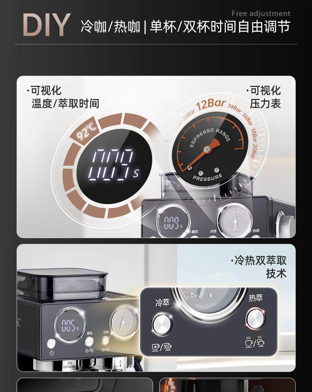 Household Coffee Machine Steam Descaling Italian Milk Frothing Hot and Cold Double Extraction Grinding Integrated Visual Intelligent Control
