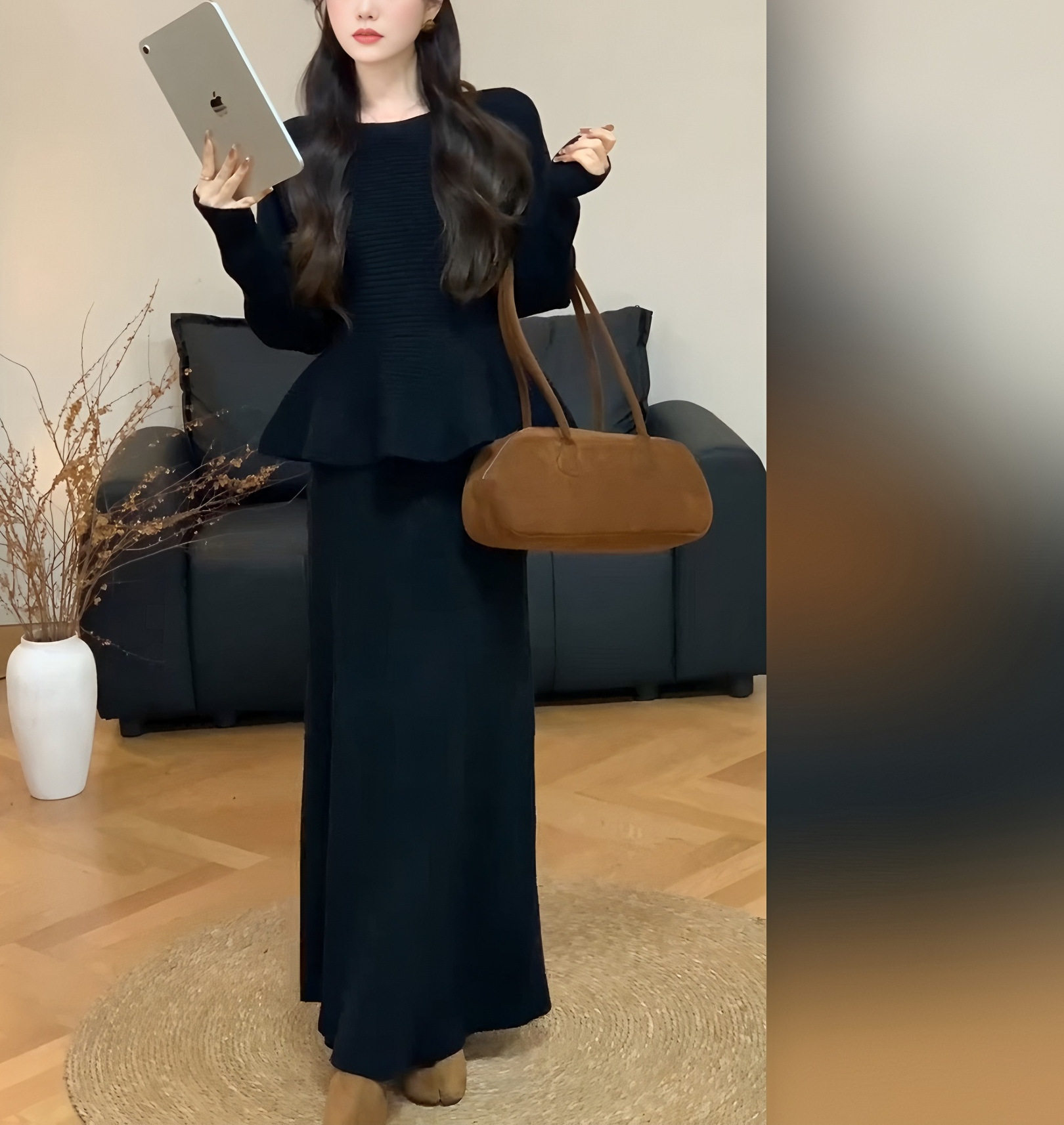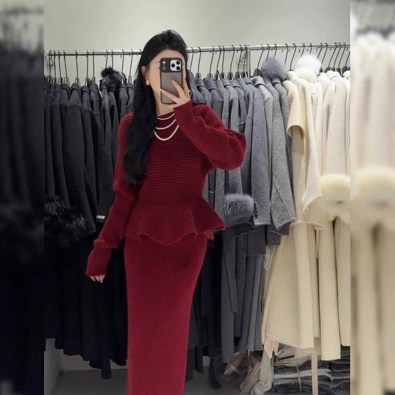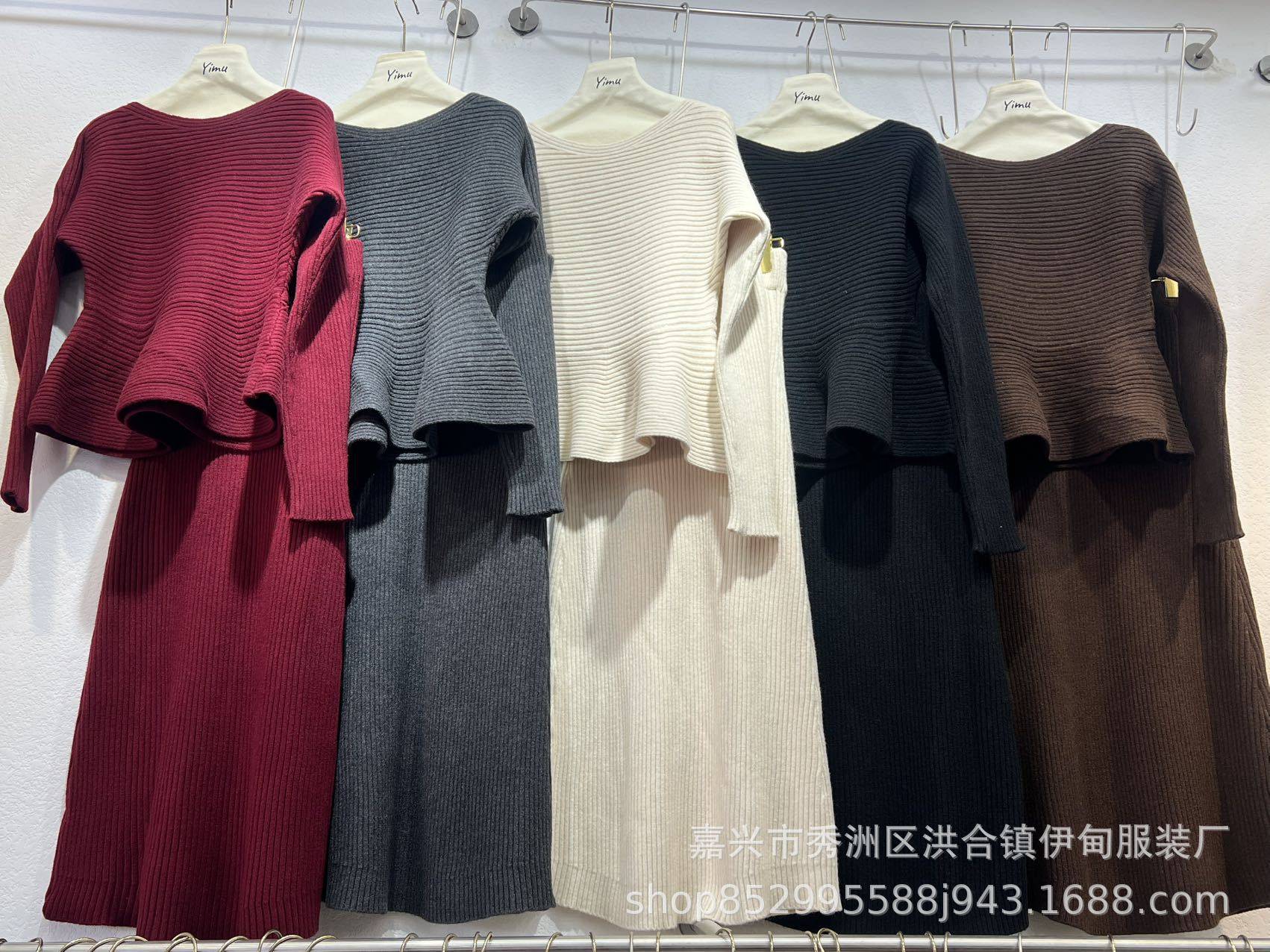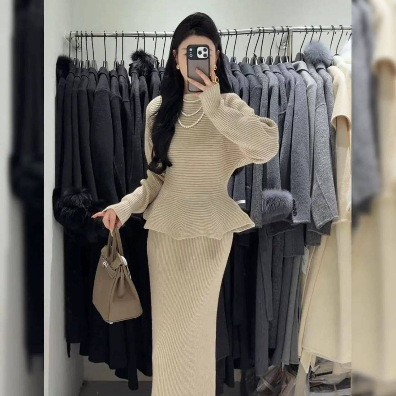 Autumn and Winter New Style Light and Mature Royal Sister Style Gentle Knitted Suit Women's Waist Slimming Top Hip-Covering Skirt Two-Piece Set