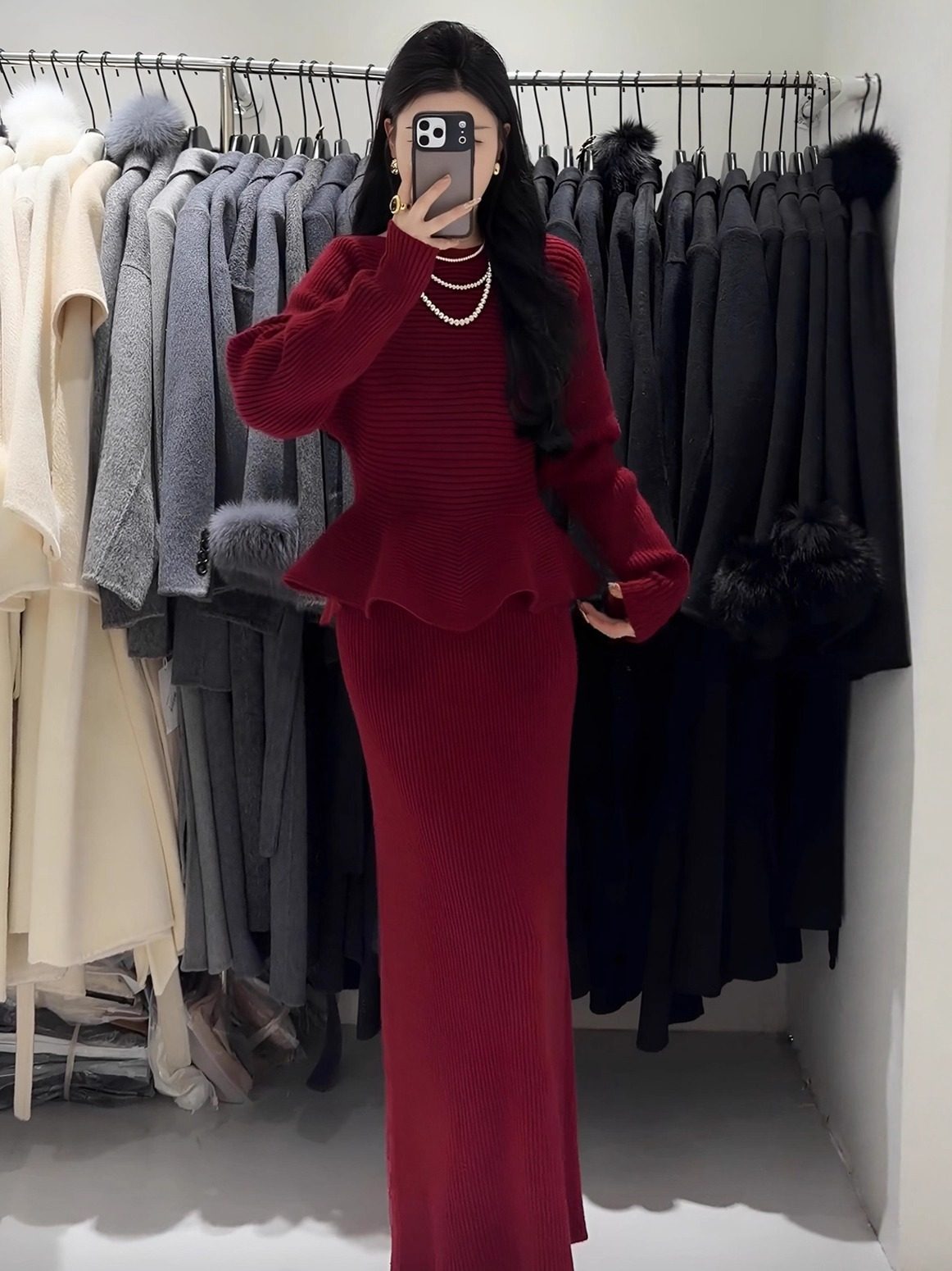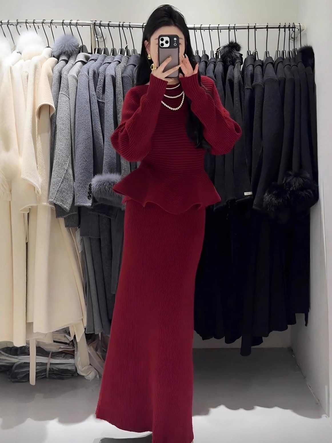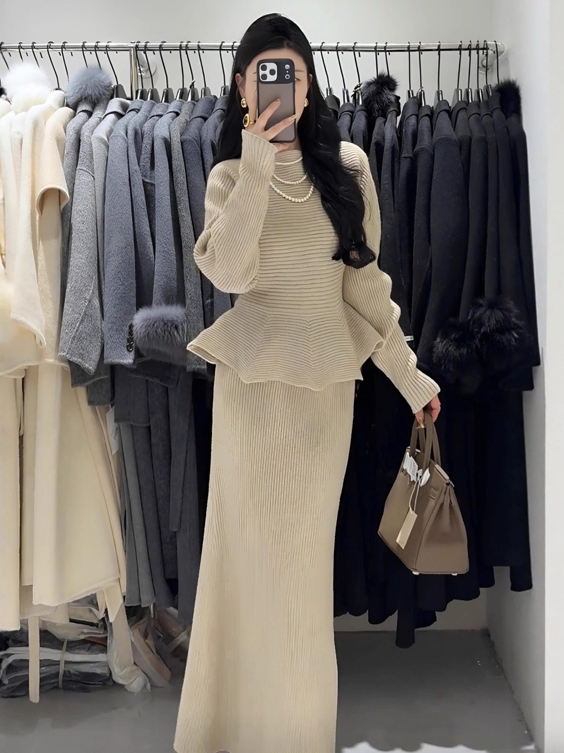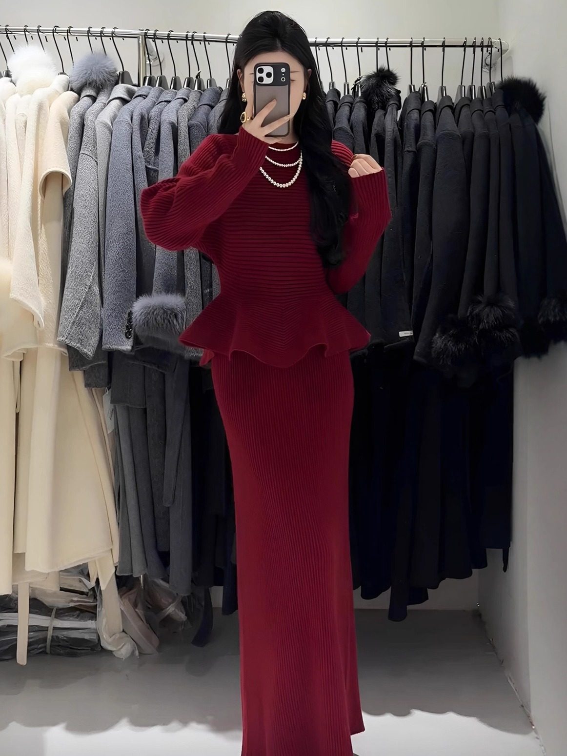Autumn and Winter New Style Light and Mature Royal Sister Style Gentle Knitted Suit Women's Waist Slimming Top Hip-Covering Skirt Two-Piece Set