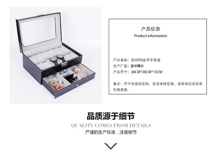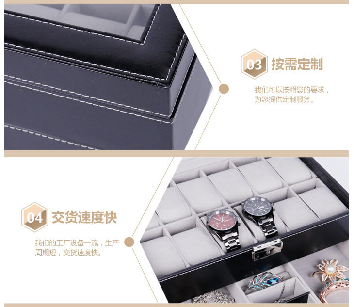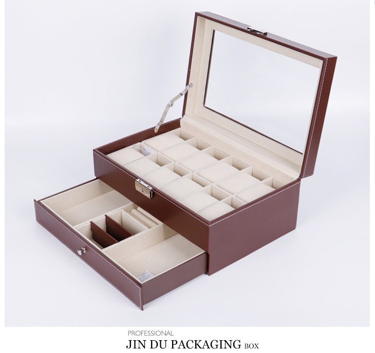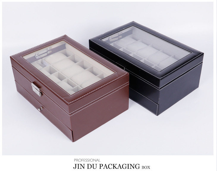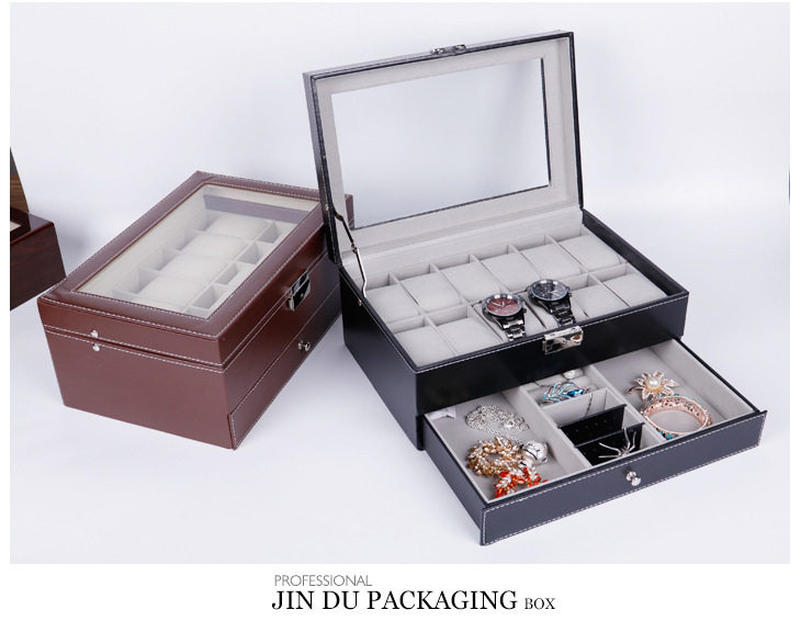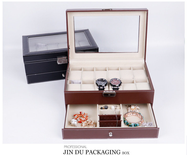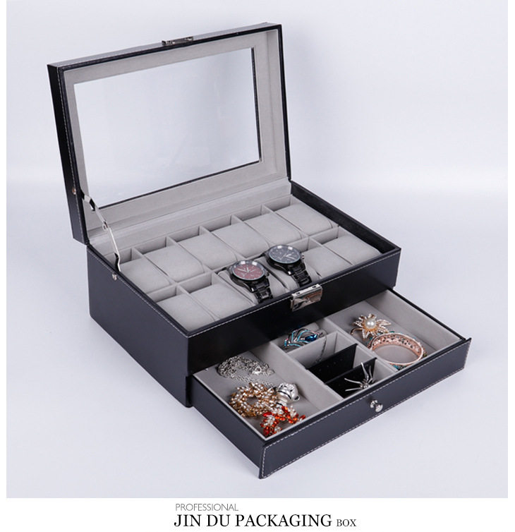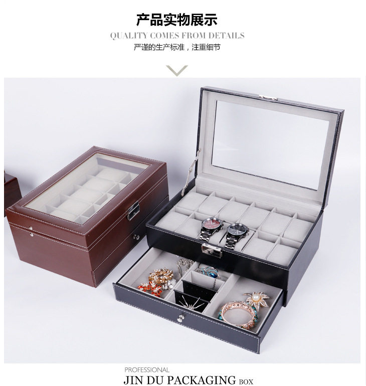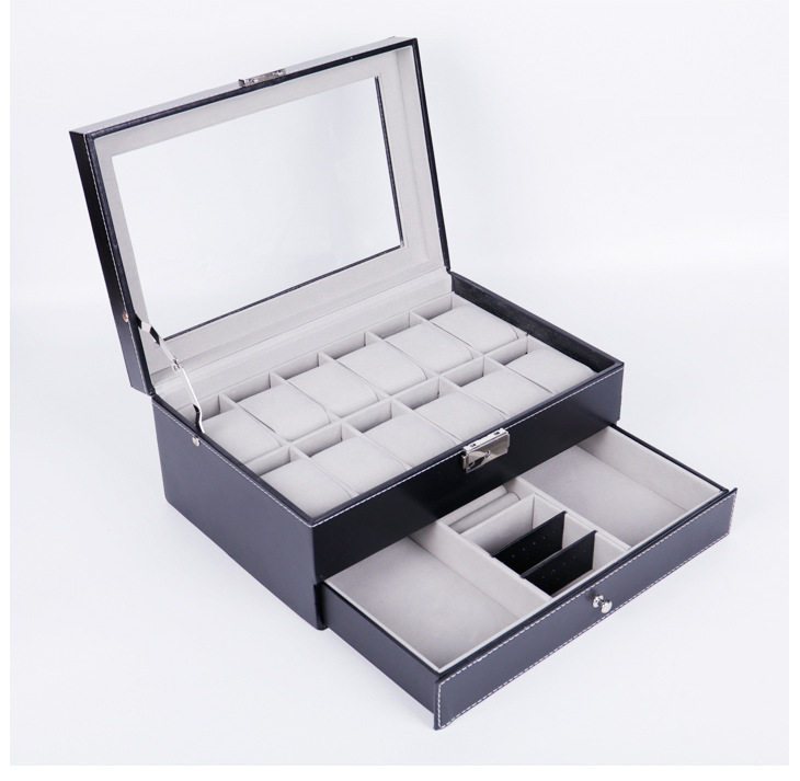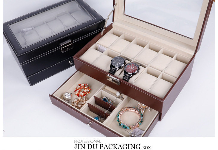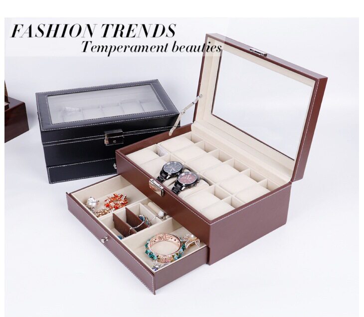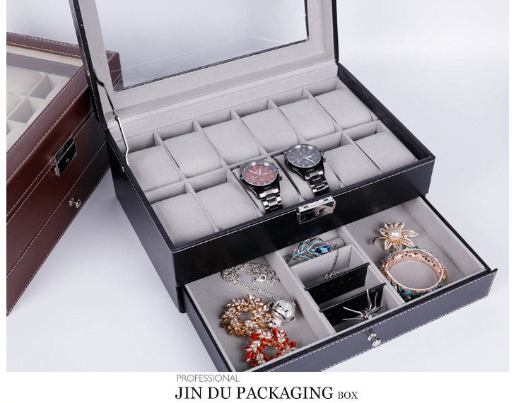 High-Quality Watch Box Double-Layer 12-Position Tempered Glass Skylight Watch Earrings Bracelet Jewelry Jewelry Storage Box