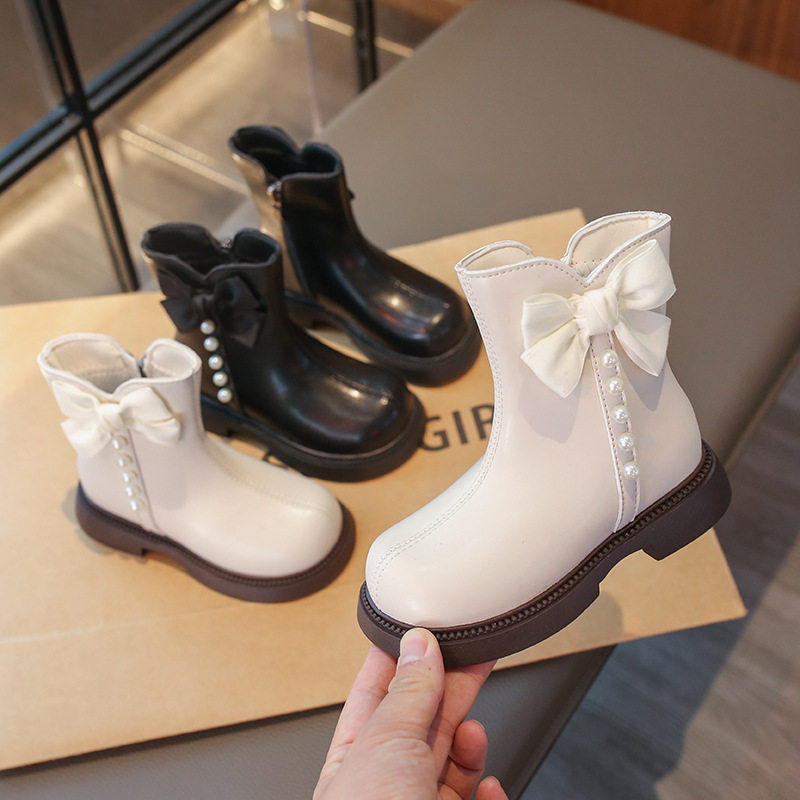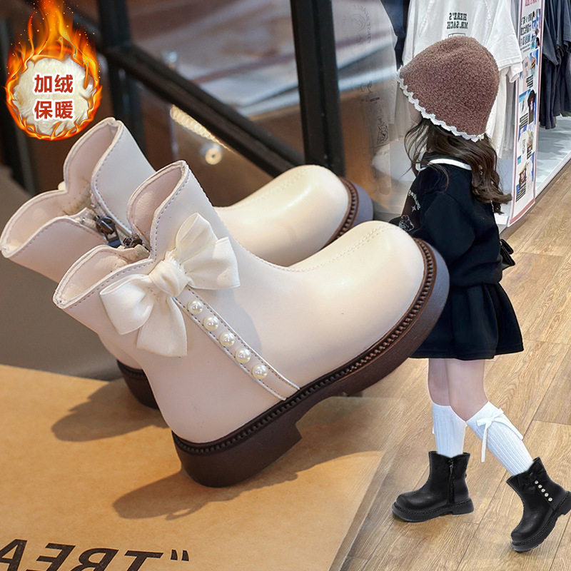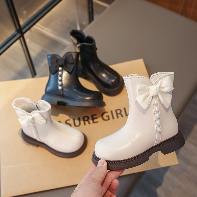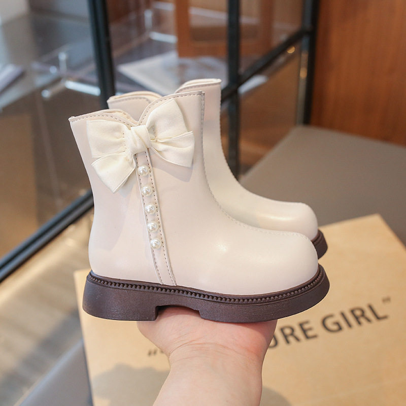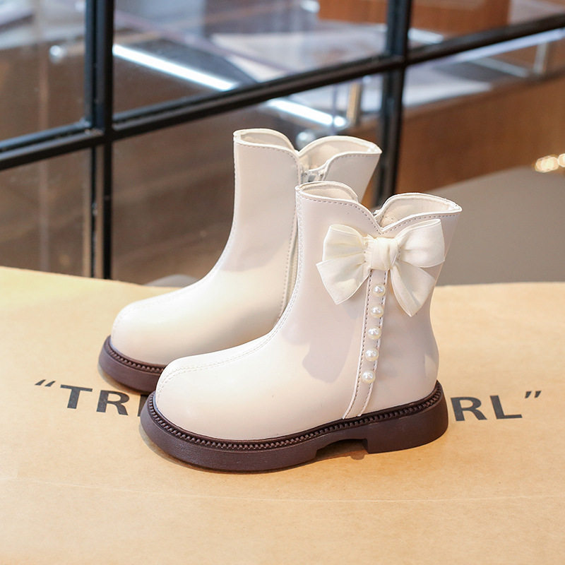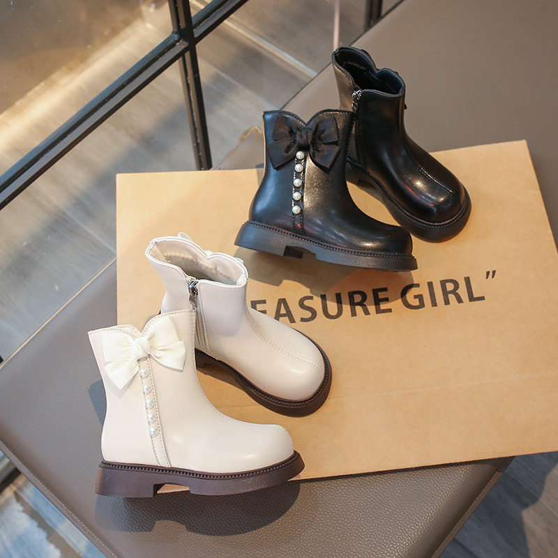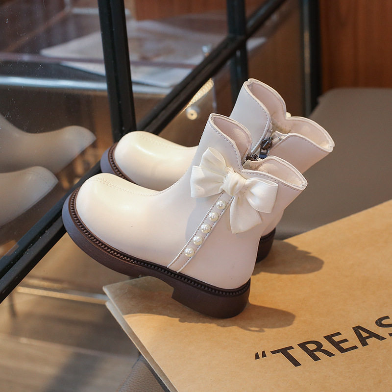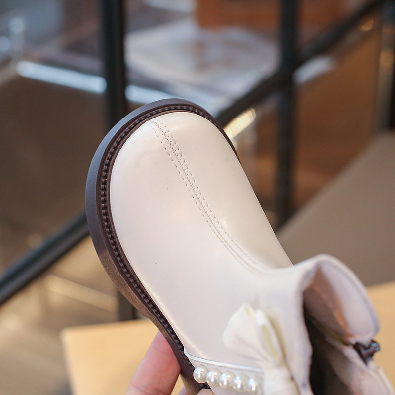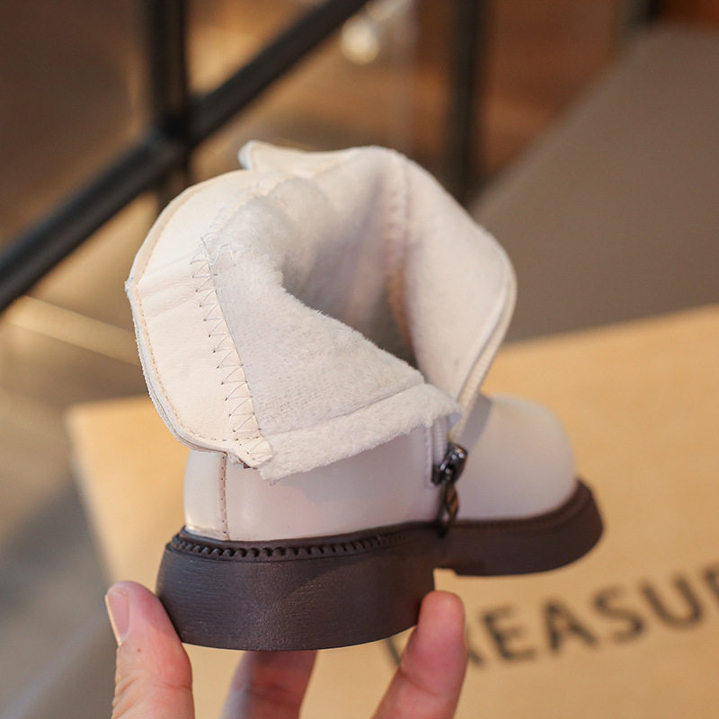 Girls' Boots Short Boots 2025 Autumn and Winter New Kidsren's Boots Fashionable and Stylish Big Kidsren's Little Girls' Leather Boots White