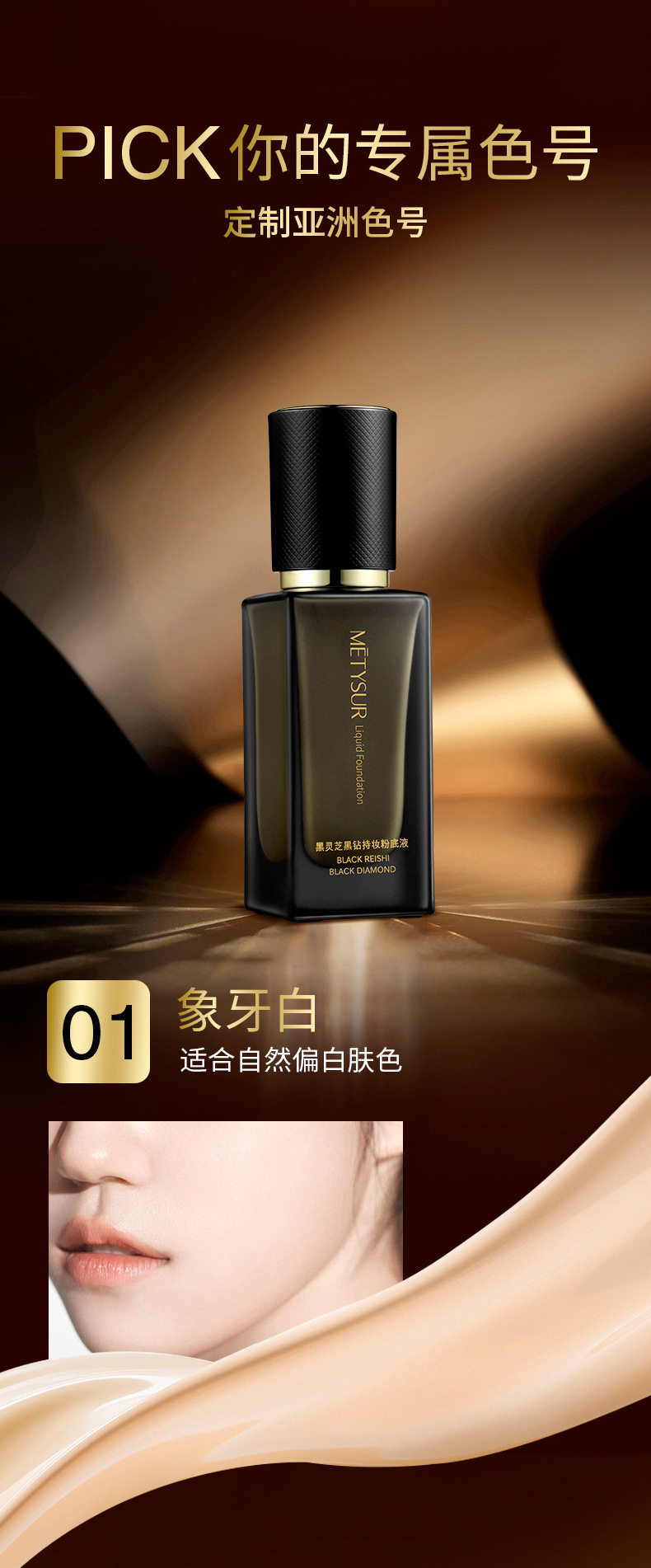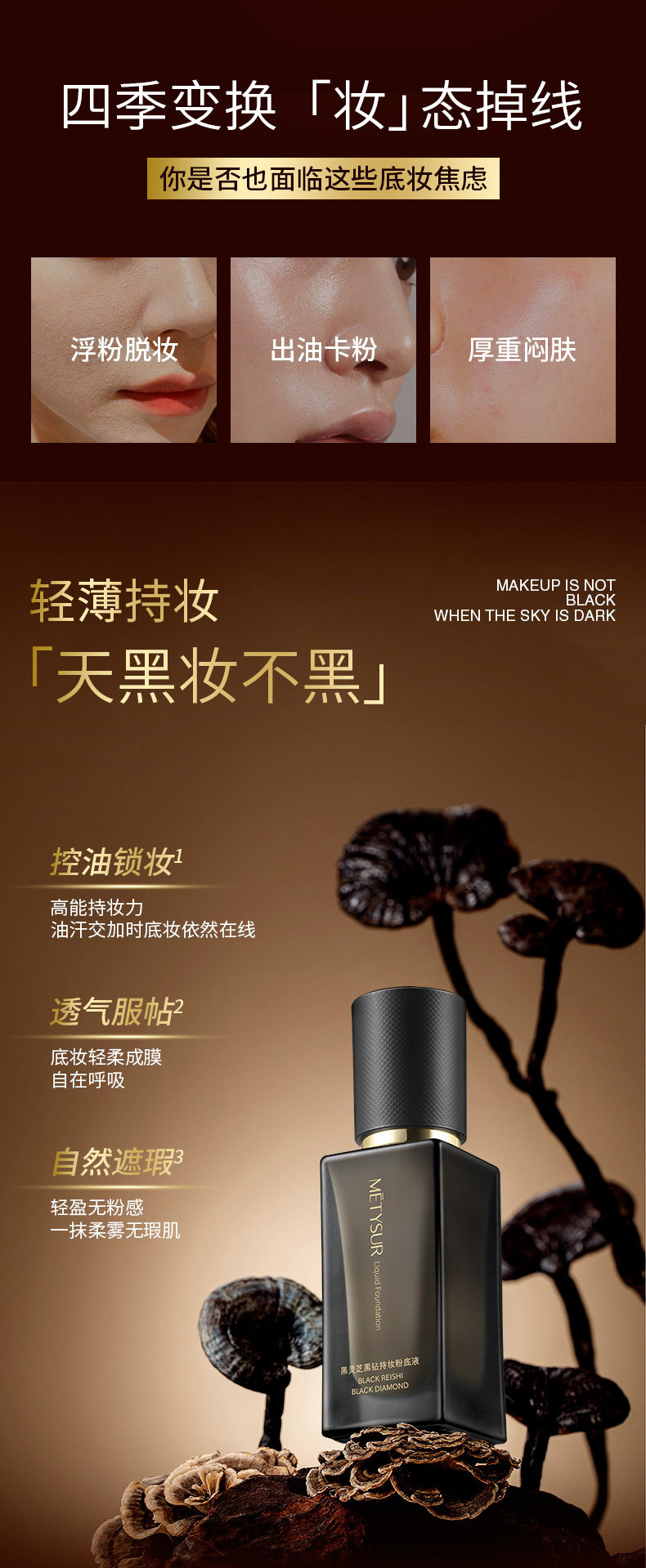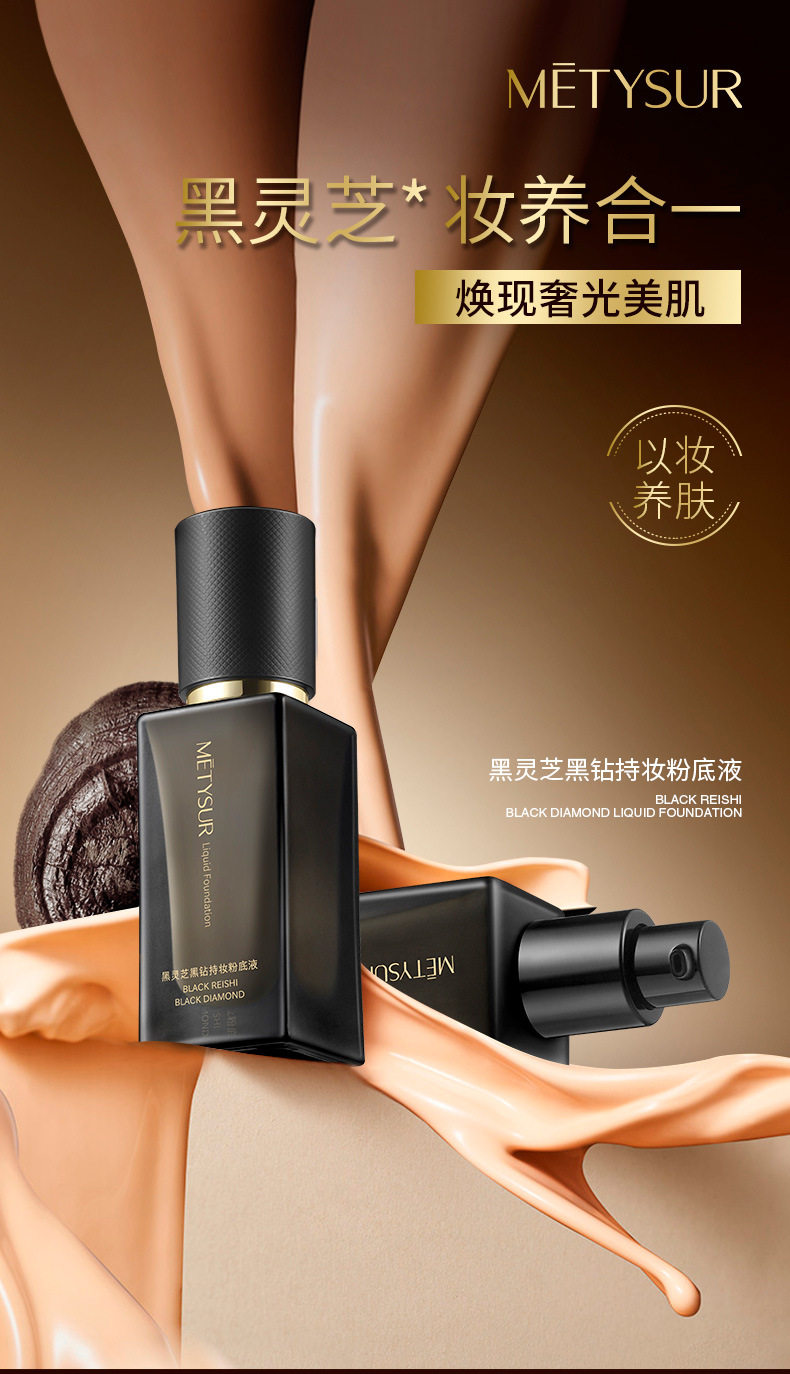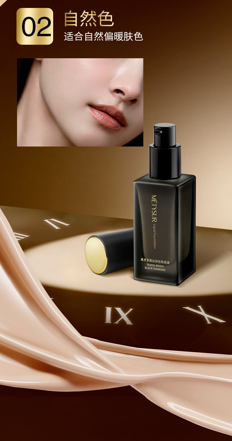 Meitixiu Black Ganoderma Black Diamond Long-Lasting Makeup Liquid Foundation Soft Mist Long-Lasting Non-Removing Makeup Moisturizing Concealer Waterproof and Sweat Resistant