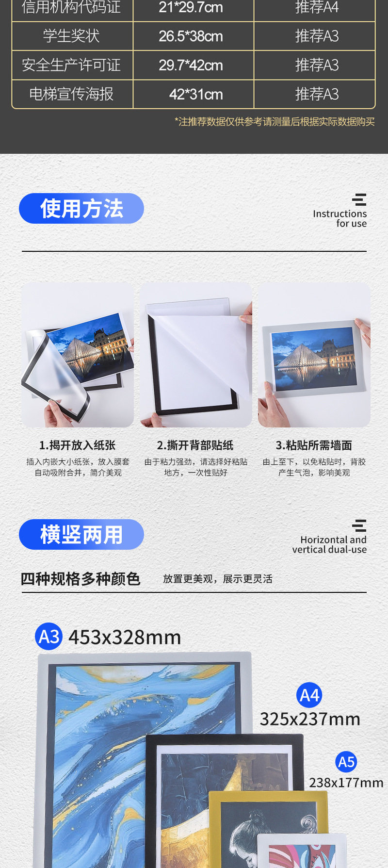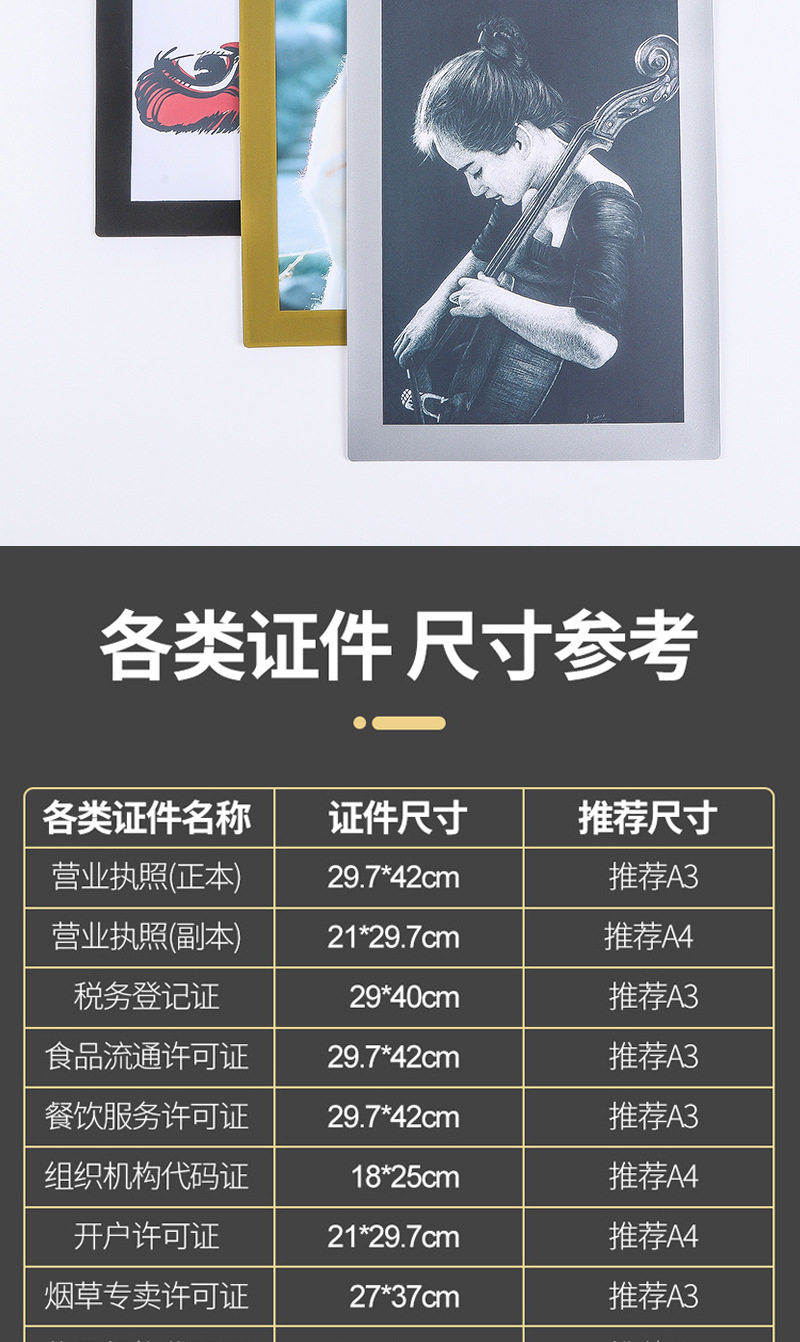 | Frame size | A3 specification 453*328mm,A4 specification 325*237mm,A5 specification 238*177mm,A6 specification 174*132mm |