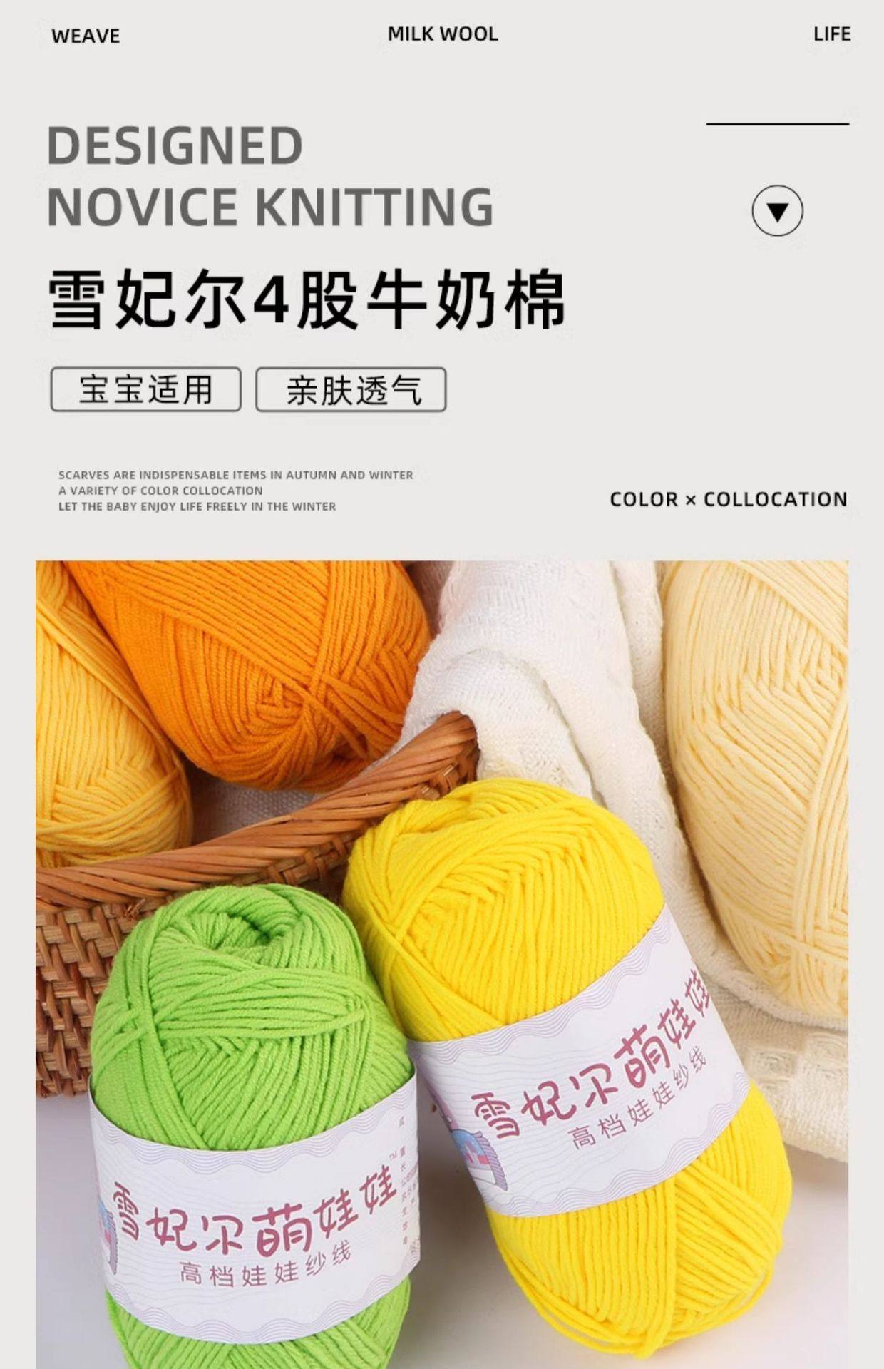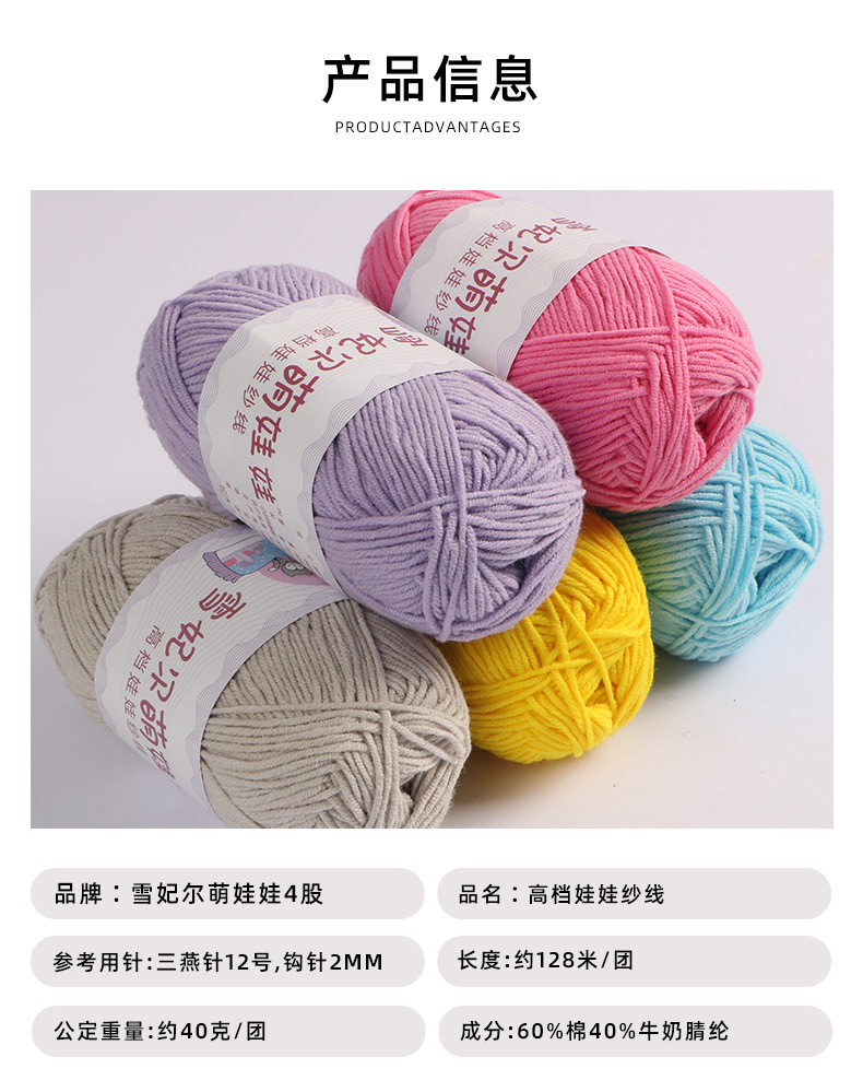 Snow Fairy Cute Doll Milk Cotton Baby Yarn Hand-Knitted Baby Cotton Thread Special Yarn Ball Four Strands
