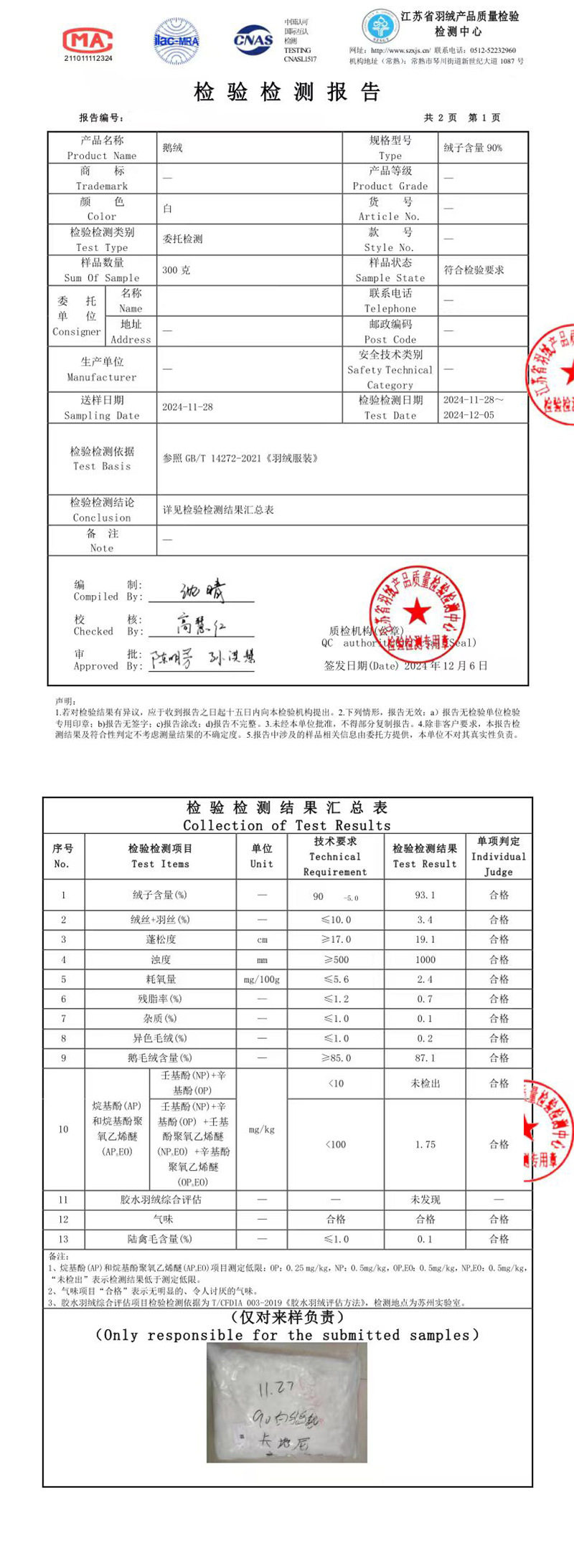 | Quality inspection report number | Contact customer service |
