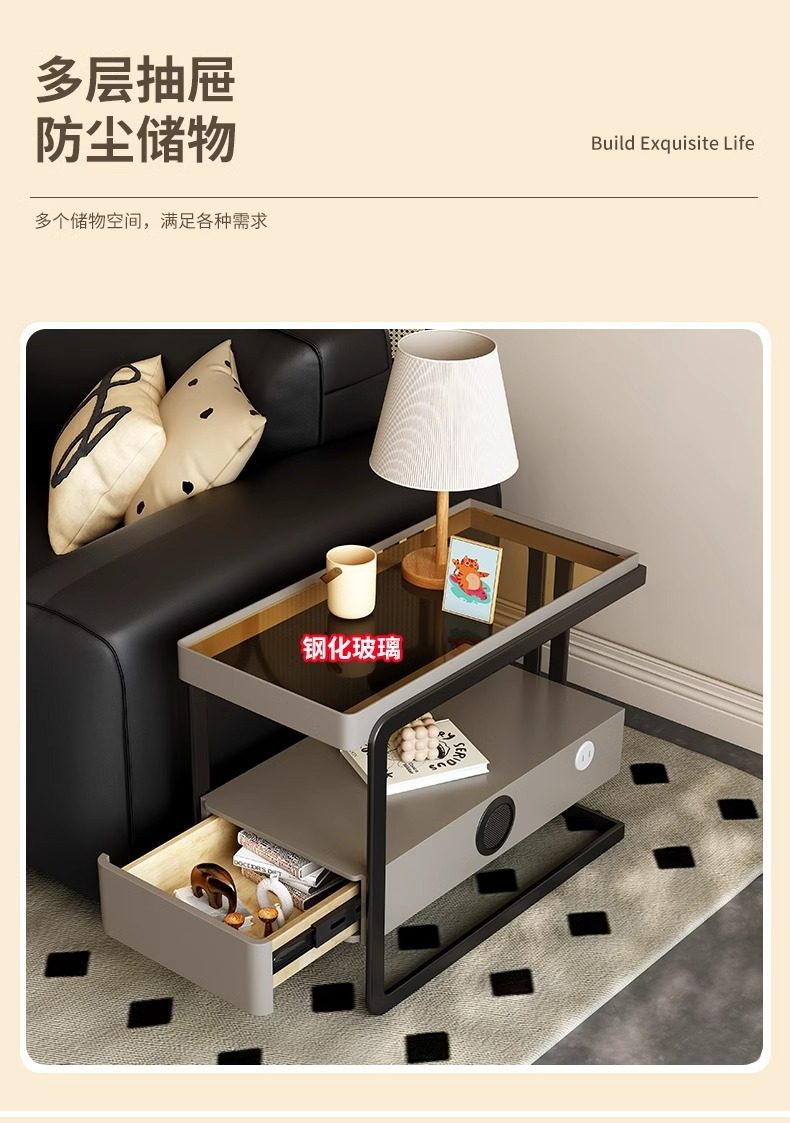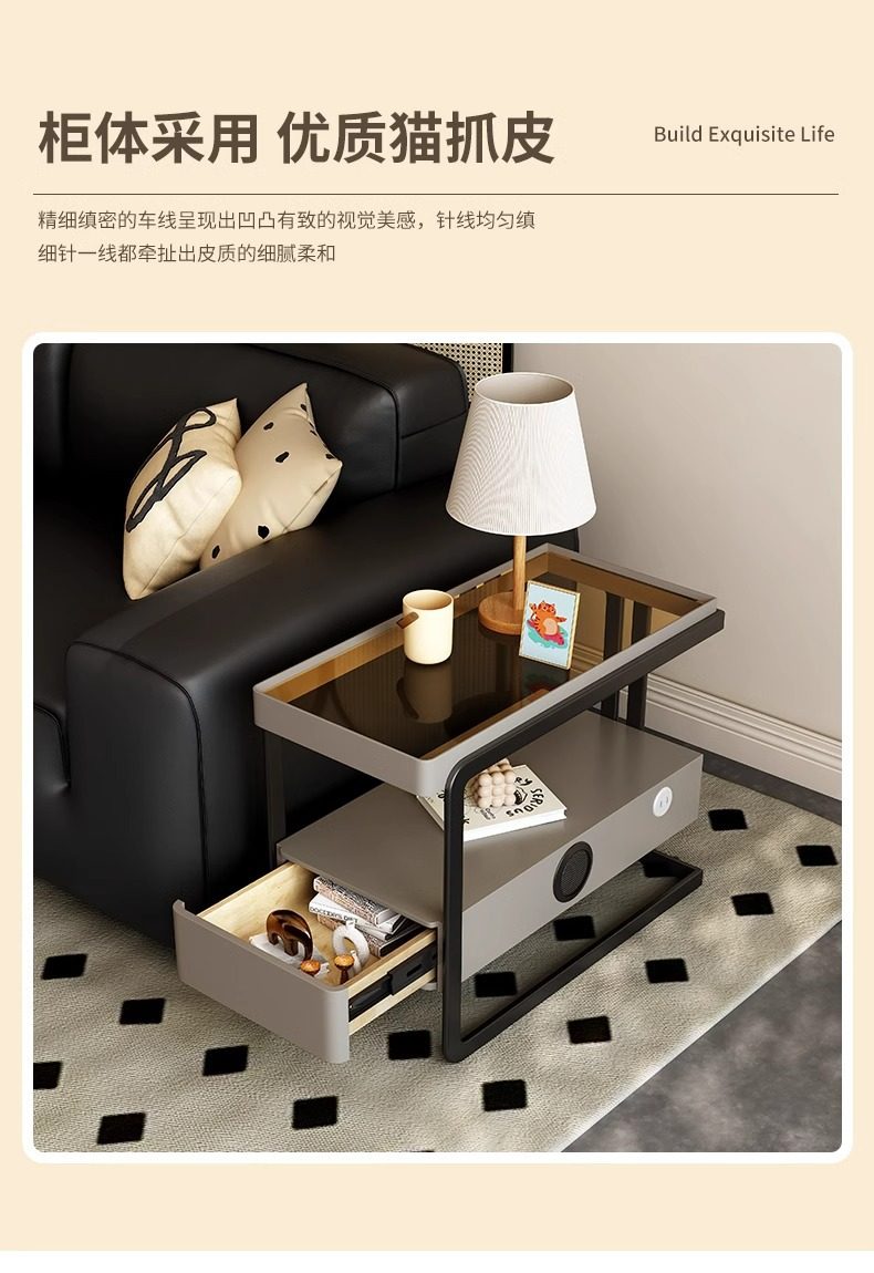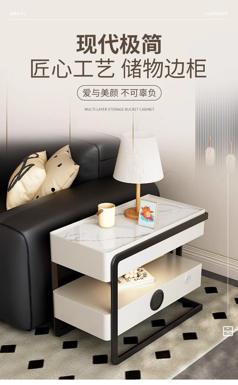 High-End Sofa Side Cabinet, Light Luxury Storage Cabinet, Living Room Movable Side Storage Cabinet, 2025 New Side Table and Corner Table