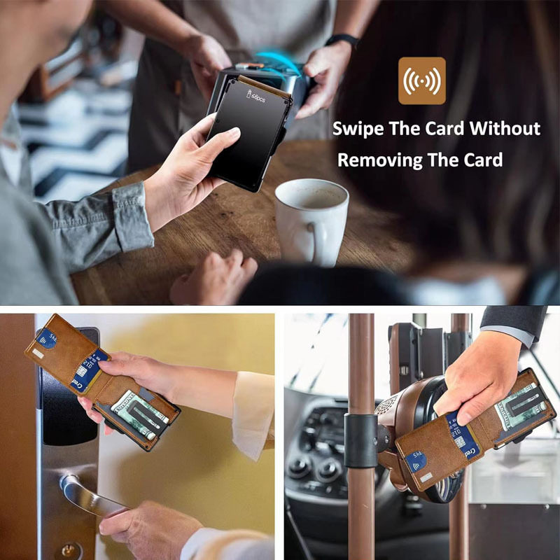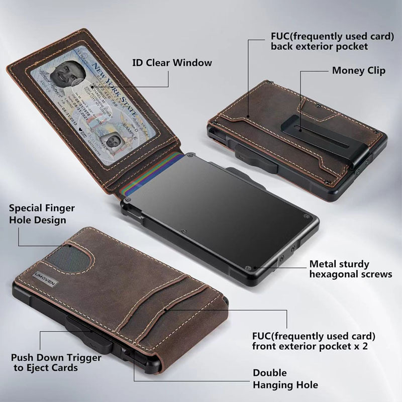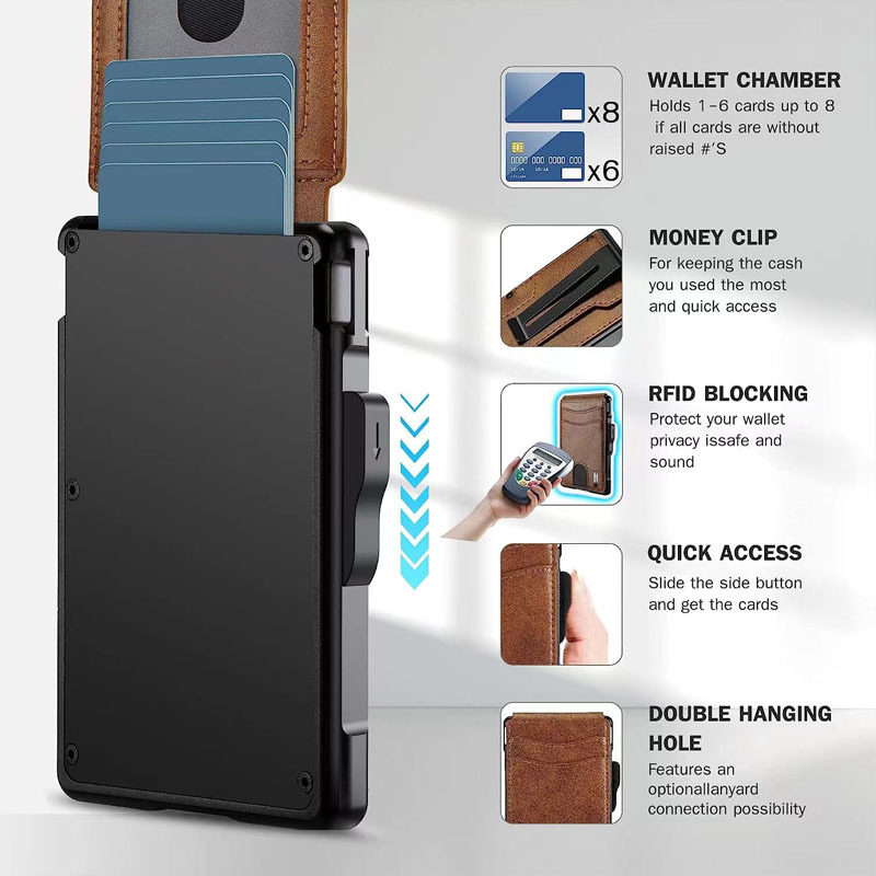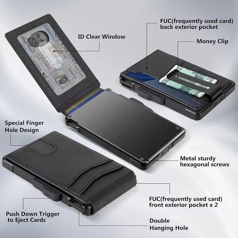 Cross-Border Hot-Selling Rfid Men's Card Holder Metal Anti-Magnetic Anti-Theft Automatic Card Ejection Wallet Credit Card Business Card Box Wallet