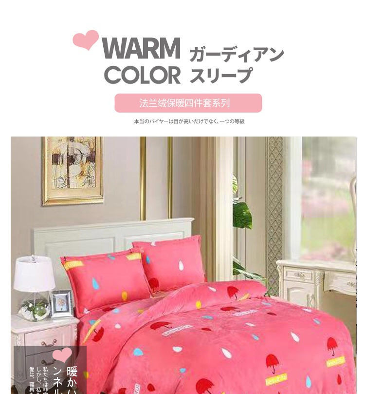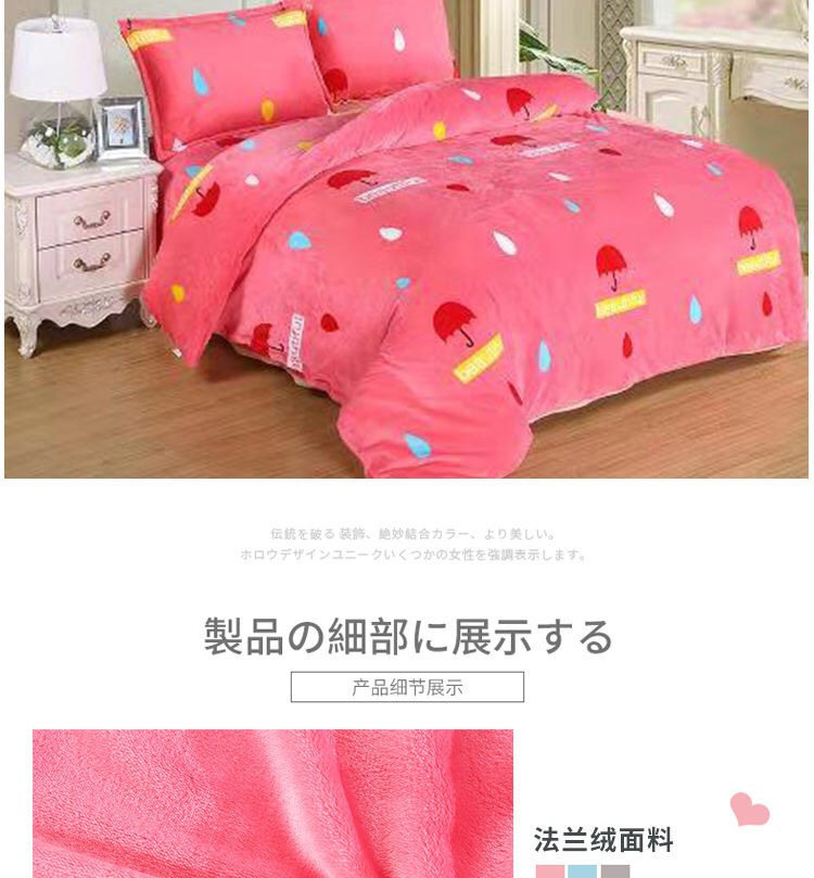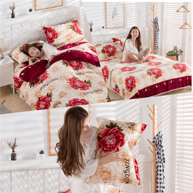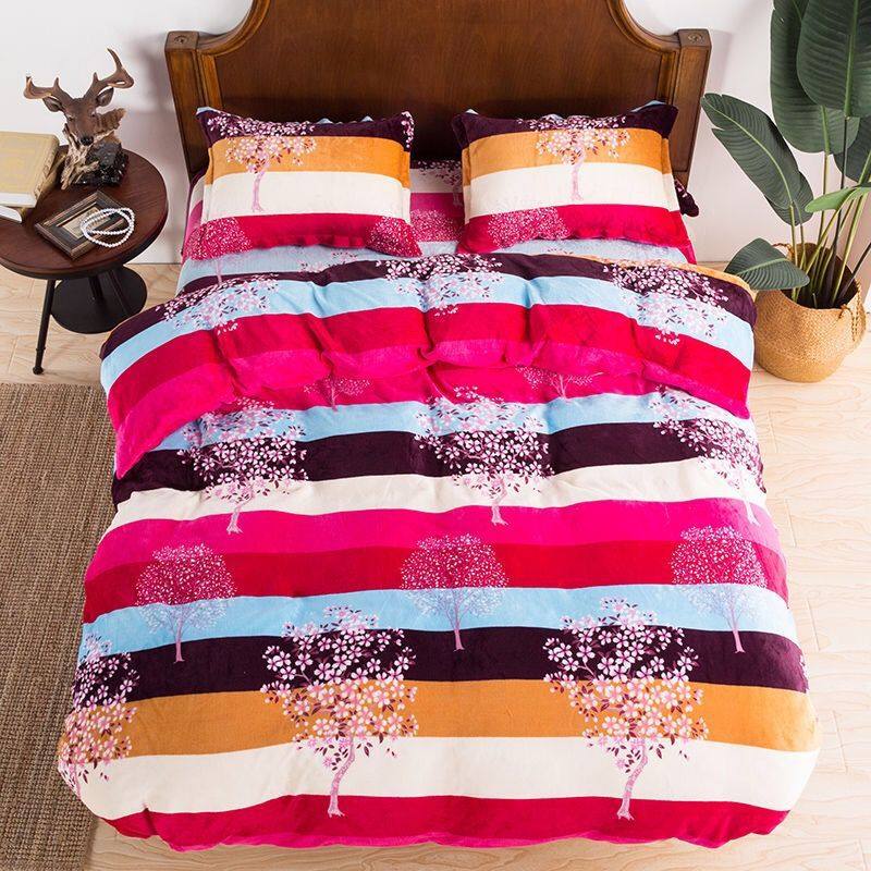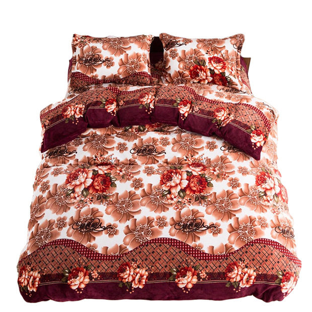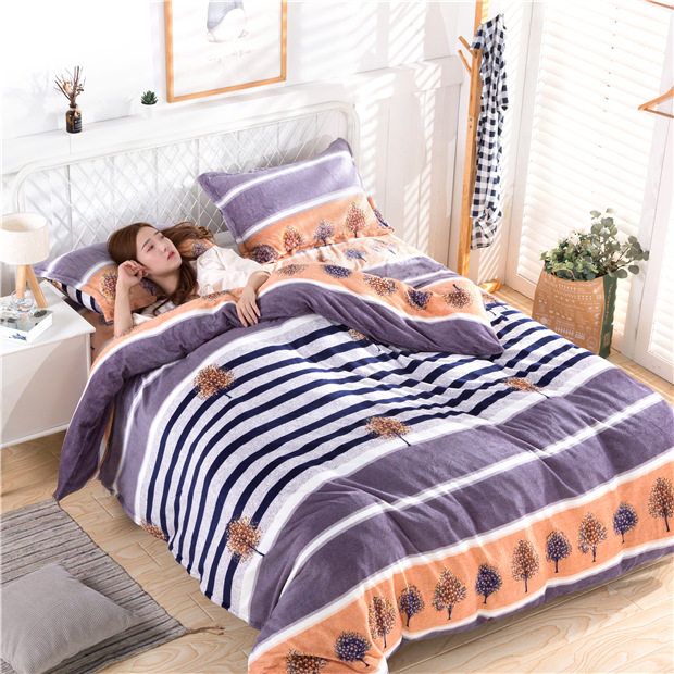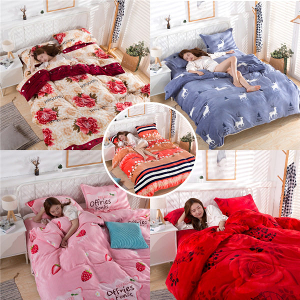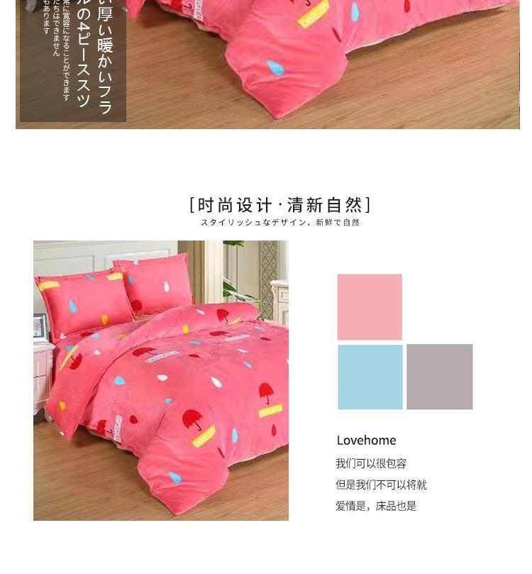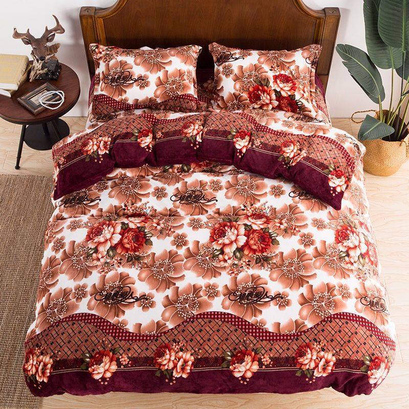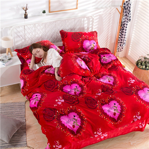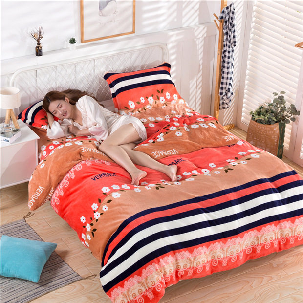 Warm Four-Piece Set, Thickeneded Flannel Quilt Cover, Bed Sheets, Pillowcases, Double-Sided Plush Quilt Cover, Coral Velvet Three-Piece Set Factory