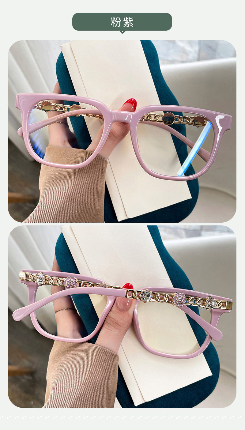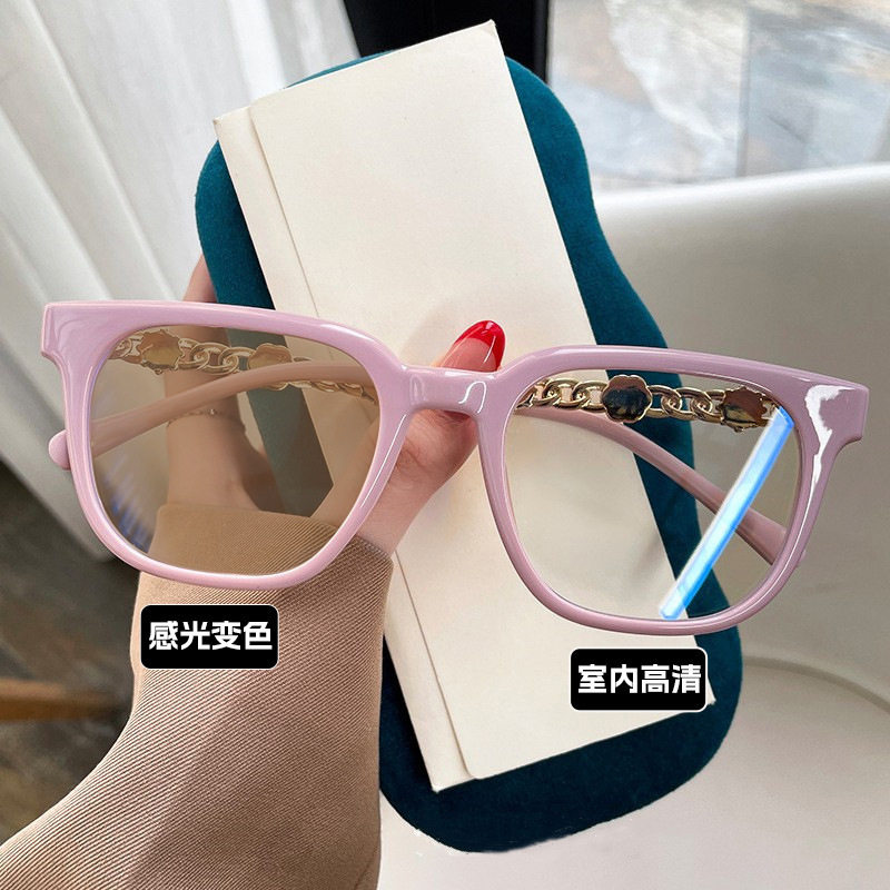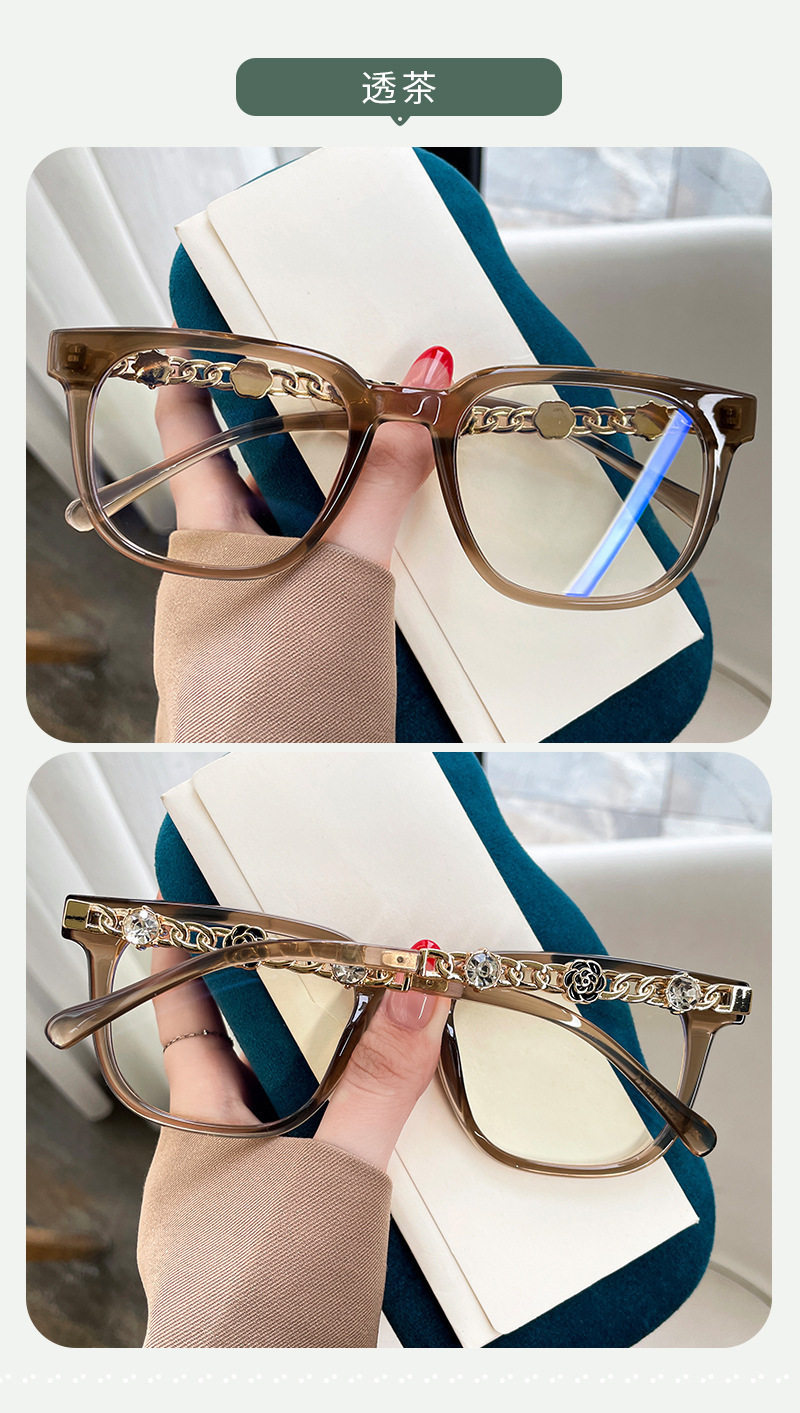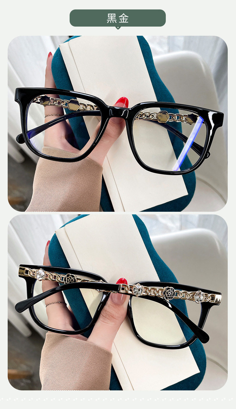 Camellia Glasses Cross-Border European and American Style Internet Celebrity Large Frame Small Fragrance Diamond-Encrusted Anti-Blue Light Flat Mirror Color-Changing Glasses Frame