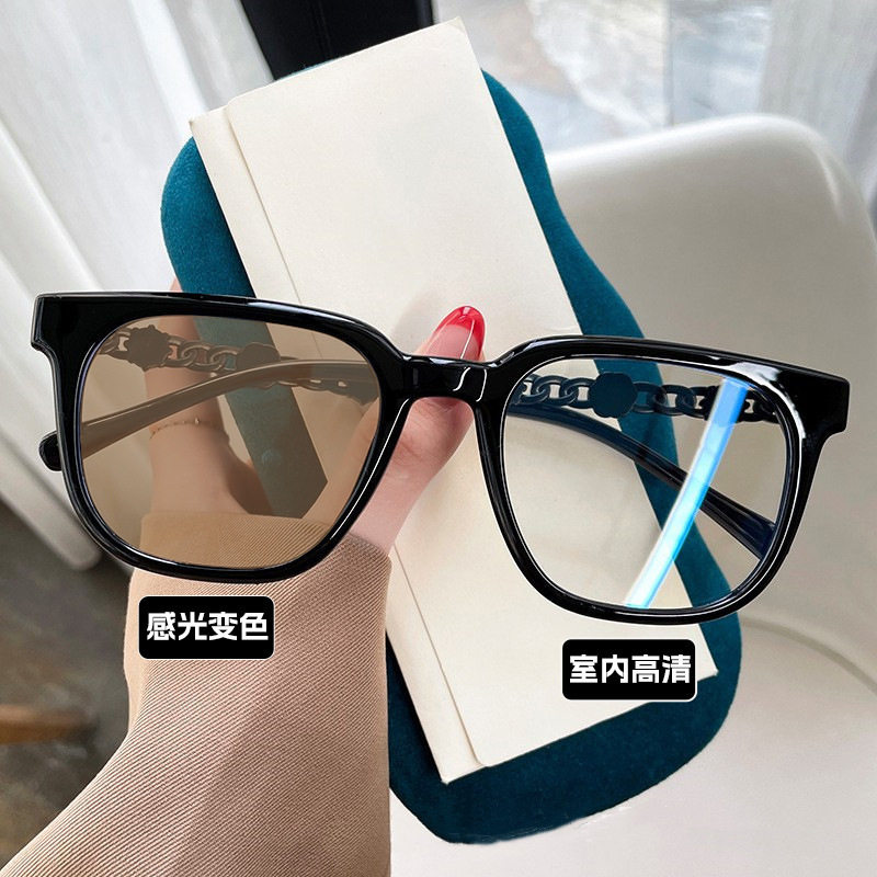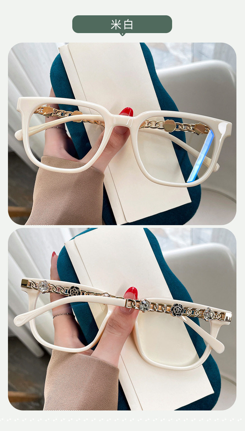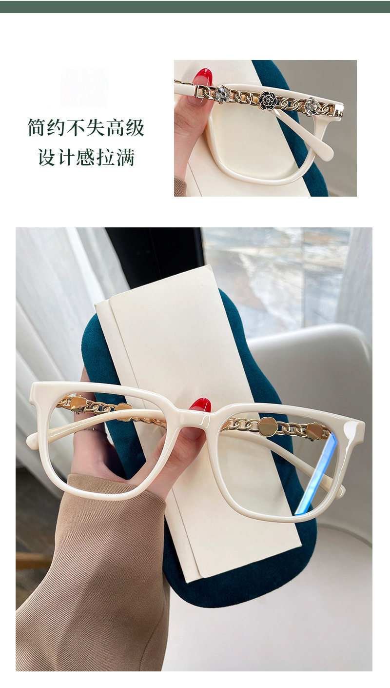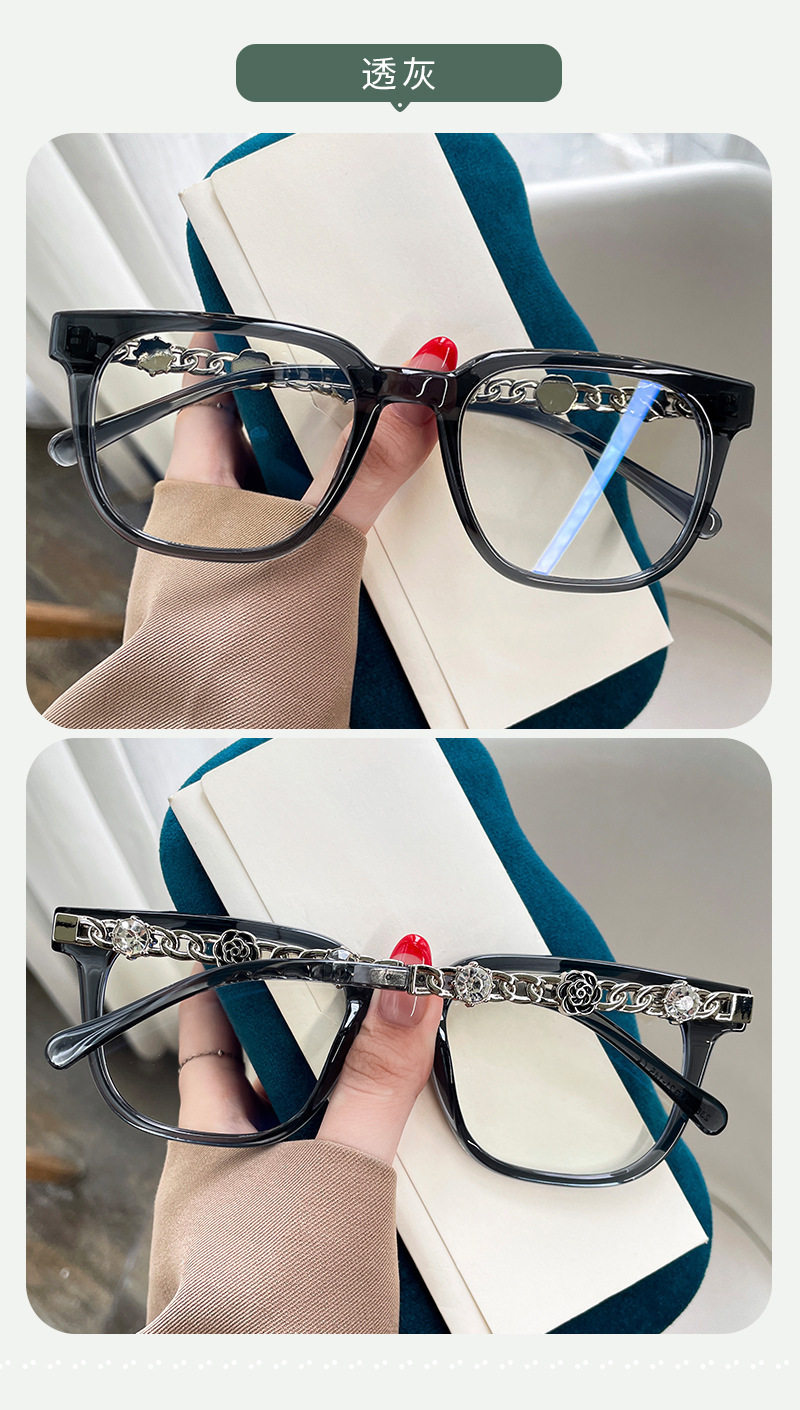 Camellia Glasses Cross-Border European and American Style Internet Celebrity Large Frame Small Fragrance Diamond-Encrusted Anti-Blue Light Flat Mirror Color-Changing Glasses Frame
