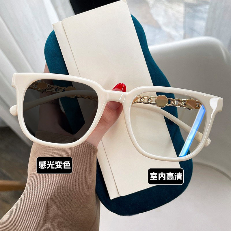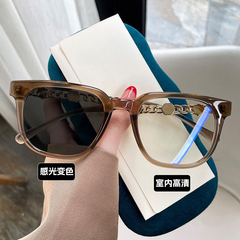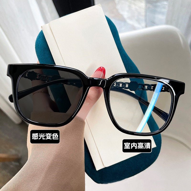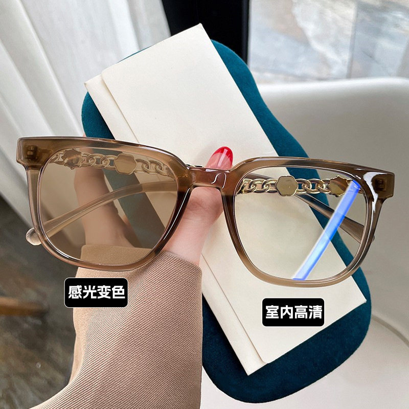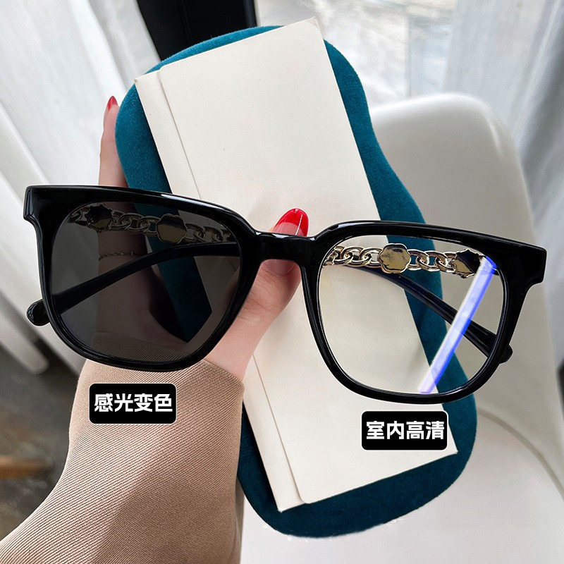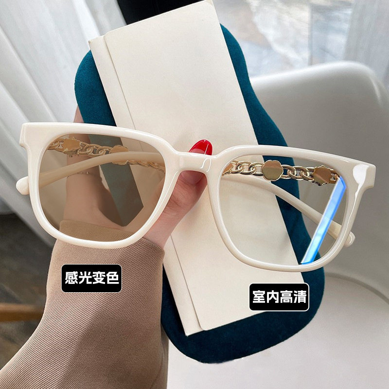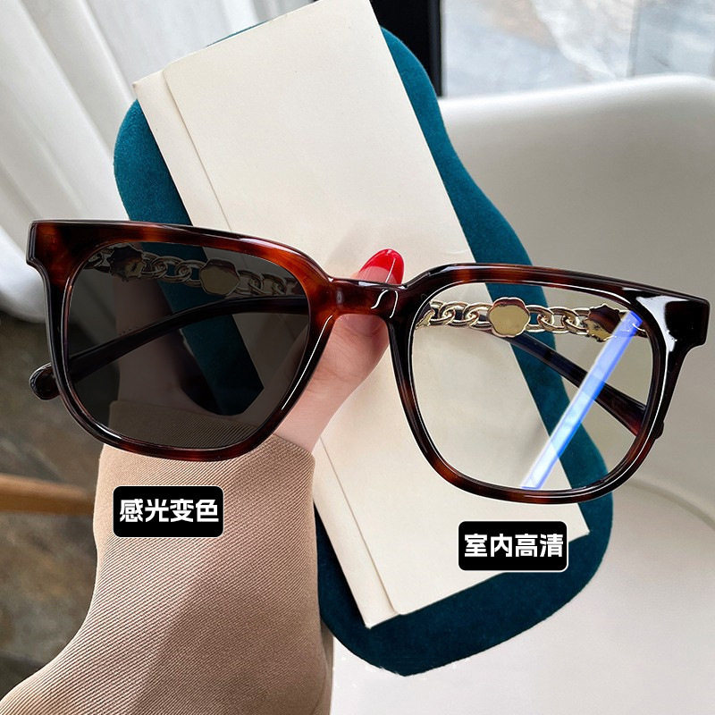 Camellia Glasses Cross-Border European and American Style Internet Celebrity Large Frame Small Fragrance Diamond-Encrusted Anti-Blue Light Flat Mirror Color-Changing Glasses Frame