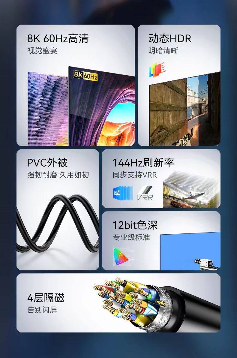 | Line length | Version 2.0 true 4k [hdmi cable],New version 2.1 true 8k [hdmi cable],New version upgrade true 8k [hdmi cable] |