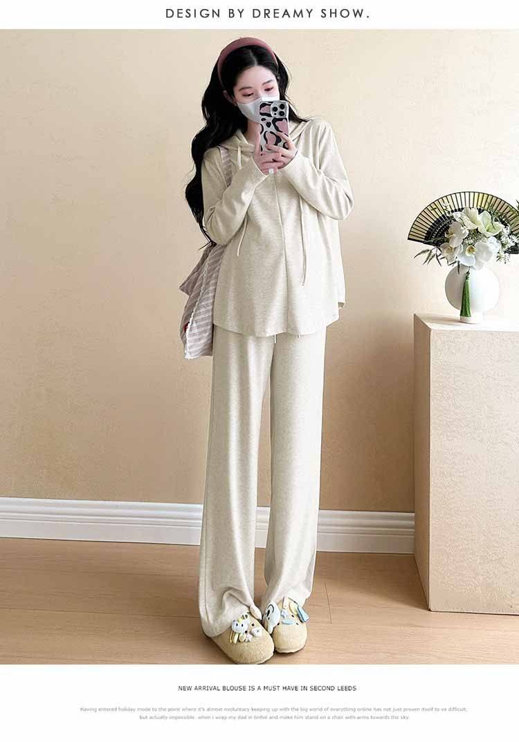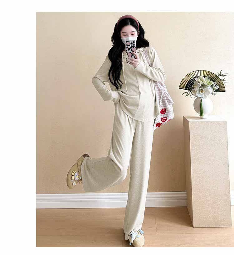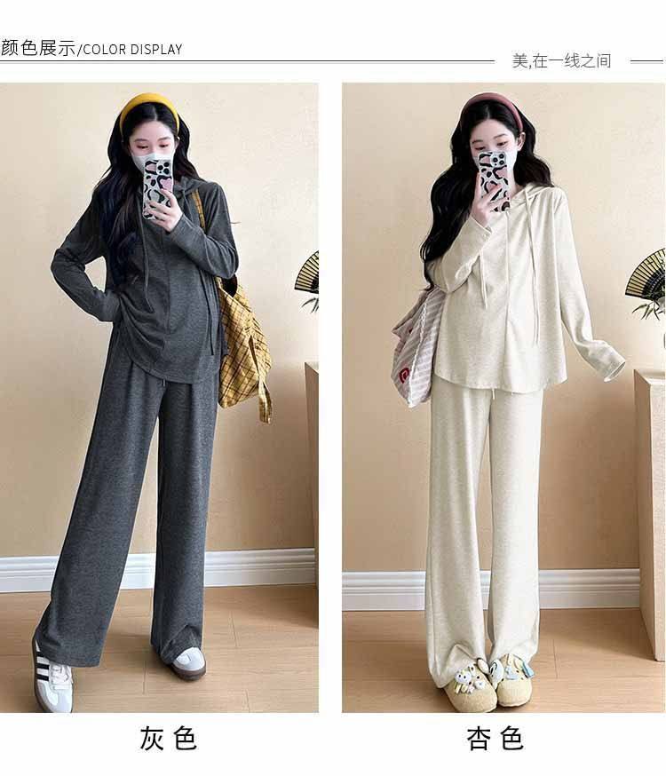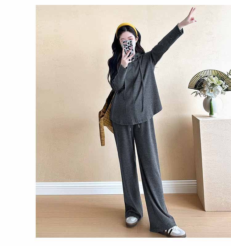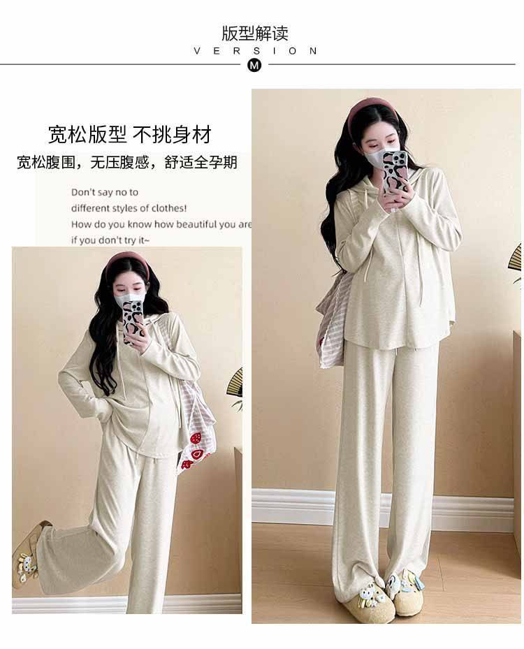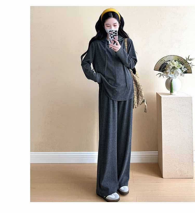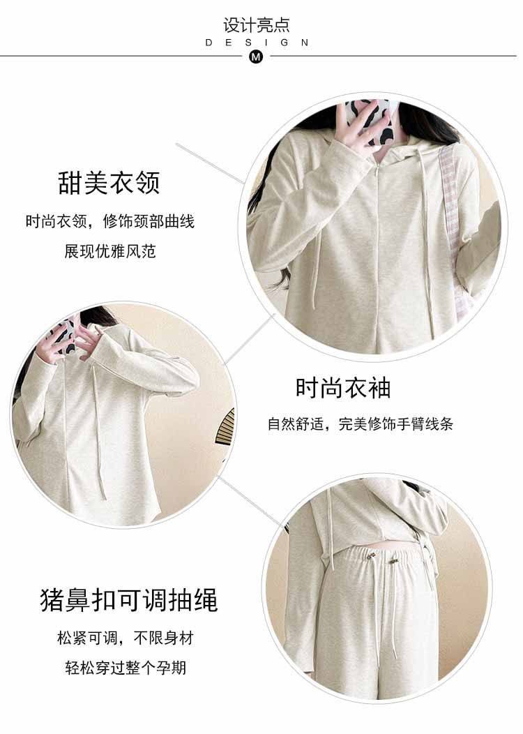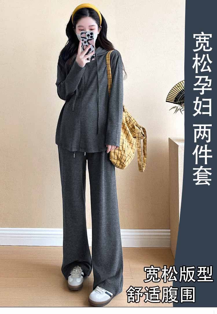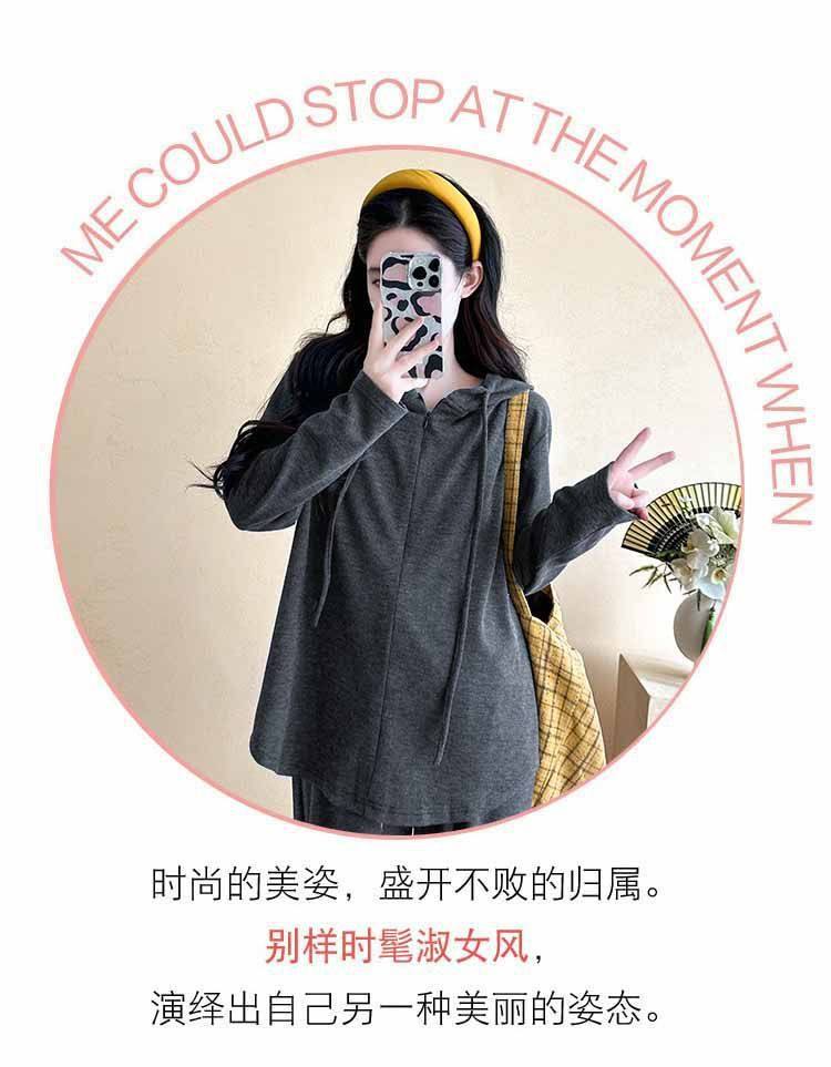 [Customized] Korean Style Autumn and Winter New Velvet Hooded Half-Zip T-Shirt for Pregnant Women, Loose Belly-Covering Slimming Look Sweatshirt