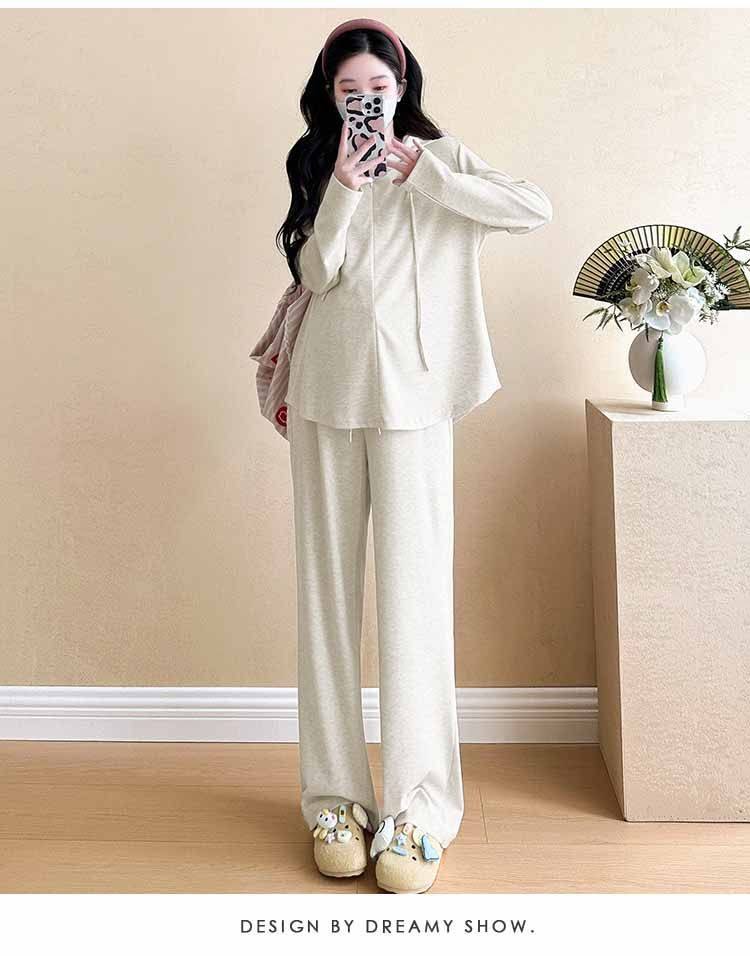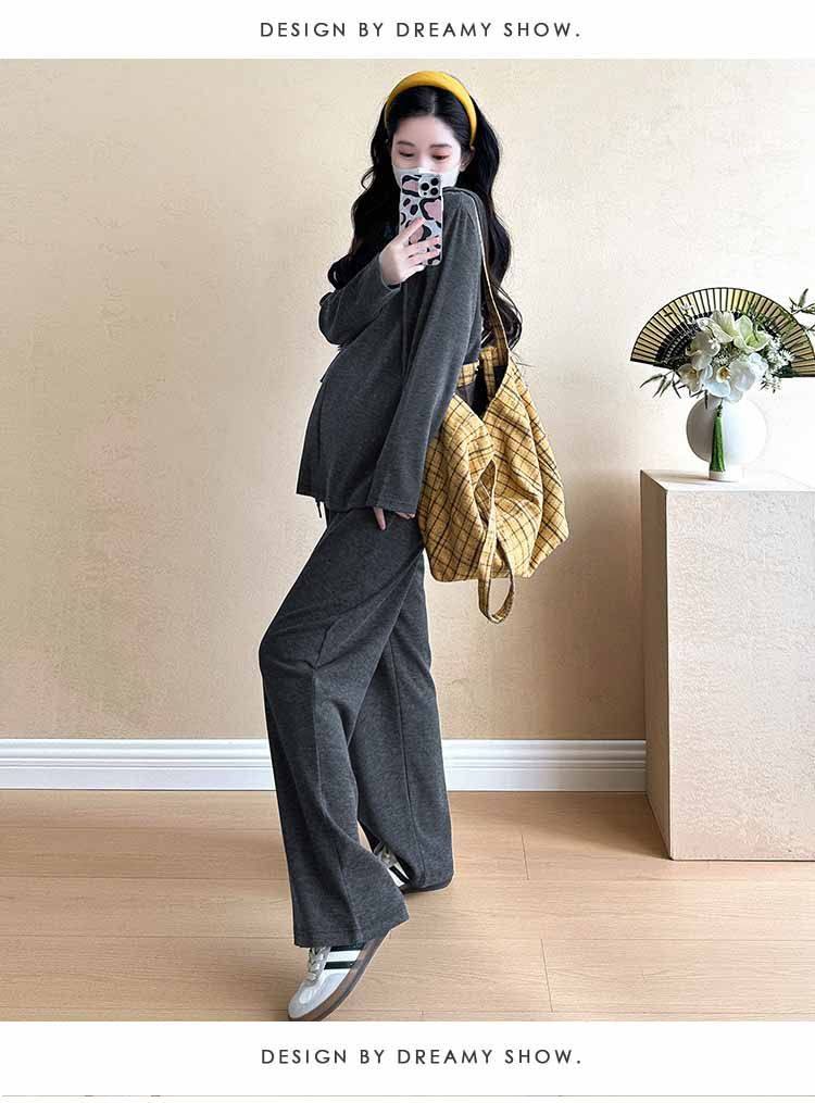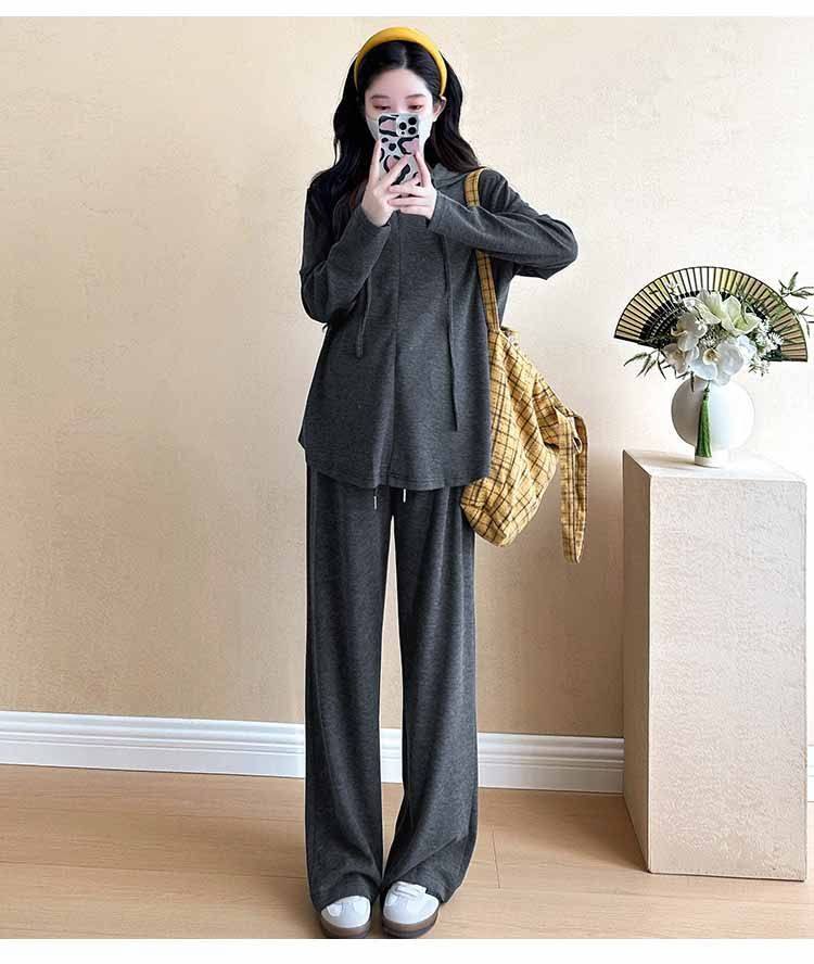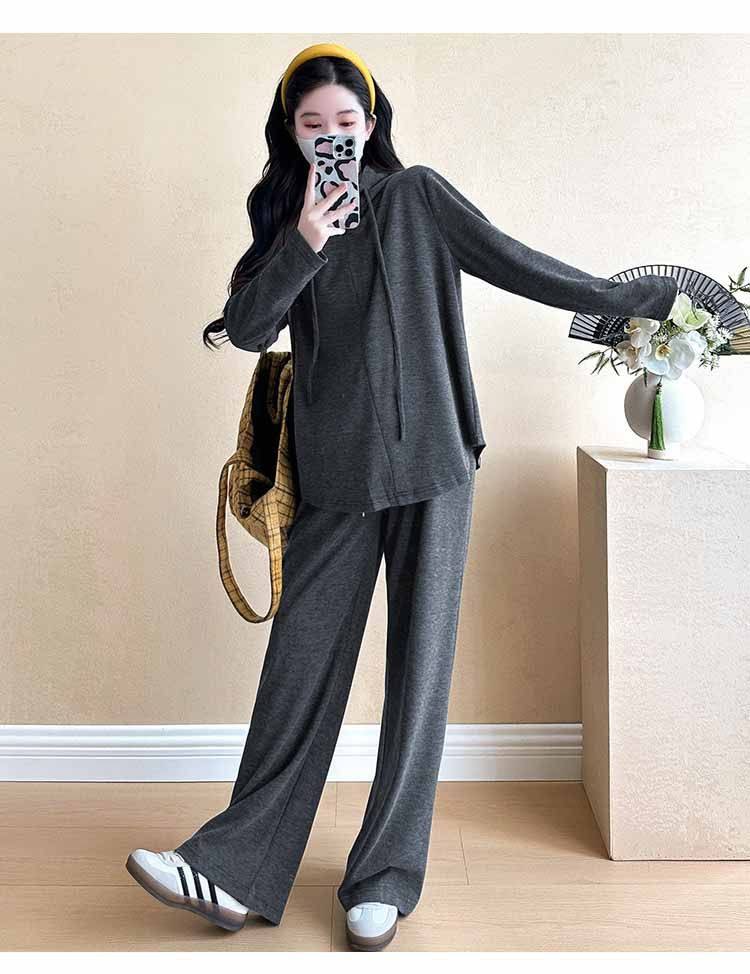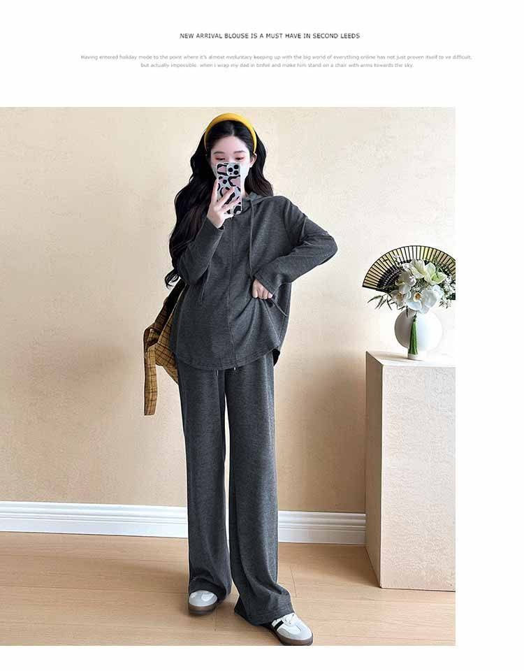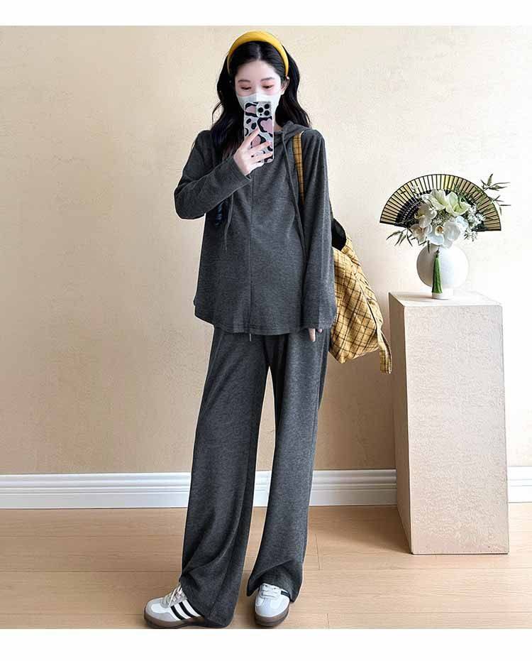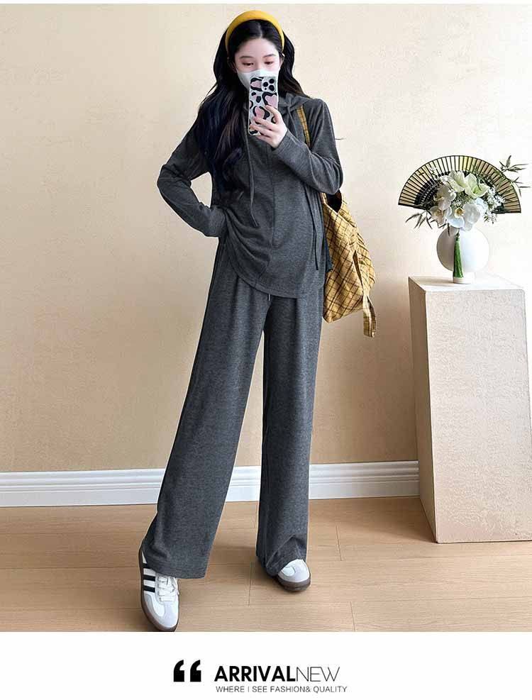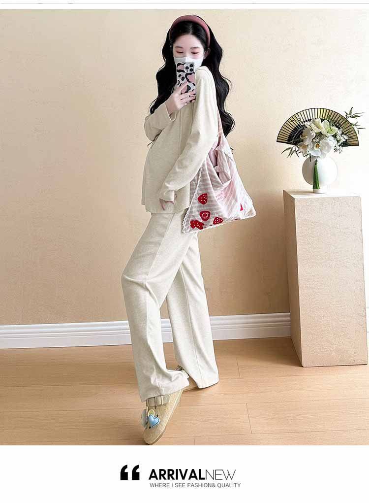 [Customized] Korean Style Autumn and Winter New Velvet Hooded Half-Zip T-Shirt for Pregnant Women, Loose Belly-Covering Slimming Look Sweatshirt