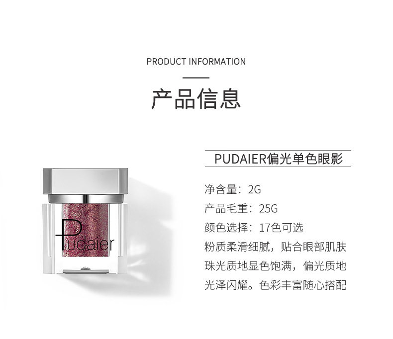 Amazon Pudaier European and American Makeup Polarized Single Color Eye Shadow Pearlescent Non-Smudge Color Flash Eye Shadow Wholesale