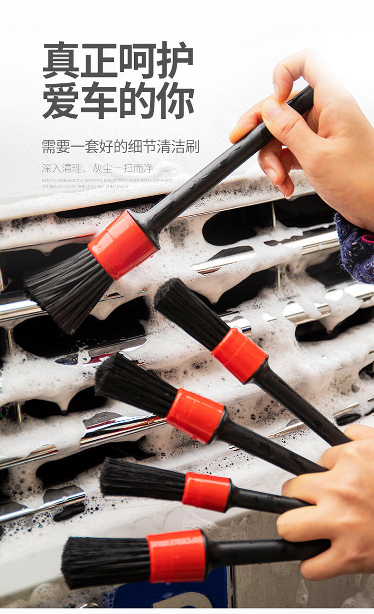 Car Interior Cleaning Brush 5-Piece Set Wheel Hub Beauty Maintenance Gap Round Head Brush Car Wash Multi-Functional Detail Brush