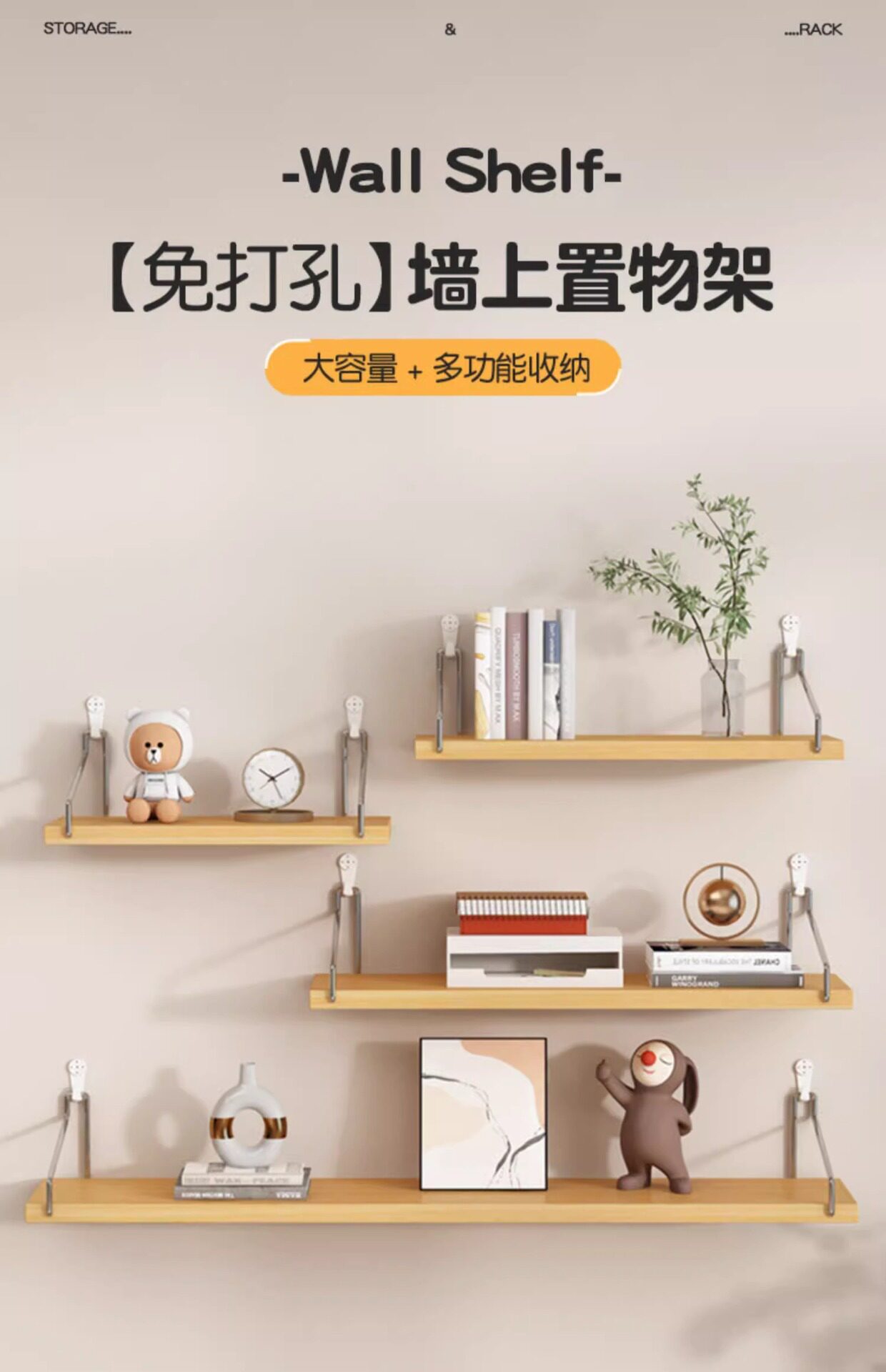 No-Drill Wall-Mounted Shelf Bedside Wall-Mounted Partition Living Room Wall Projector Router Shelf Wall-Mounted Bookshelf