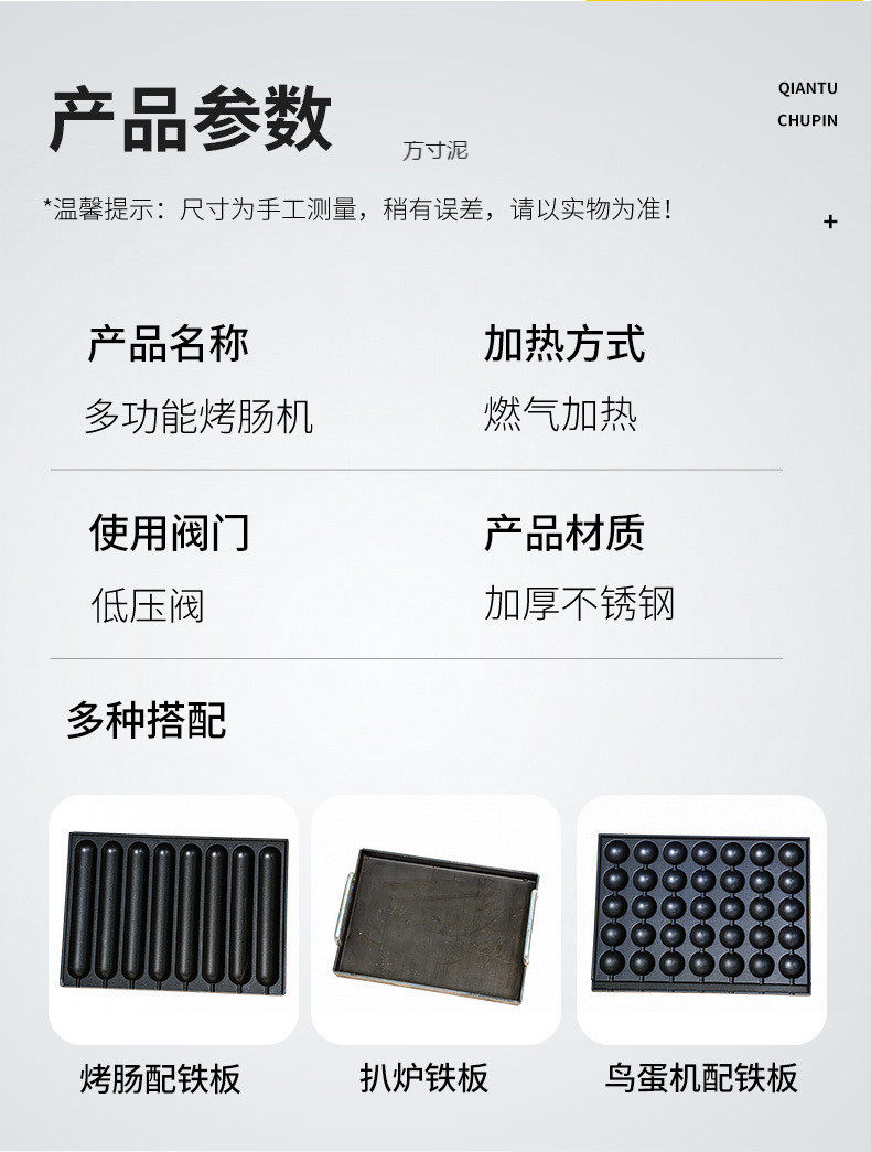 | Color | 8 skewers---highly recommended by the store owner,16 skewers---highly recommended by the store owner,Grilled sausage + quail eggs---highly recommended by the owner,70-hole quail eggs---strongly recommended by the store owner,16 skewers with brand---strongly recommended by the store owner,Branded grilled sausage + quail eggs---highly recommended by the store owner,Branded 70-hole quail eggs---strongly recommended by the store owner,Grilled sausage + octopus balls---highly recommended by the shop owner,Grilled sausages + hot plates---highly recommended by the owner,Big iron plate machine---strongly recommended by the owner,Quail eggs + iron plate---highly recommended by the shop owner,Branded grilled sausage + octopus balls---highly recommended by the shop owner,Branded grilled sausage + iron plate---strongly recommended by the owner,Branded large griddle machine - highly recommended by store owner,Sausage + 8-hole burger machine---recommended by the store owner,8cm 8-hole burger + burger machine---strongly recommended by the owner,24 skewers---recommended by the shop owner,Grilled sausage + iron plate + quail eggs---highly recommended by the shop owner,Grilled sausage + large griddle---highly recommended by the shop owner,Grilled sausage 2 + quail eggs---highly recommended by the shop owner,Grilled sausage + bird eggs + octopus balls---highly recommended by the shop owner,Grilled sausage + bird eggs + hamburger machine---recommended by the shop owner,Branded grilled sausage + quail eggs + iron plate---highly recommended by the store owner |