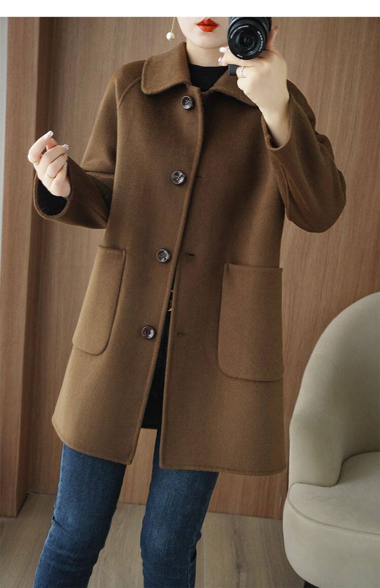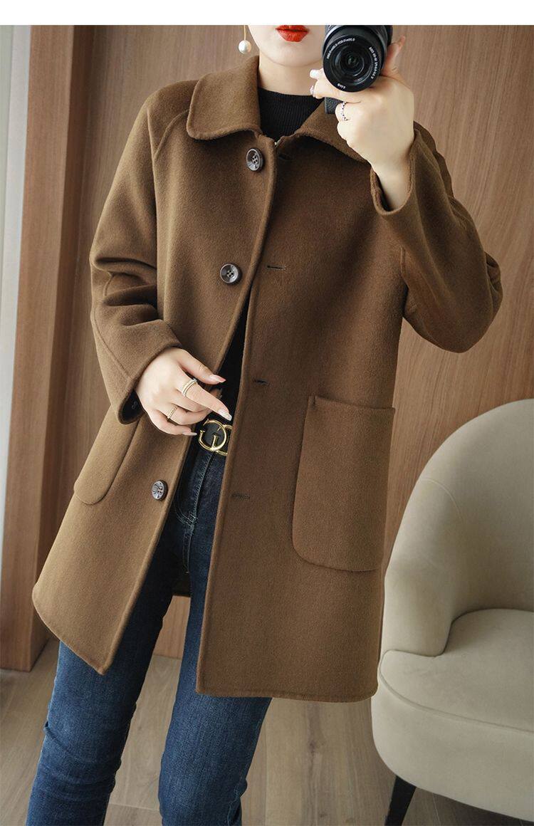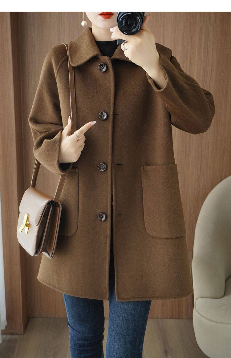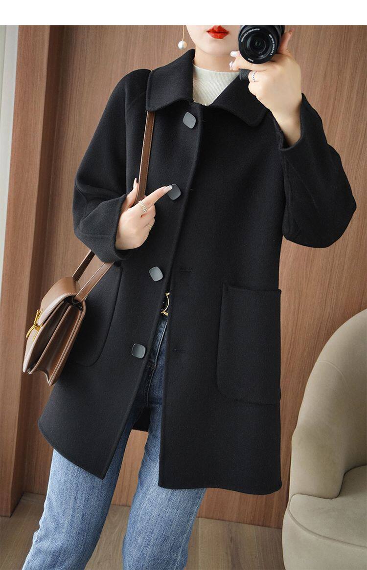Wool Double-Sided Woolen Wool Outwear for Women Winter Hepburn Style Slim Mid-Length Doll Collar Small Outwear
