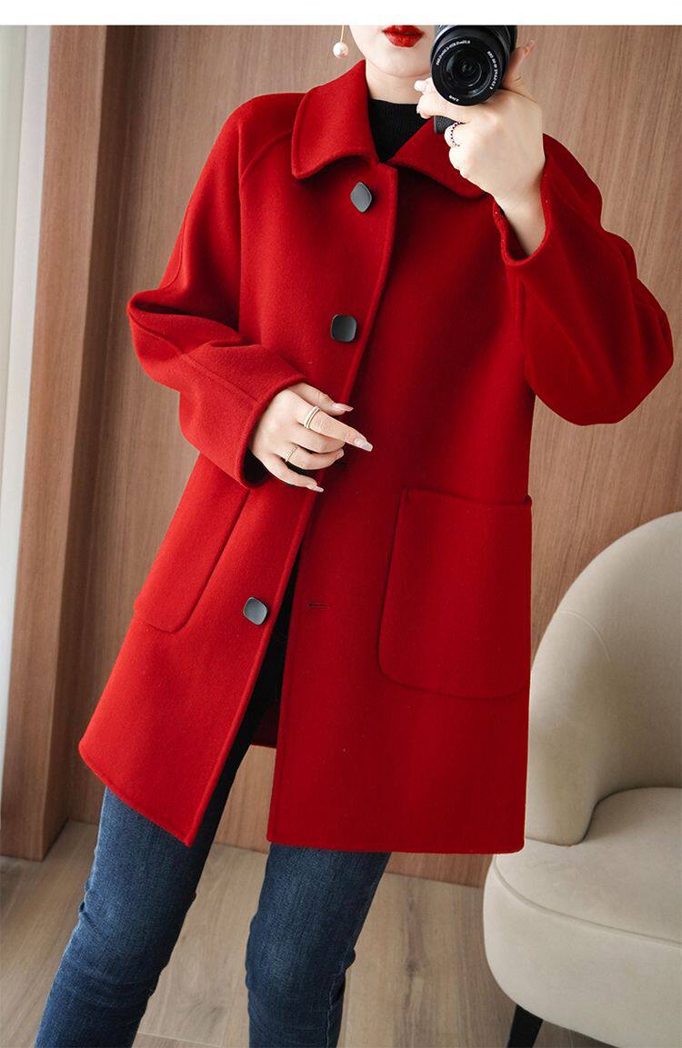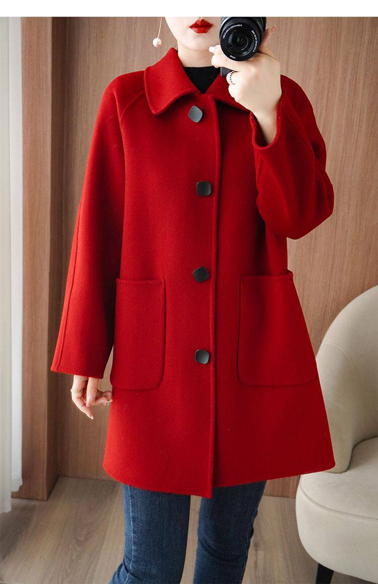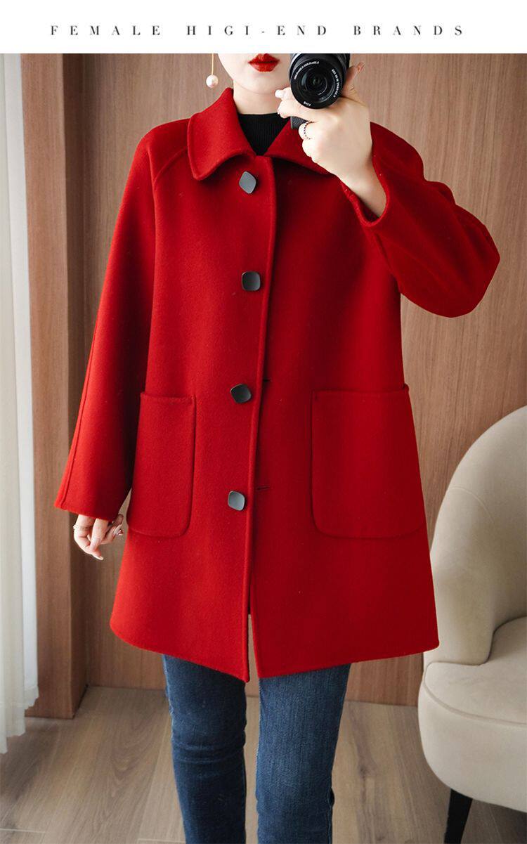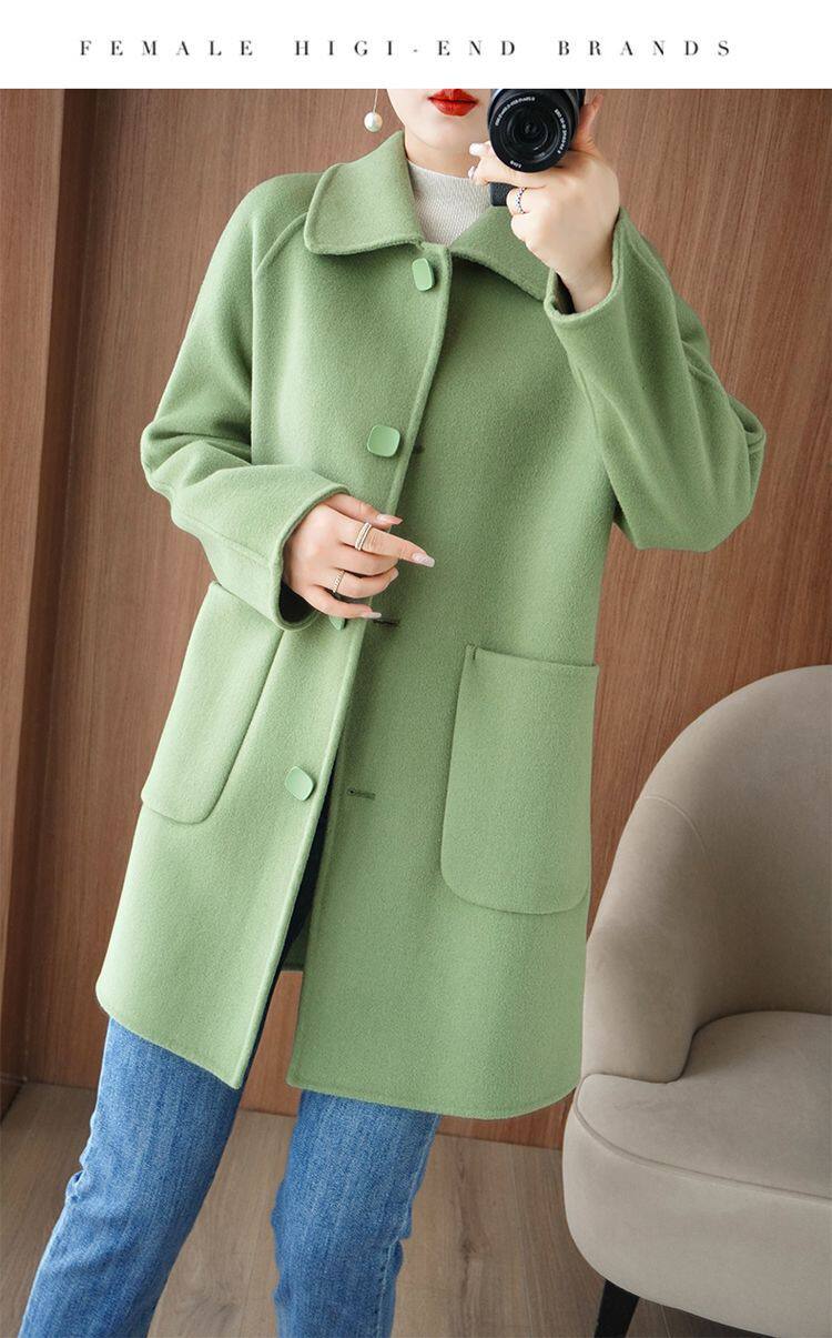 Wool Double-Sided Woolen Wool Outwear for Women Winter Hepburn Style Slim Mid-Length Doll Collar Small Outwear