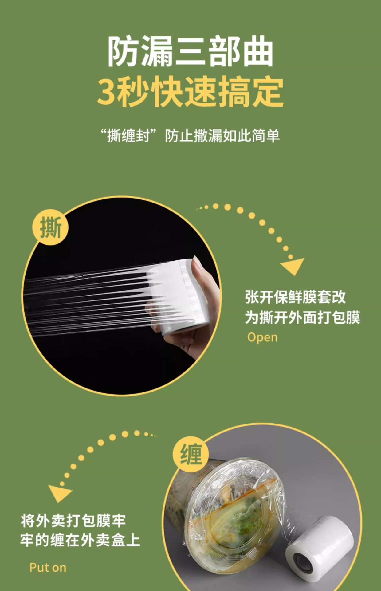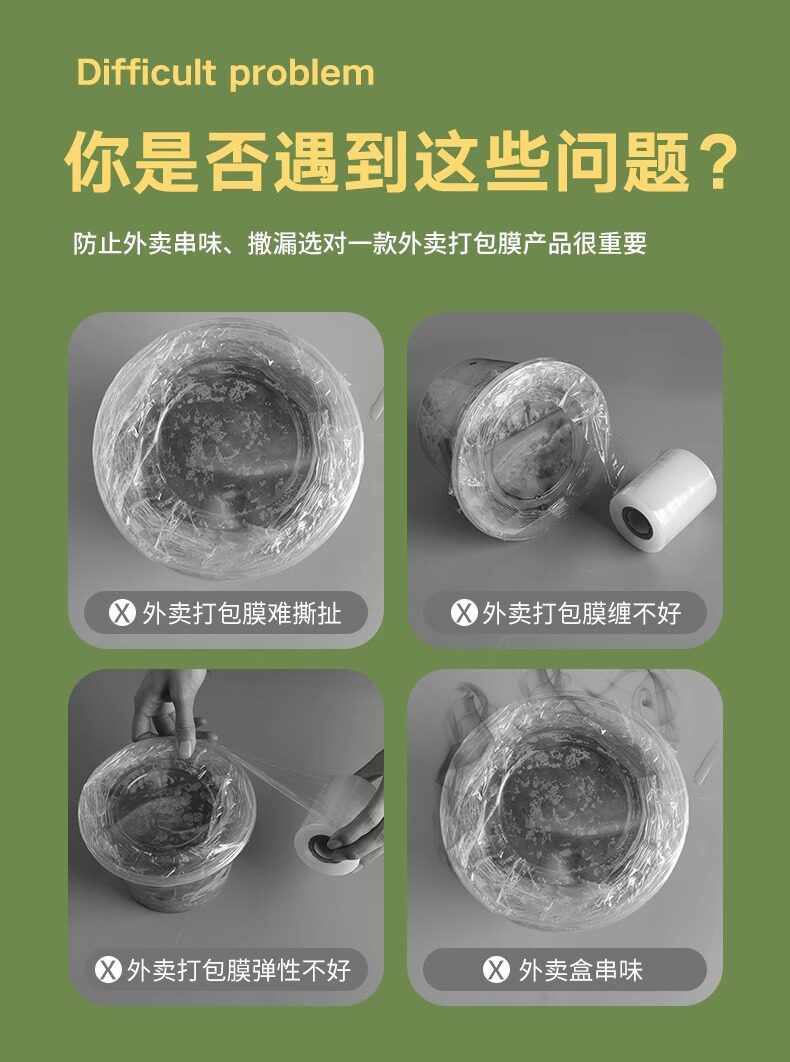 Takeaway Leak-Proof Packaging Lunch Box Sealing Artifact Small Roll Plastic Wrap Narrow Strip Food Grade Wrapping Flexible Sealing Film