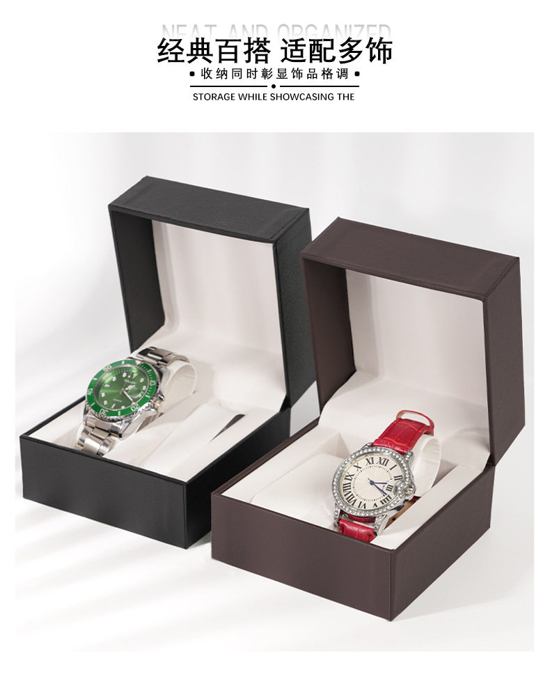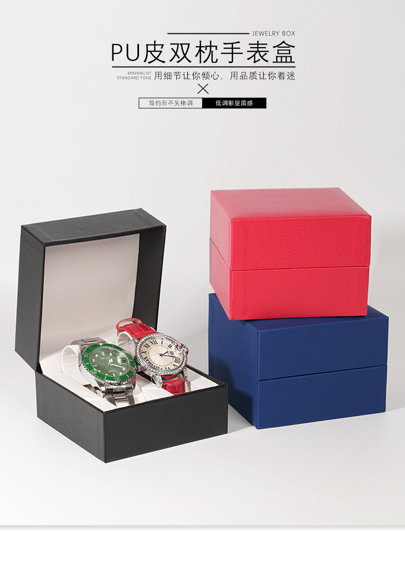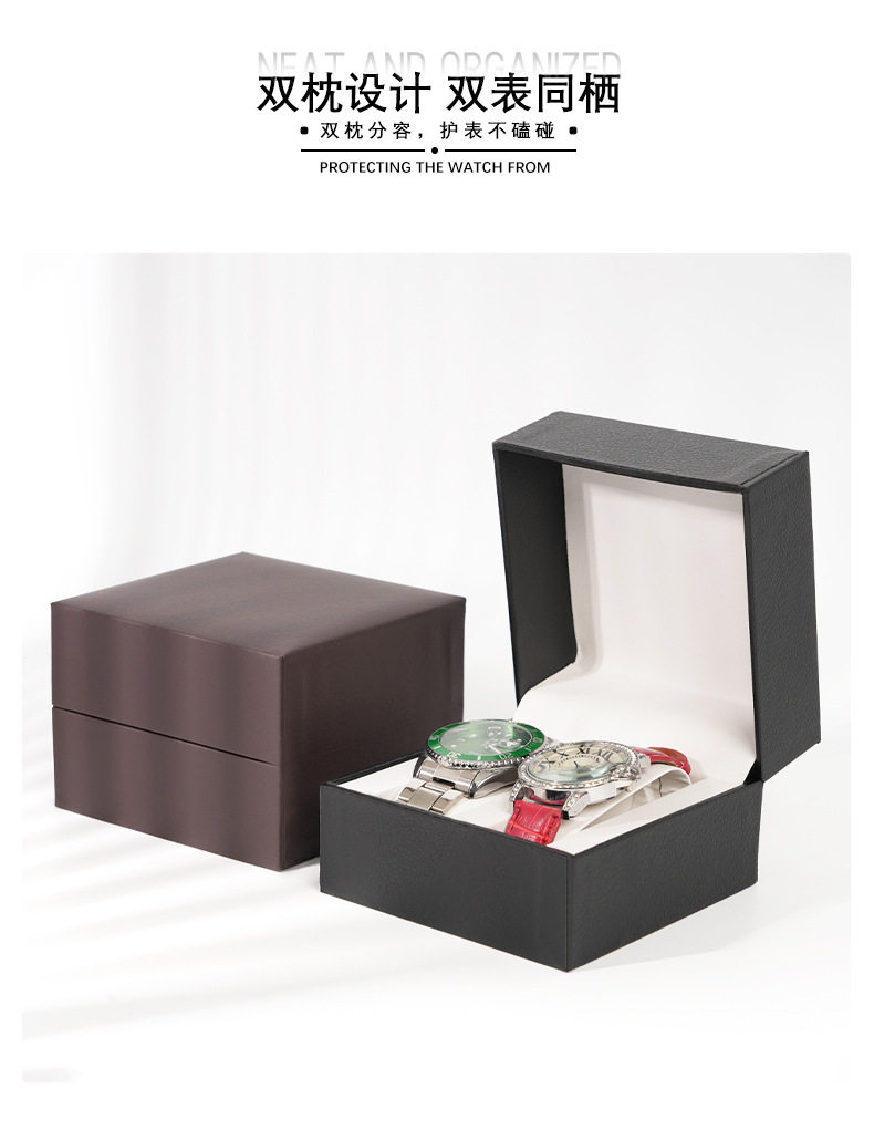 Hot-Selling Pu Leather Double Pillow Watch Box, High-End Couple Watch Box, Flip Watch Packaging Box, Cross-Border