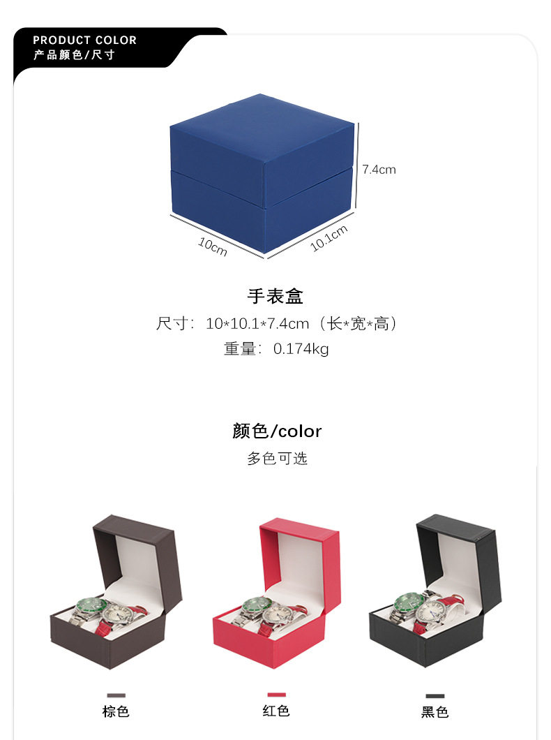 | Specifications and models | Orange; double pillow watch box 10*10*7.5cm,Black; double pillow watch box 10*10*7.5cm,Red; double pillow watch box 10*10*7.5cm,Dark blue; double pillow watch box 10*10*7.5cm,Brown; double pillow watch box 10*10*7.5cm,Green; double pillow watch box 10*10*7.5cm |