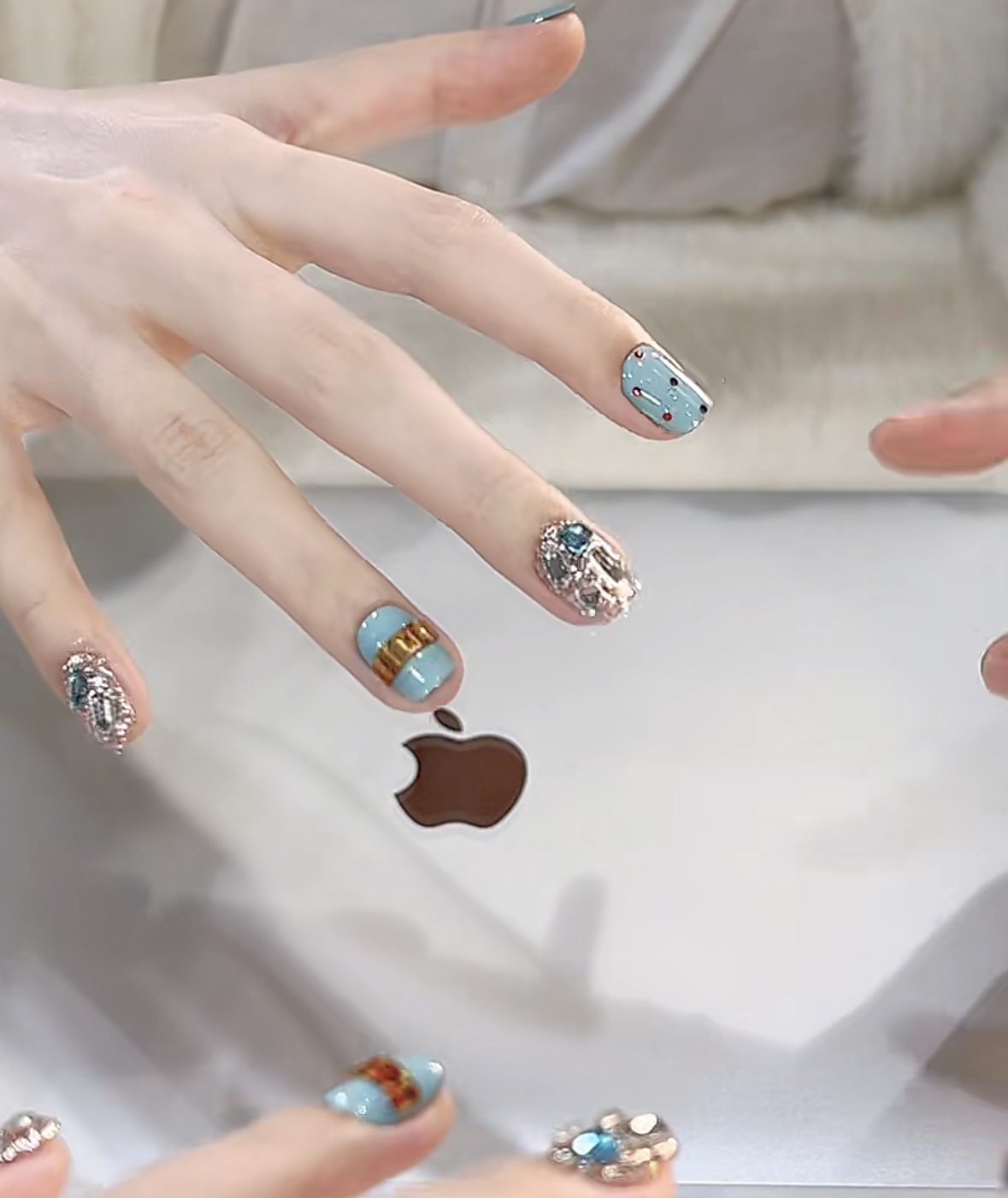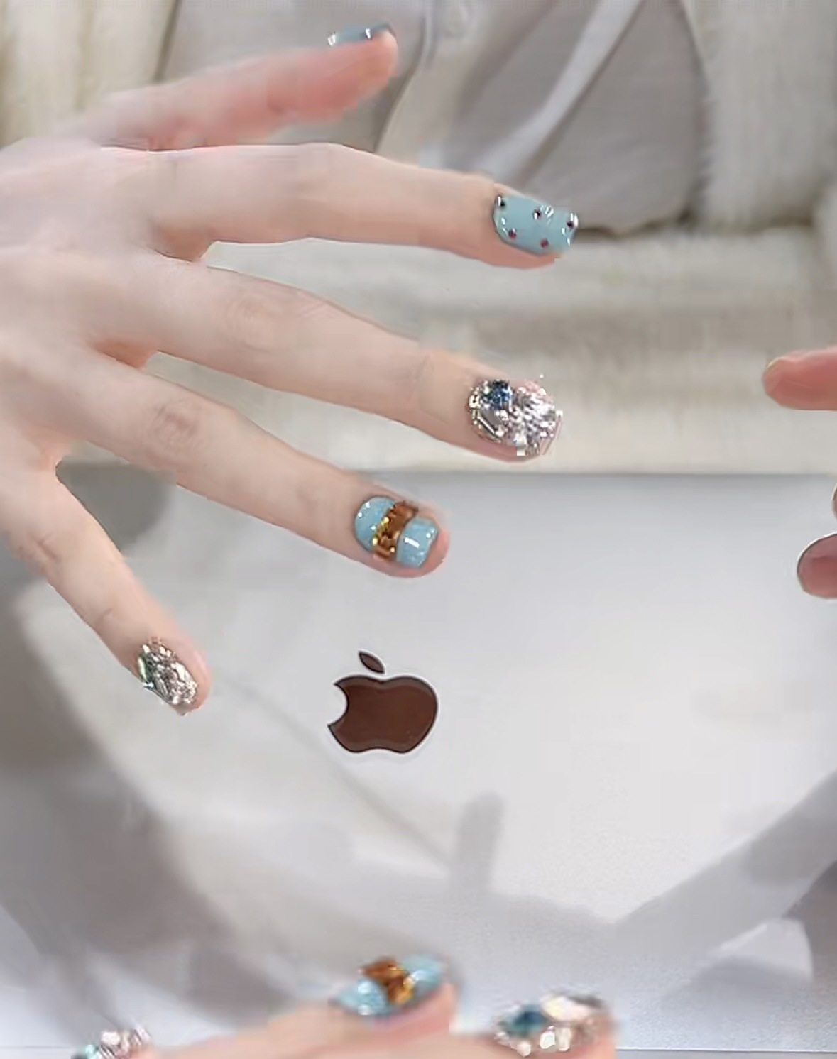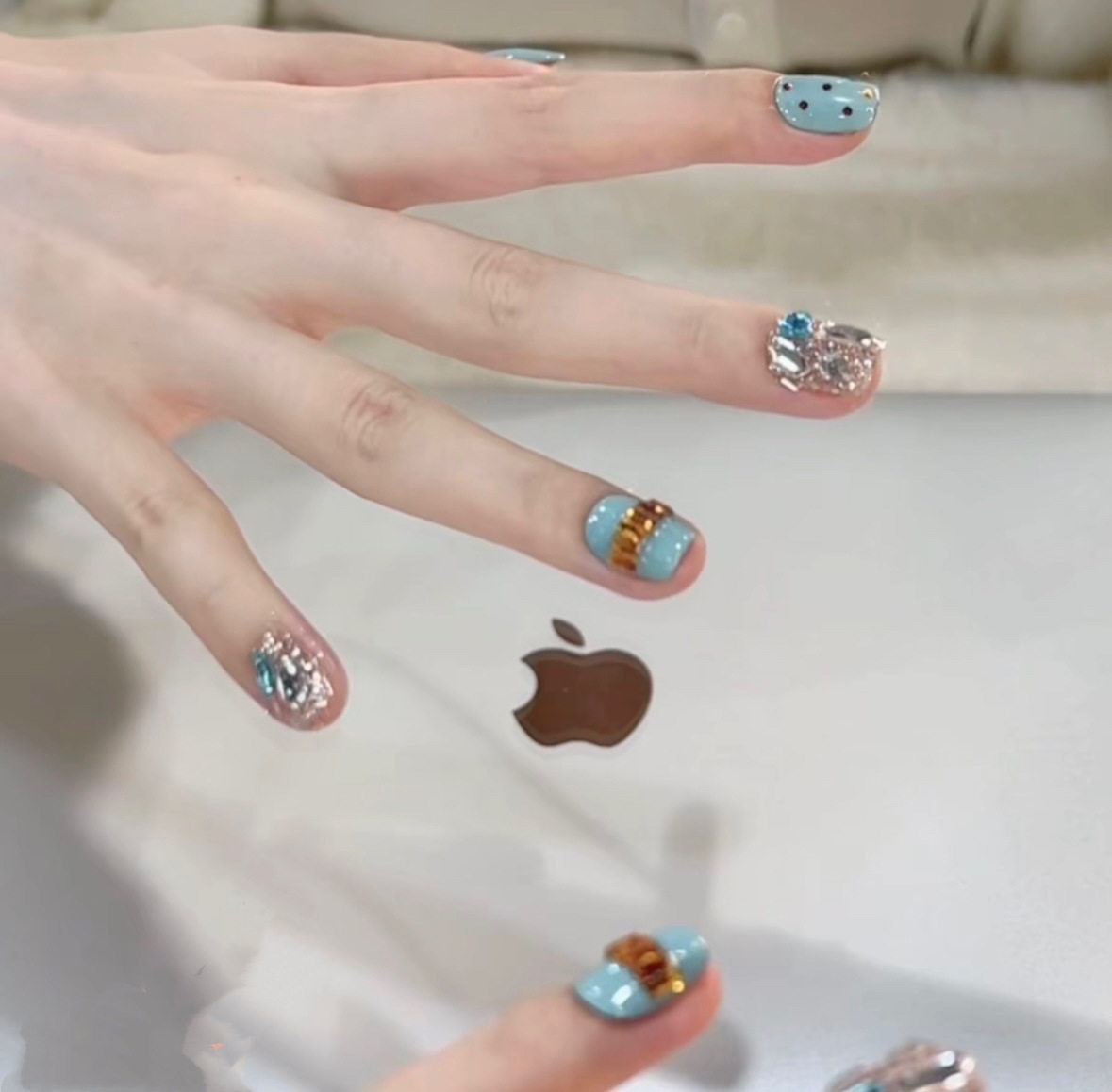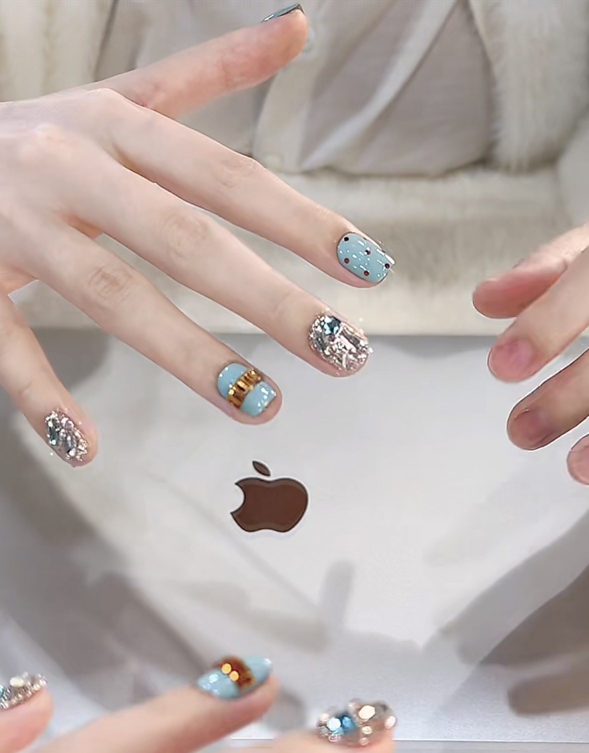 [Tiffany Blue] Autumn and Winter Pure Handmade Wearable Nails Blue Diamond High-End Whitening Pure Handmade Elegant Manicure