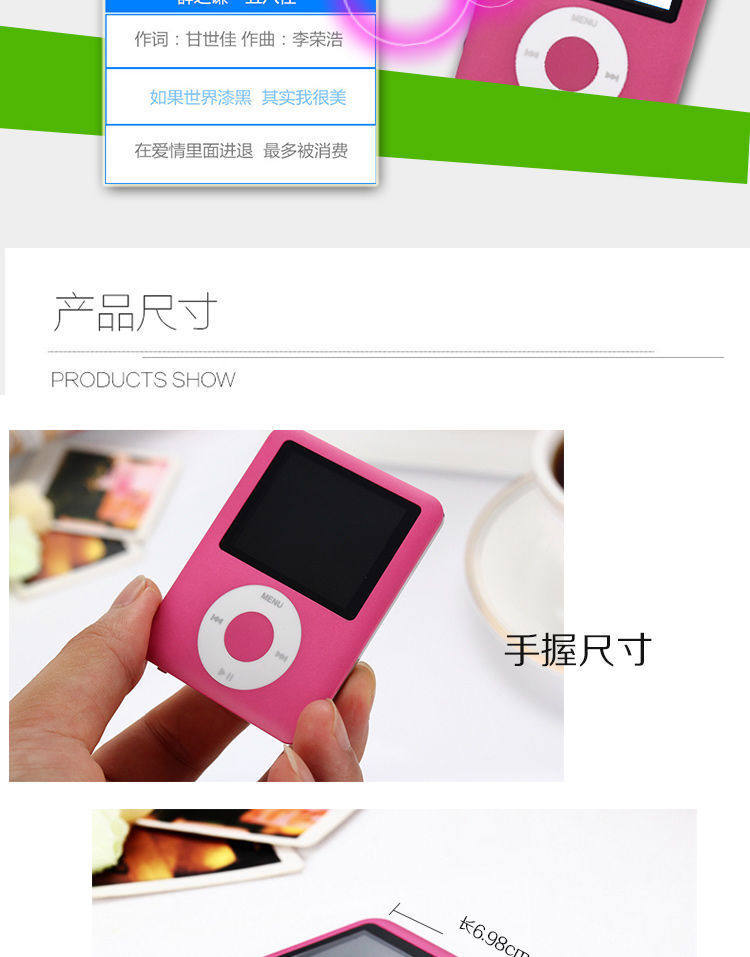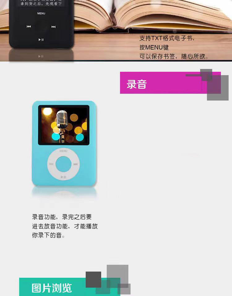 | Body color | No screen [bare metal without accessories] can only listen to music,Silver [increase battery/give away gift package],Black [increase battery/give away gift package],Red [increase battery/give gift package],Pink [increase battery/give gift package],Blue [increase battery/give gift package],Silver [with bluetooth] enlarged battery/free gift package,Black [with bluetooth] enlarged battery/free gift package |