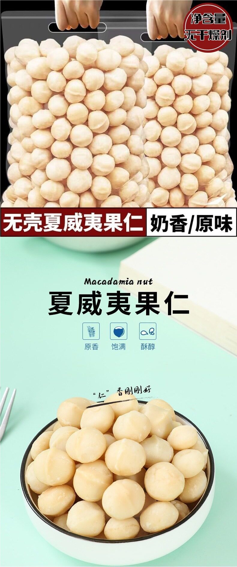 New Arrival Net Weight Creamy Original Flavor Macadamia Nuts Raw and Roasted Nuts Cocoa Crisp Baking Ingredients 250g Cross-Border E-Commerce