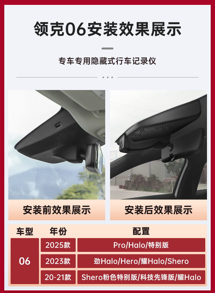 Lynk & Co 06 Driving Recorder Original Factory Dedicated 4K High-Definition Night Vision Hidden Wire-Free Installation Dual-Camera Sentry Mode