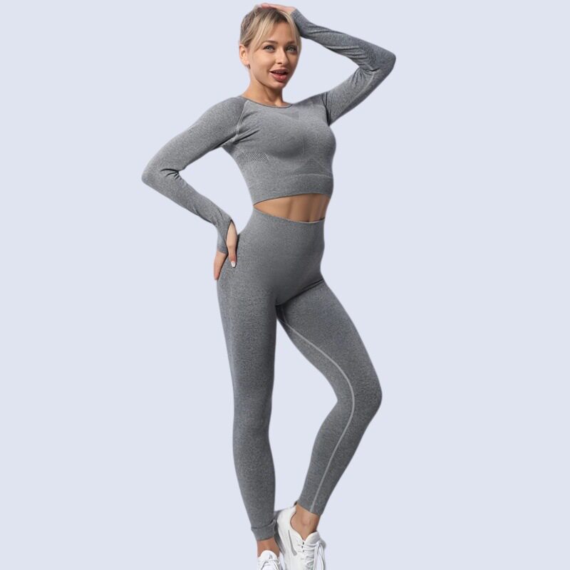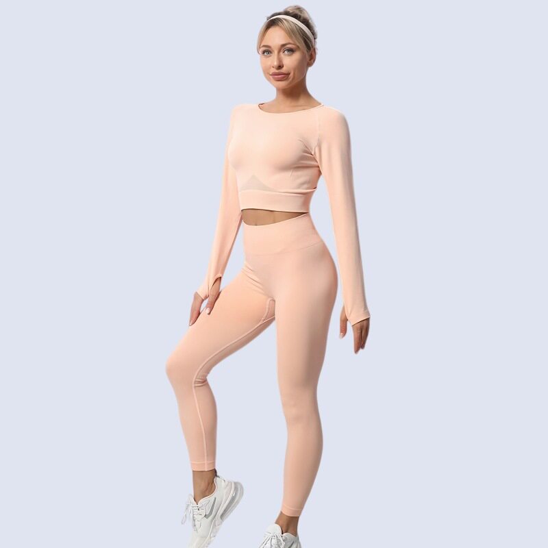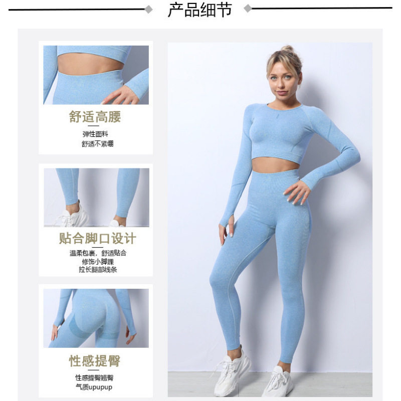 Cross-Border Seamless Yoga Clothing Set, Long-Sleeved Sports Tops, High-Waisted Butt-Lifting Leggings, Long Pants, Autumn and Winter Fitness