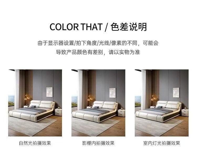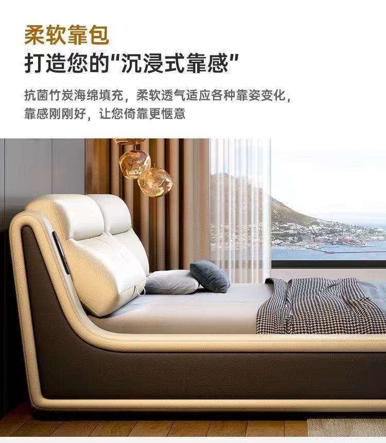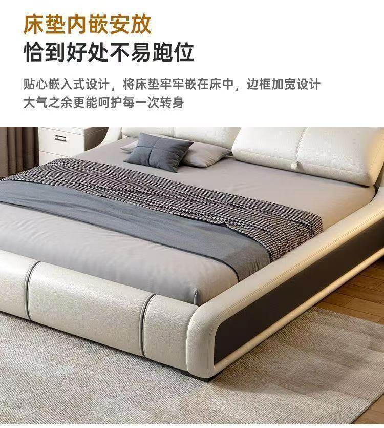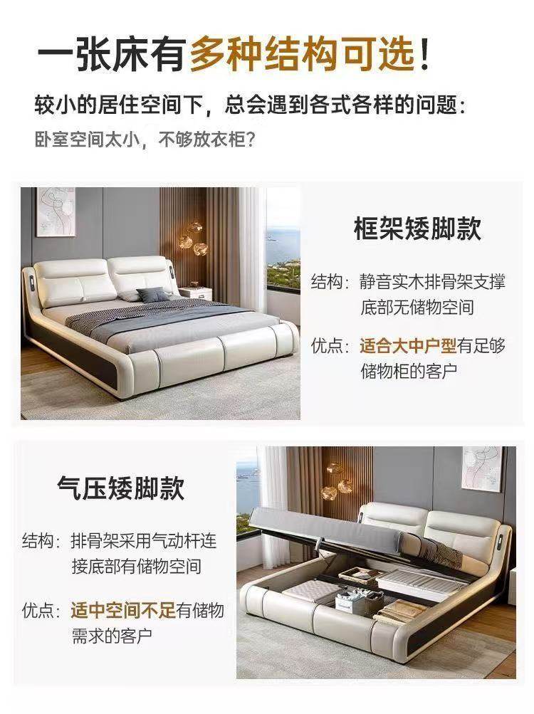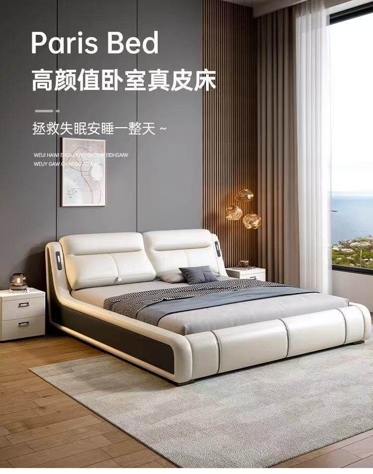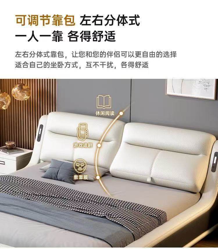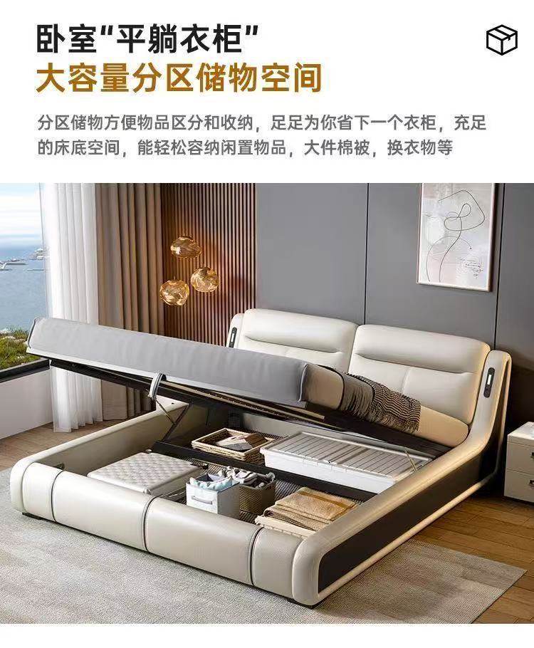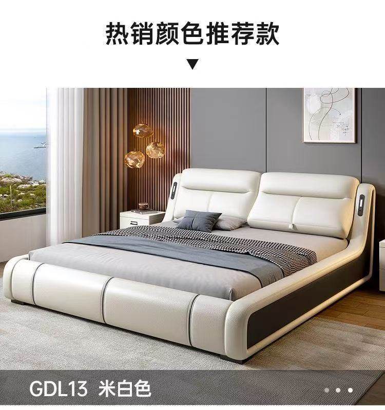 Multifunctional Italian-Style Light Luxury Genuine Leather Modern Simple Children's Bed Adjustable New Bedroom Storage Large Bed