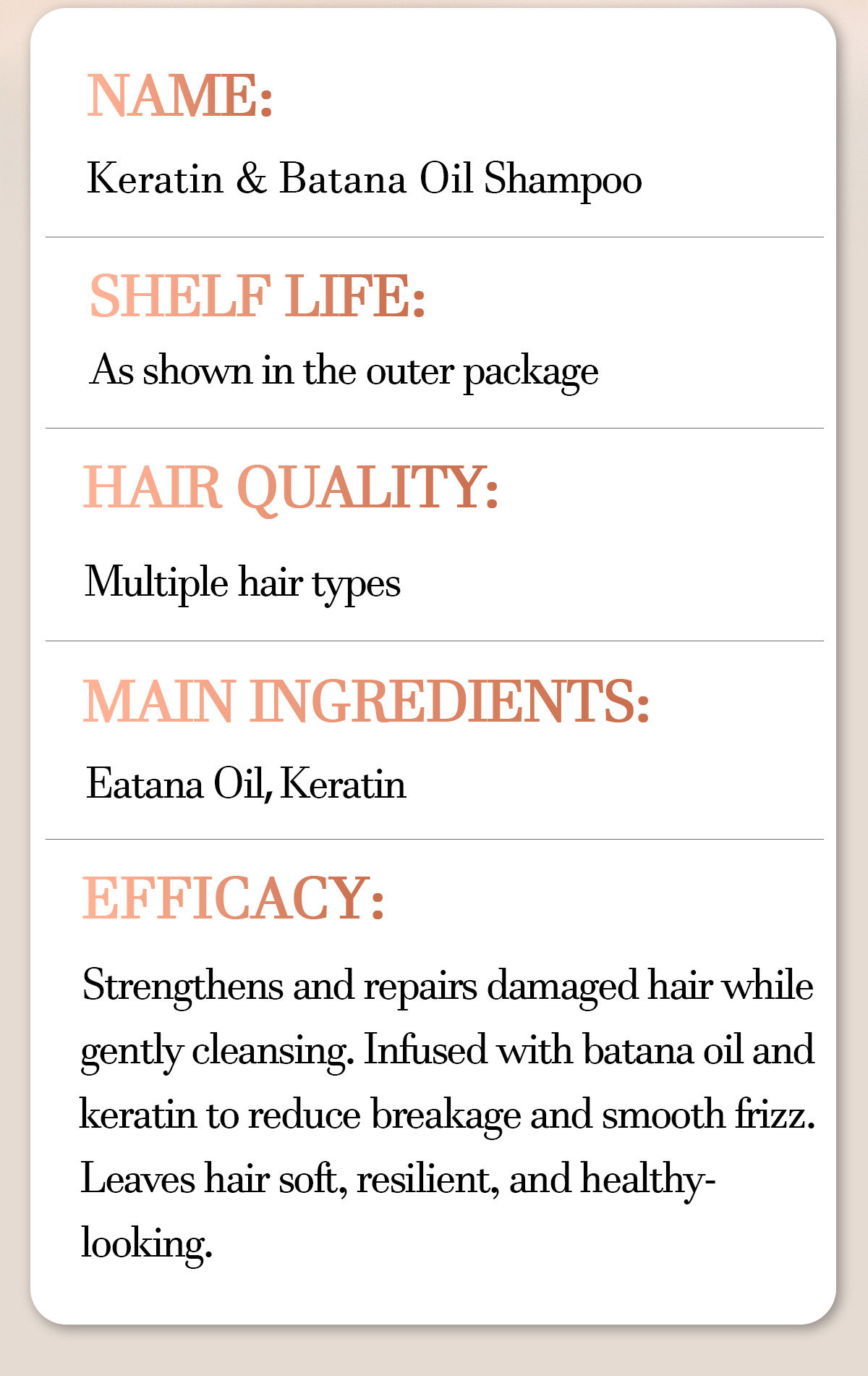 | Efficacy | Nourishing and repairing |