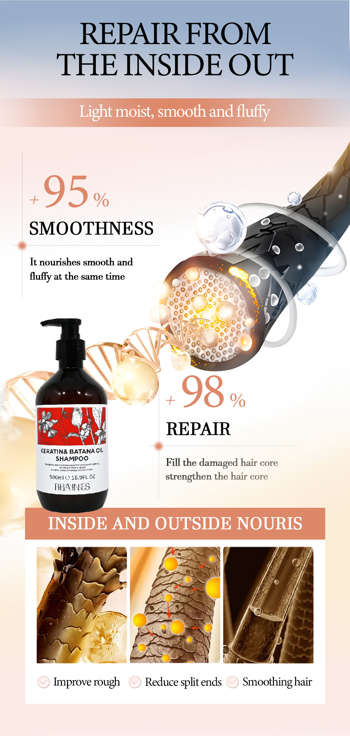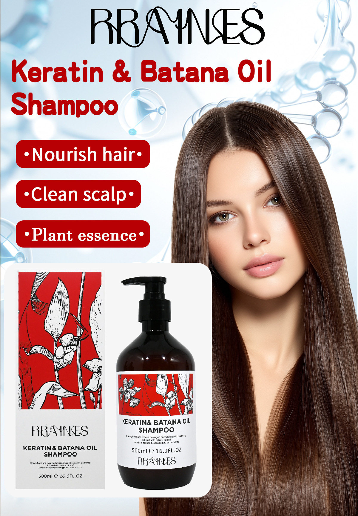 Foreign Trade Cross-Border Smooth and Nutritious Anti-Drying Shampoo Keratin Batahna Oil Shampoo Anti-Dandruff and Anti-Itching