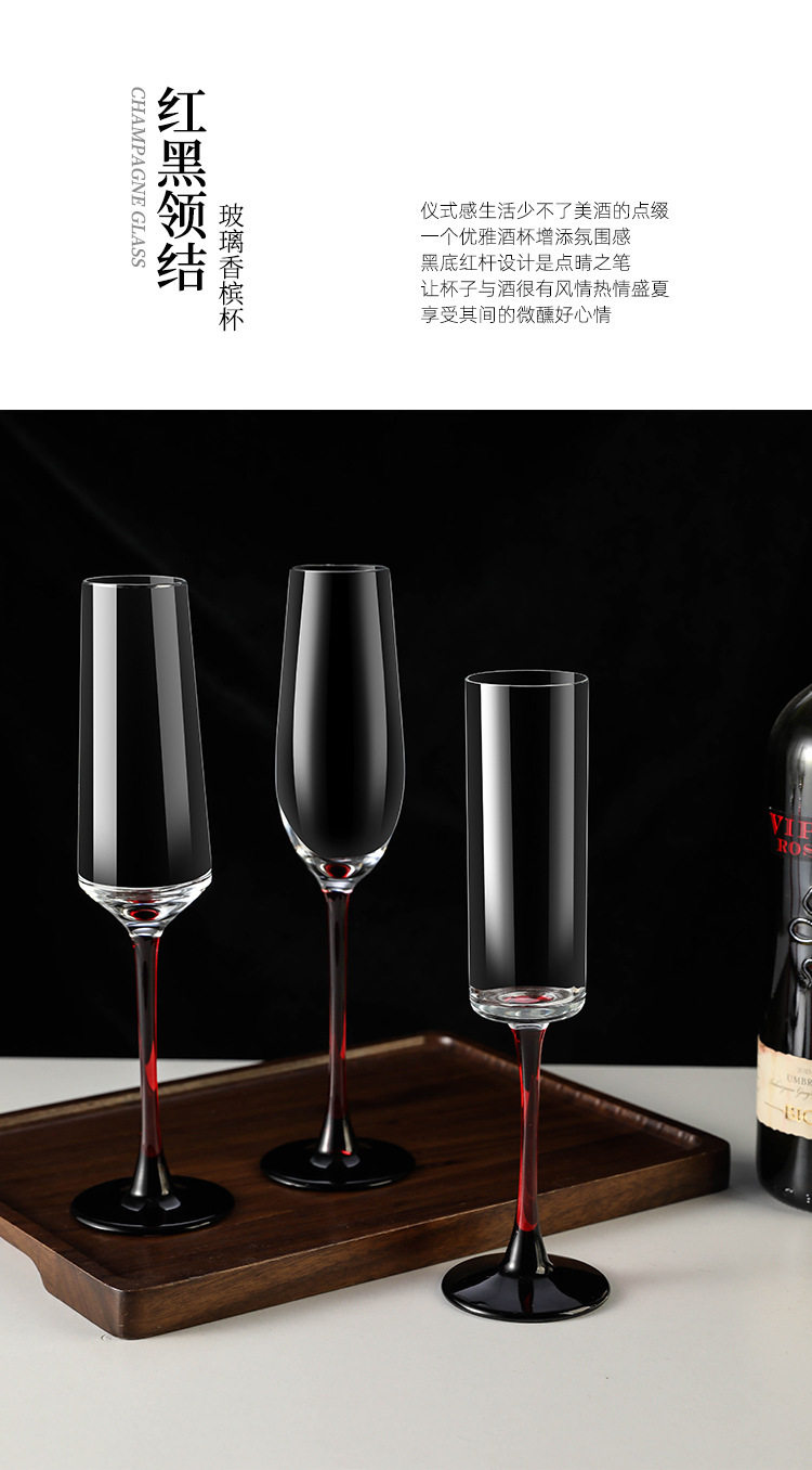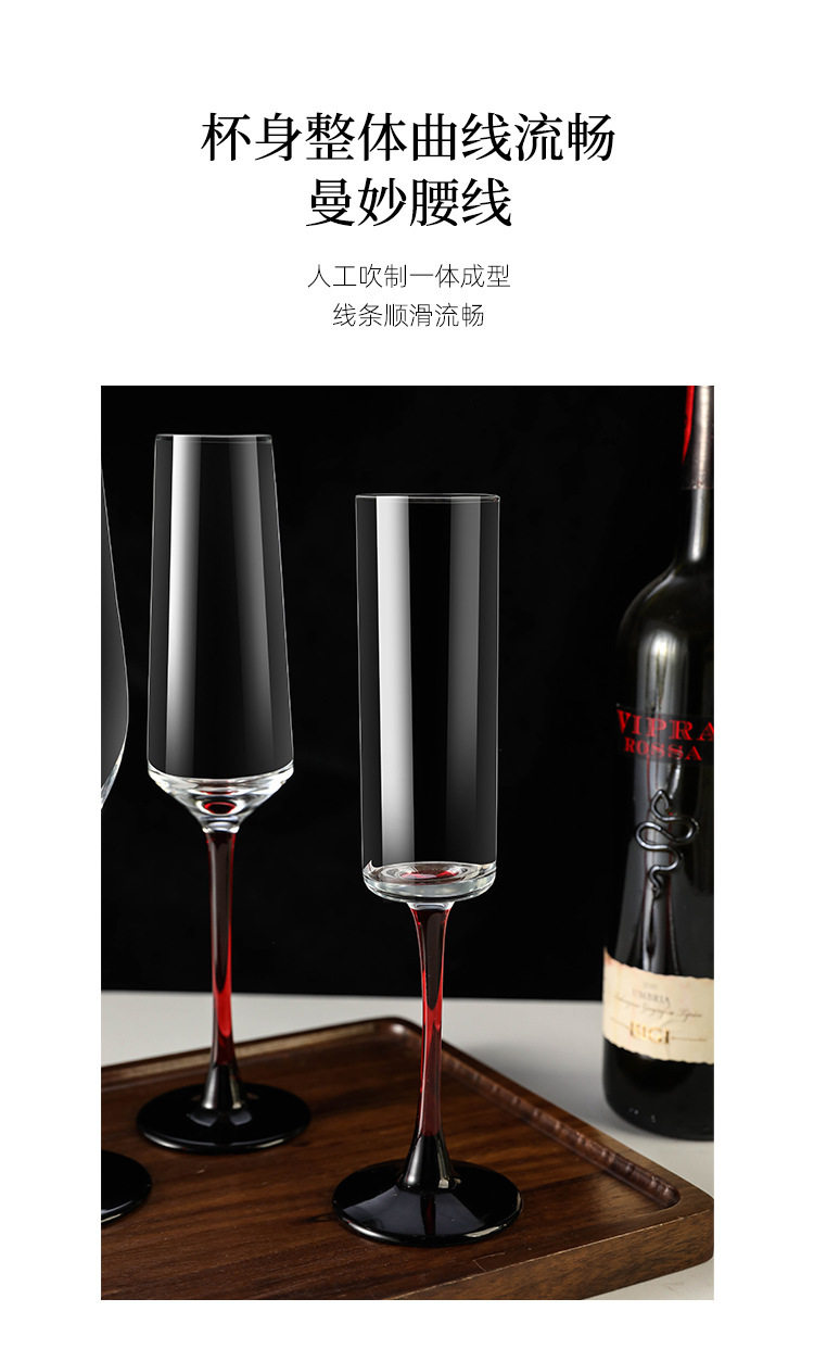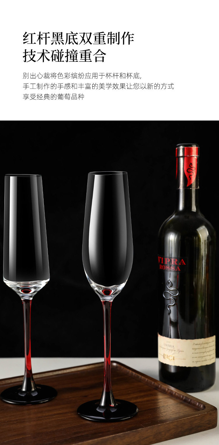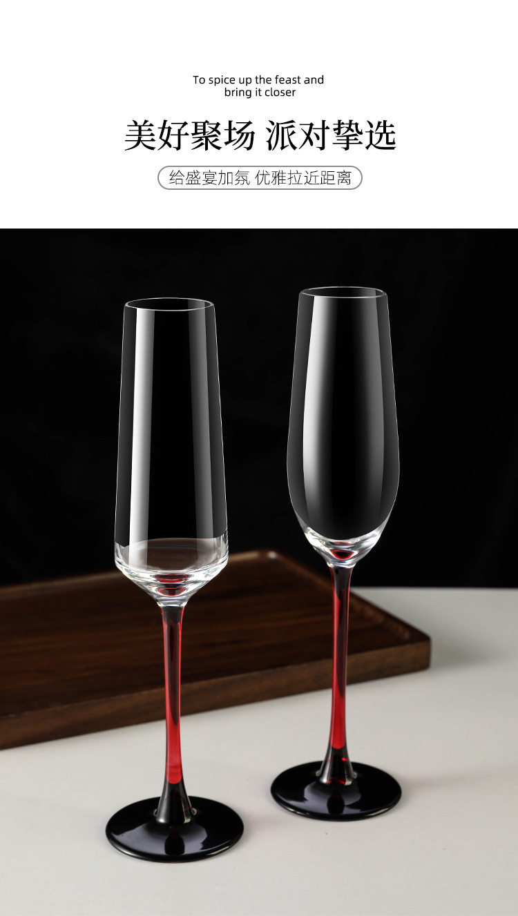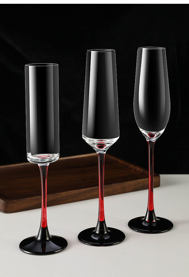 European Red Rod Champagne Glass Household High-End Creative Crystal Glass Red Wine Glass Goblet Pair of Sparkling Wine Glasses