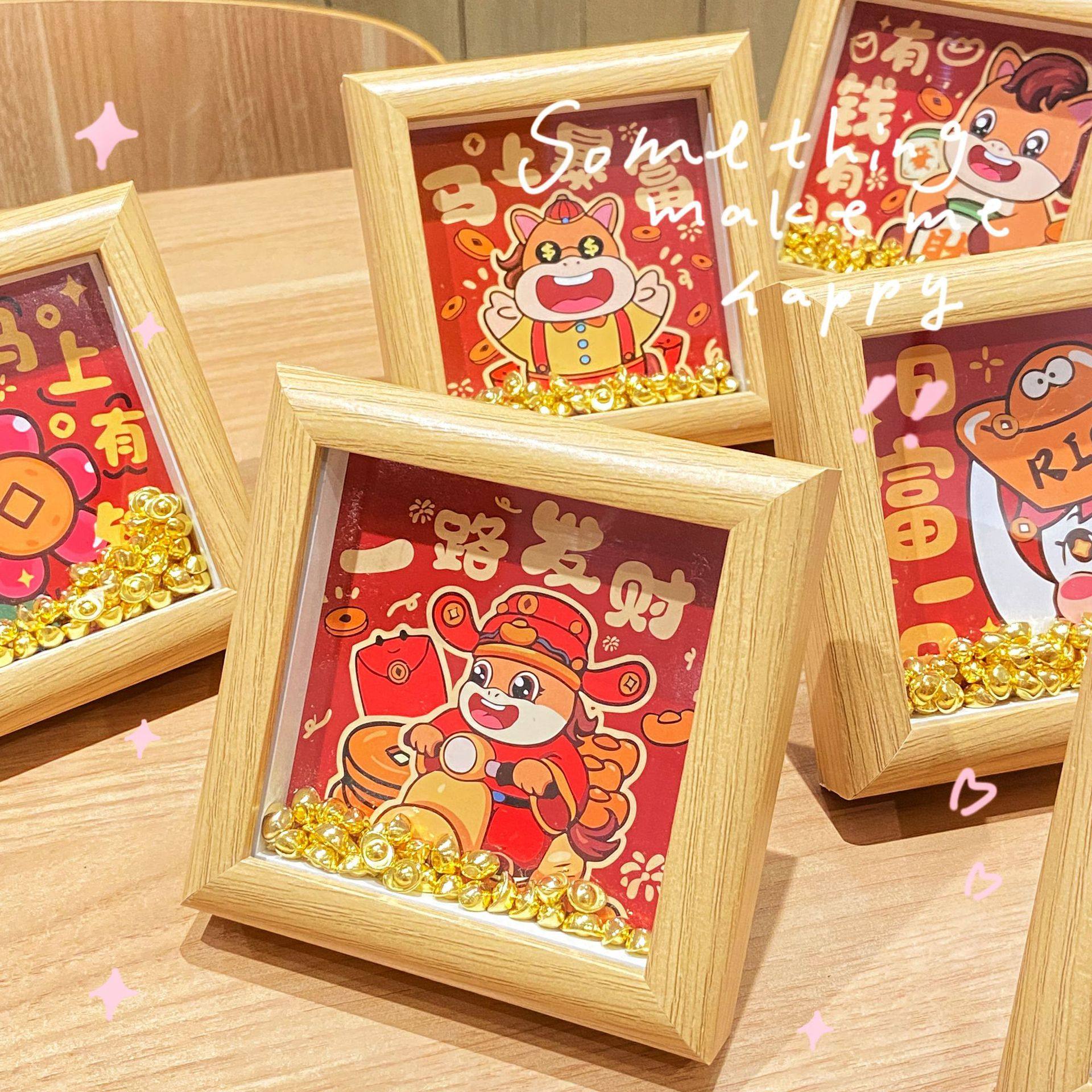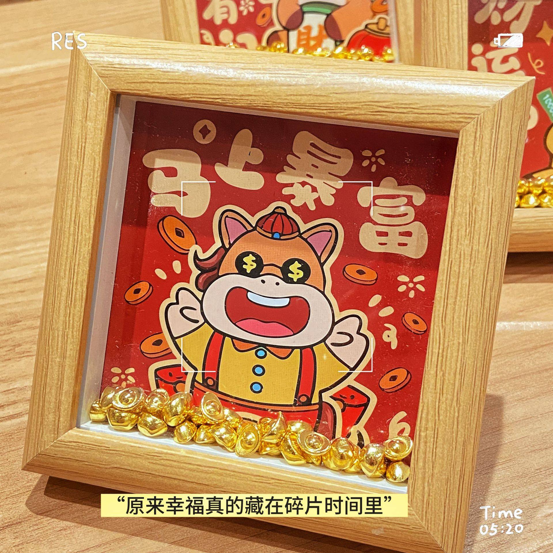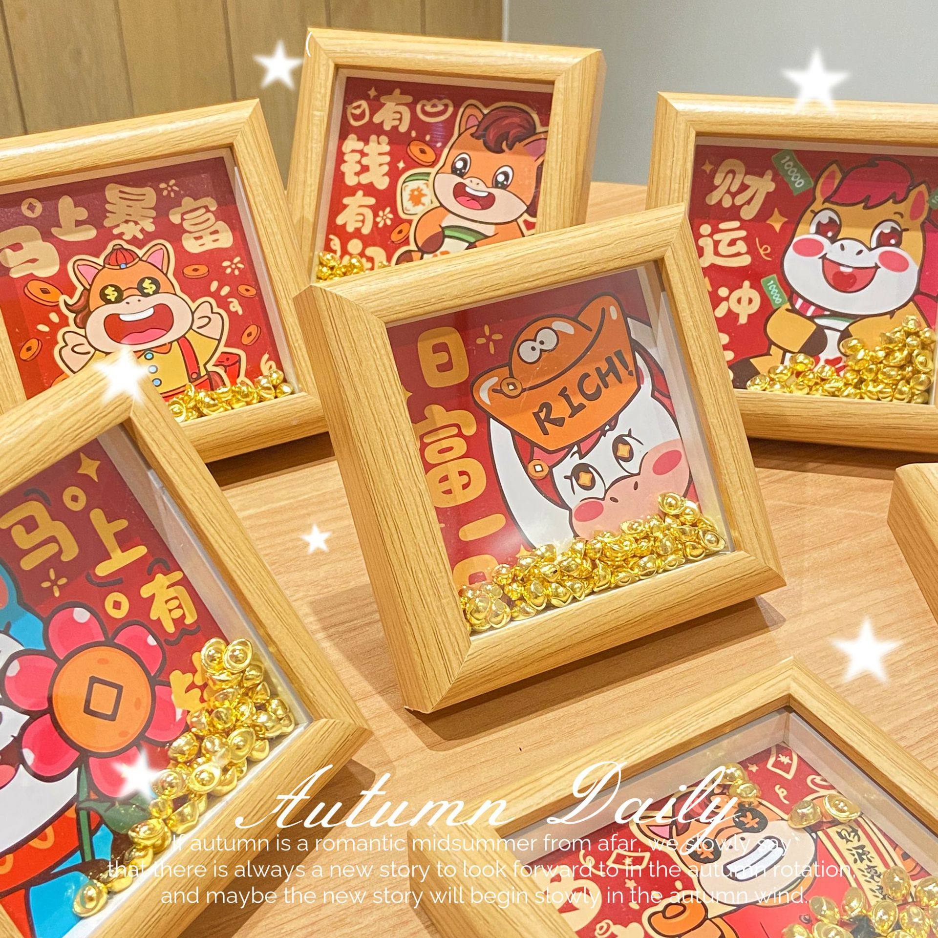2026 New Wooden Gold Ingot Fortune Photo Frame Table (12*12cm) Desktop Decoration Table